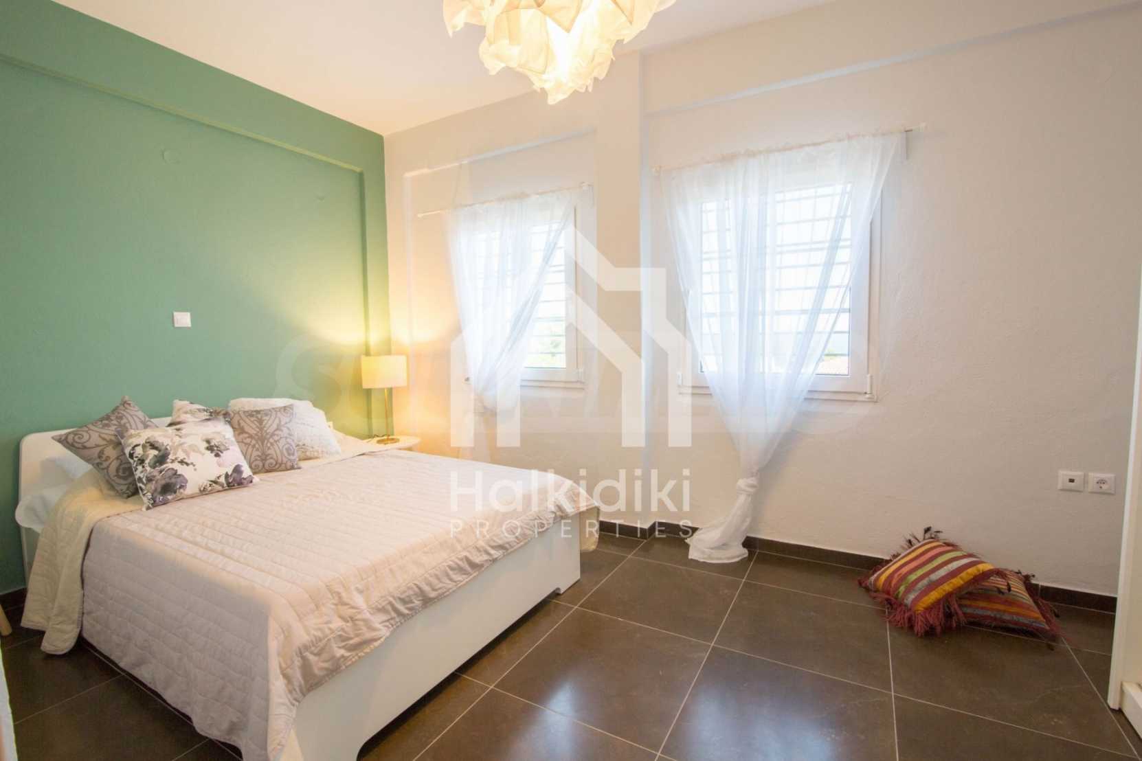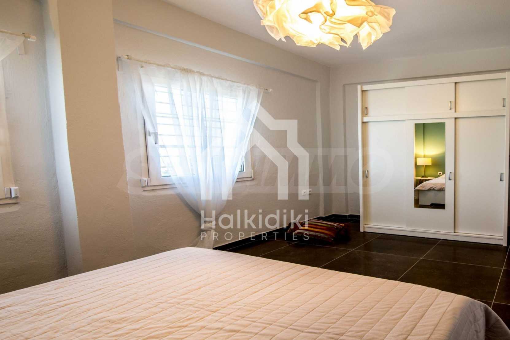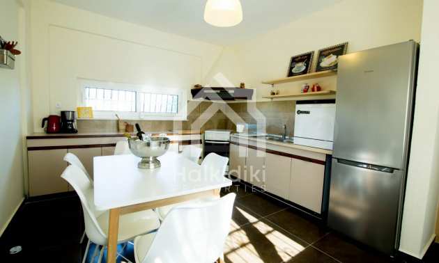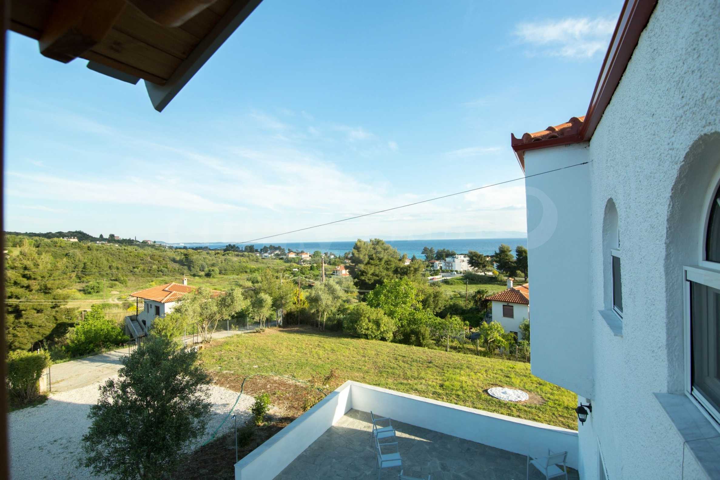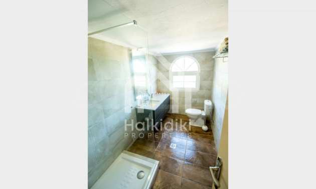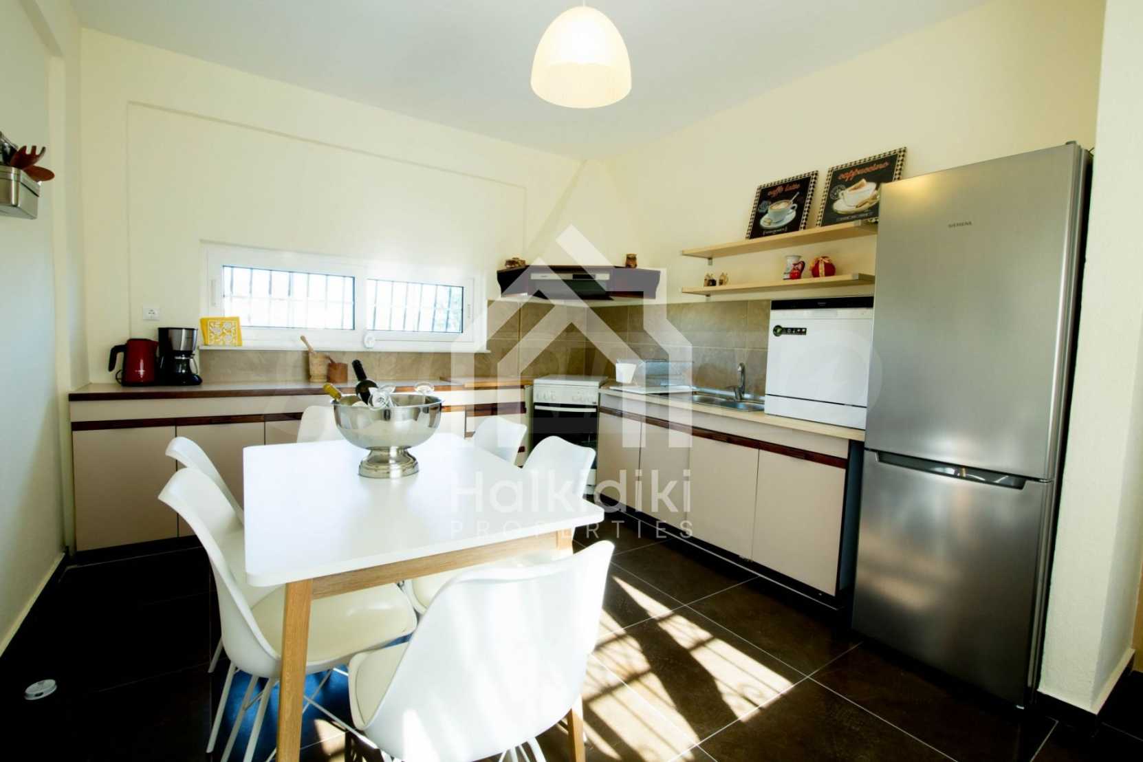 Renoviertes Einfamilienhaus, 200 m², in Kassandra, Chalkidiki mit unverbaubarem permanentem Meerblick und mit östlicher Ausrichtung. Das Anwesen ist von 4.000 m² Garten umgeben. Die Maisonette ist in drei Ebenen aufgeteilt, bestehend aus einem mit der Küche verbundenen Wohnzimmer, vier Schlafzimmer, ein Badezimmer, ein WC und ein Abstellraum.Das Anwesen verfügt auch über große Balkone, PVC-Tischlerei, Fliesenböden, Sicherheitstür und Vorinstallation des Heizsystems.