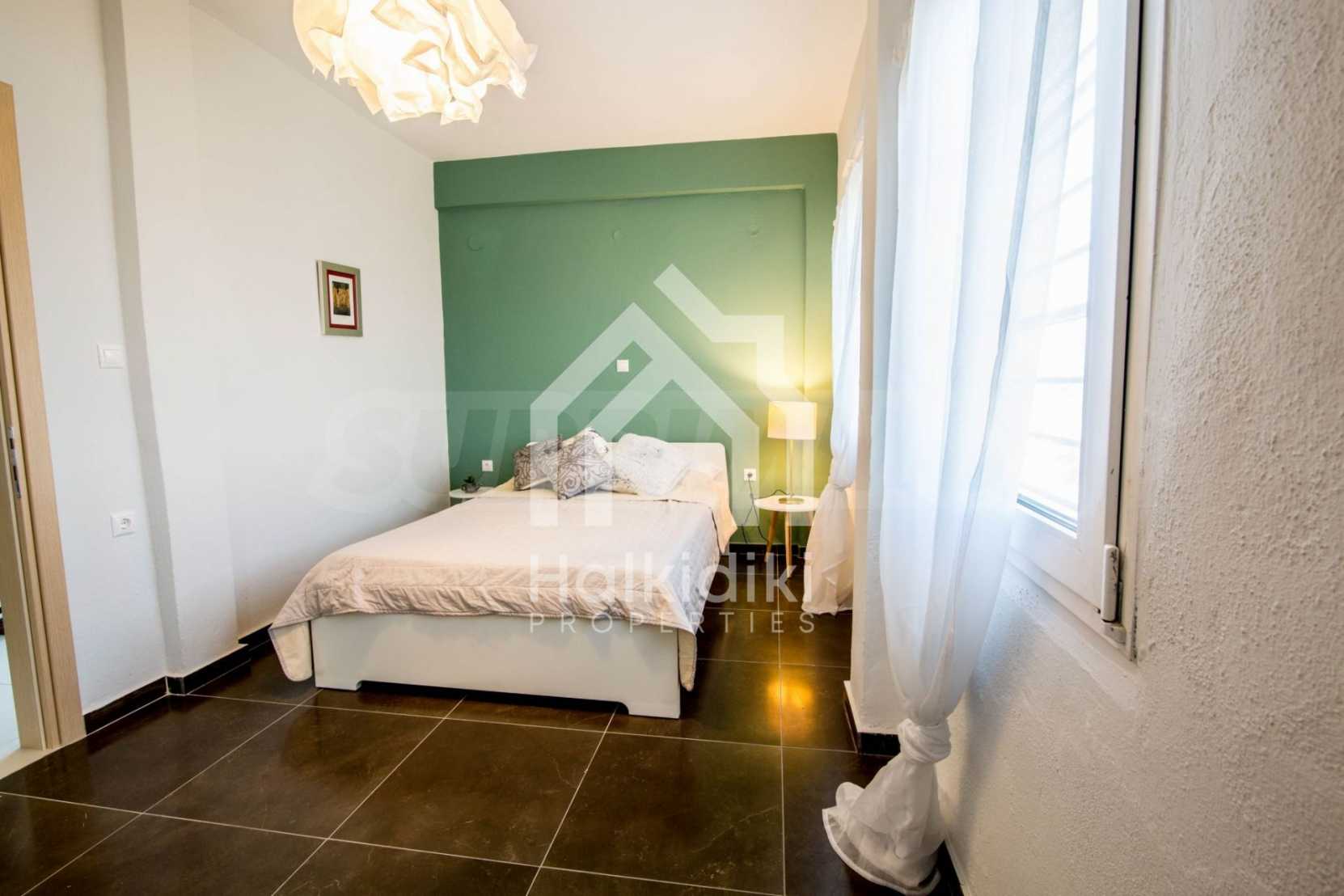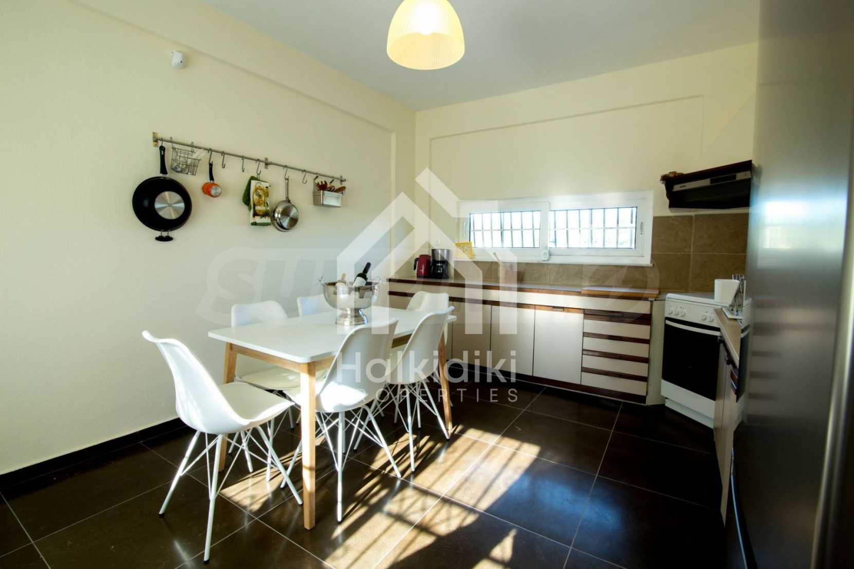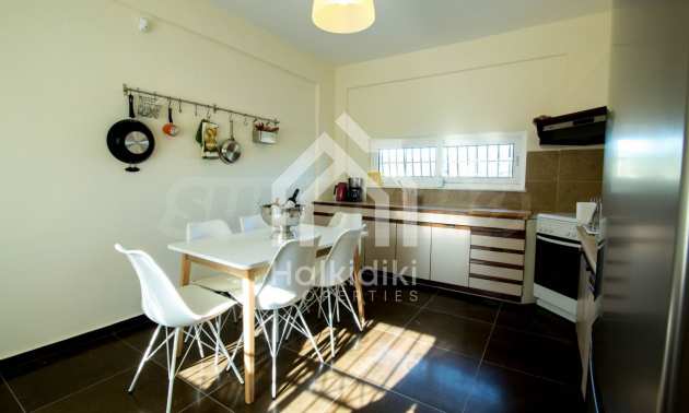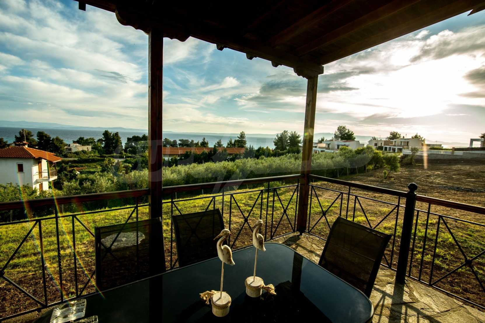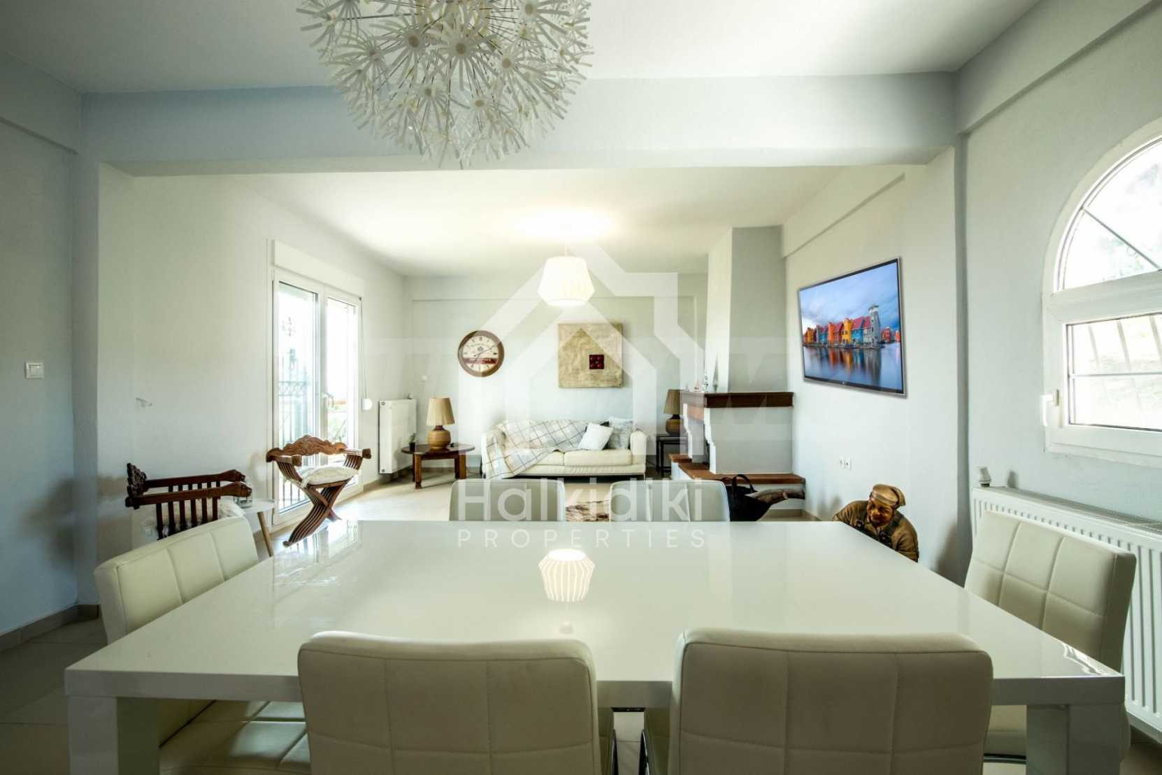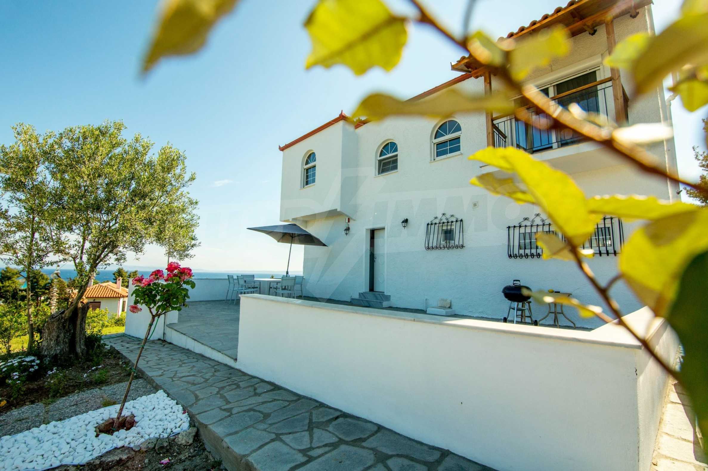 Renoviertes Einfamilienhaus, 200 m², in Kassandra, Chalkidiki mit unverbaubarem permanentem Meerblick und mit östlicher Ausrichtung. Das Anwesen ist von 4.000 m² Garten umgeben. Die Maisonette ist in drei Ebenen aufgeteilt, bestehend aus einem mit der Küche verbundenen Wohnzimmer, vier Schlafzimmer, ein Badezimmer, ein WC und ein Abstellraum.Das Anwesen verfügt auch über große Balkone, PVC-Tischlerei, Fliesenböden, Sicherheitstür und Vorinstallation des Heizsystems.