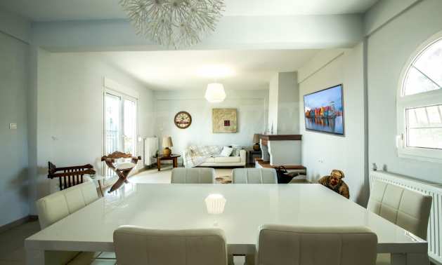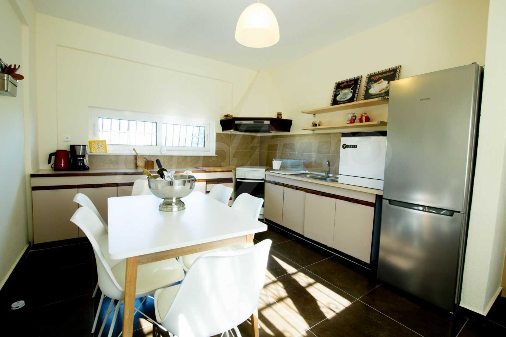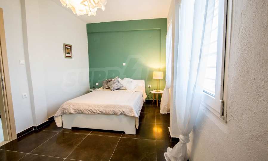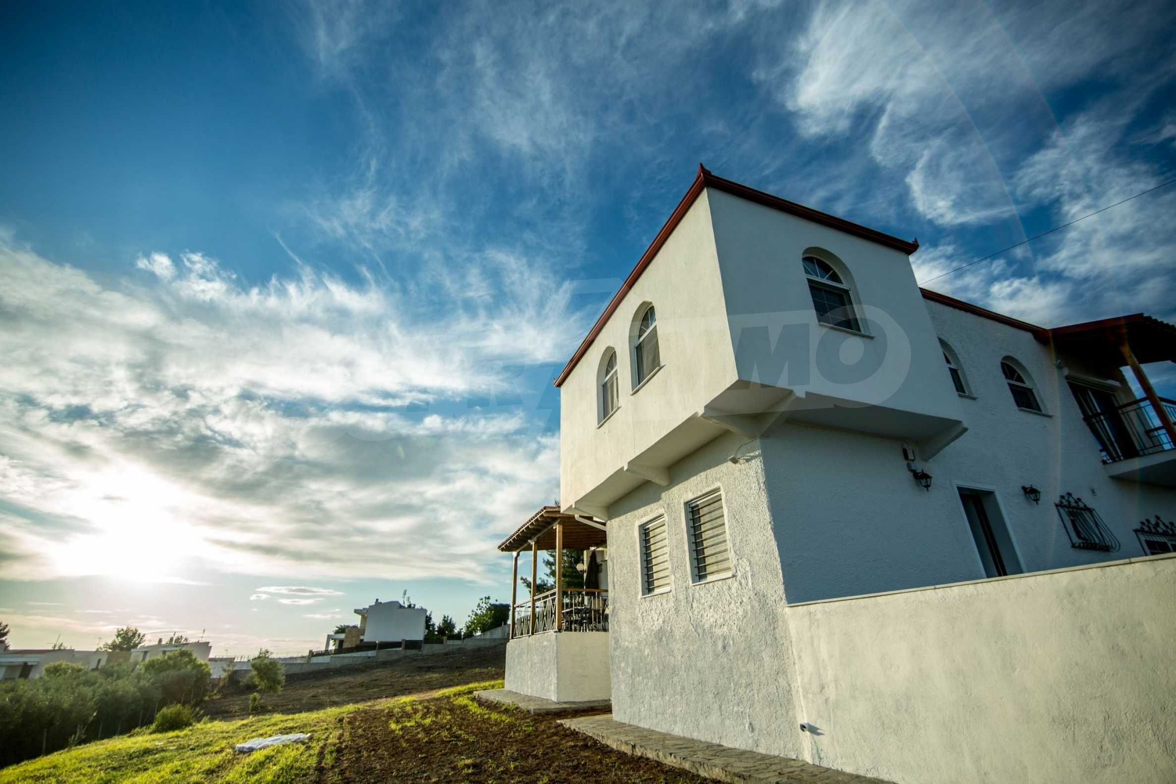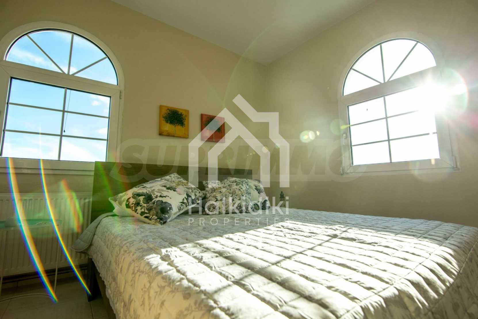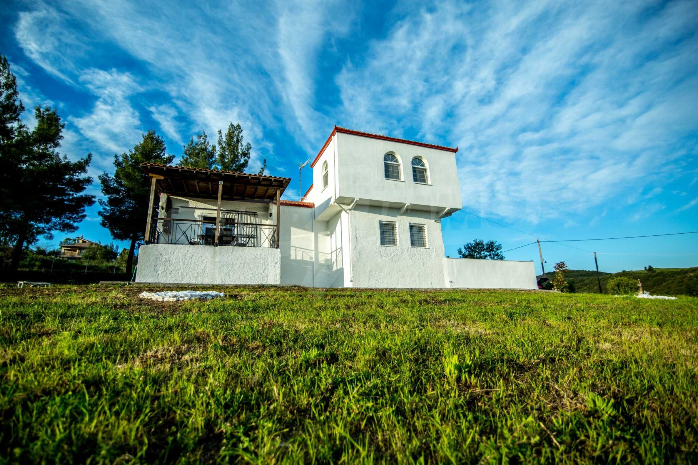 Renoviertes Einfamilienhaus, 200 m², in Kassandra, Chalkidiki mit unverbaubarem permanentem Meerblick und mit östlicher Ausrichtung. Das Anwesen ist von 4.000 m² Garten umgeben. Die Maisonette ist in drei Ebenen aufgeteilt, bestehend aus einem mit der Küche verbundenen Wohnzimmer, vier Schlafzimmer, ein Badezimmer, ein WC und ein Abstellraum.Das Anwesen verfügt auch über große Balkone, PVC-Tischlerei, Fliesenböden, Sicherheitstür und Vorinstallation des Heizsystems.