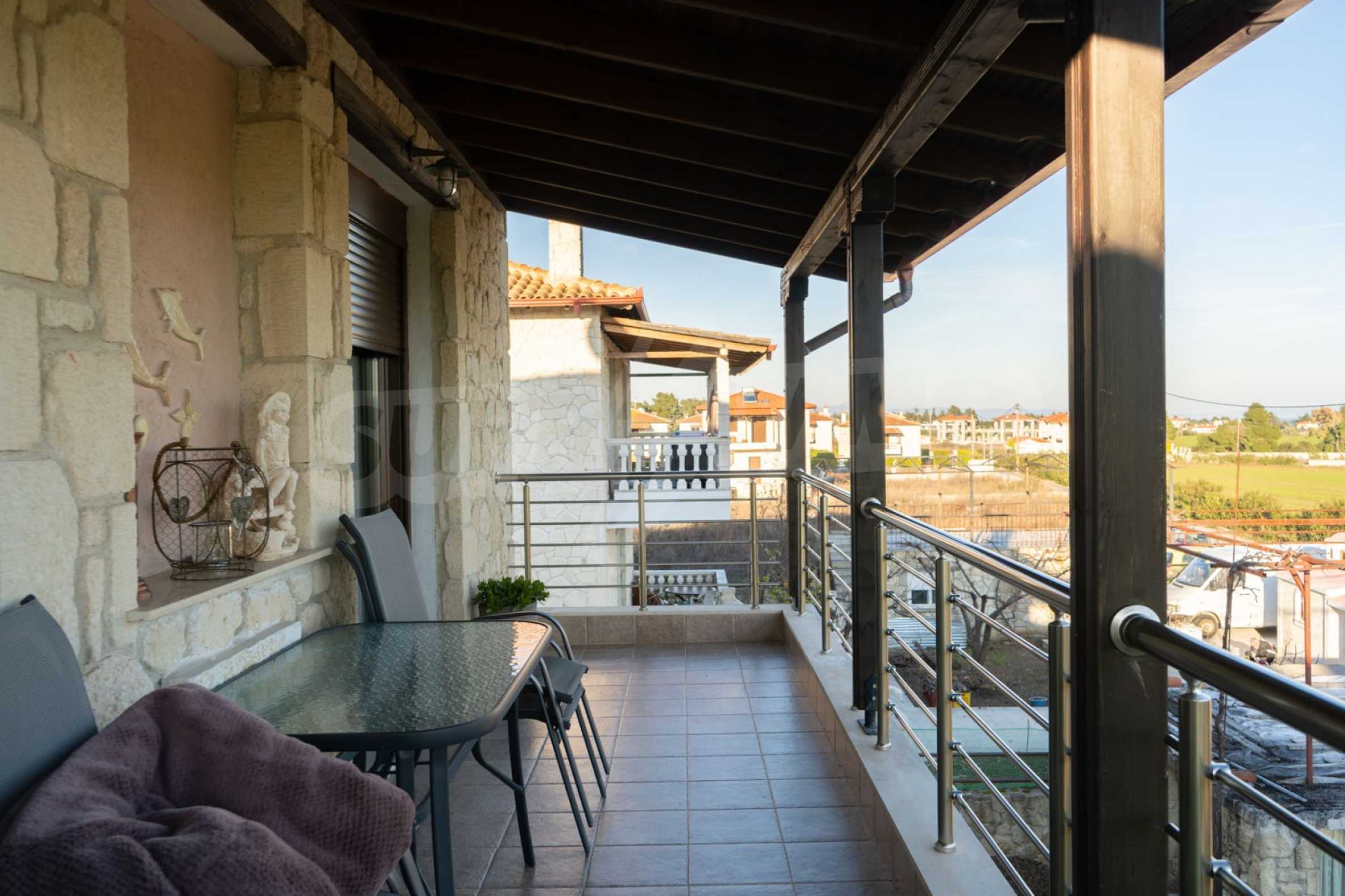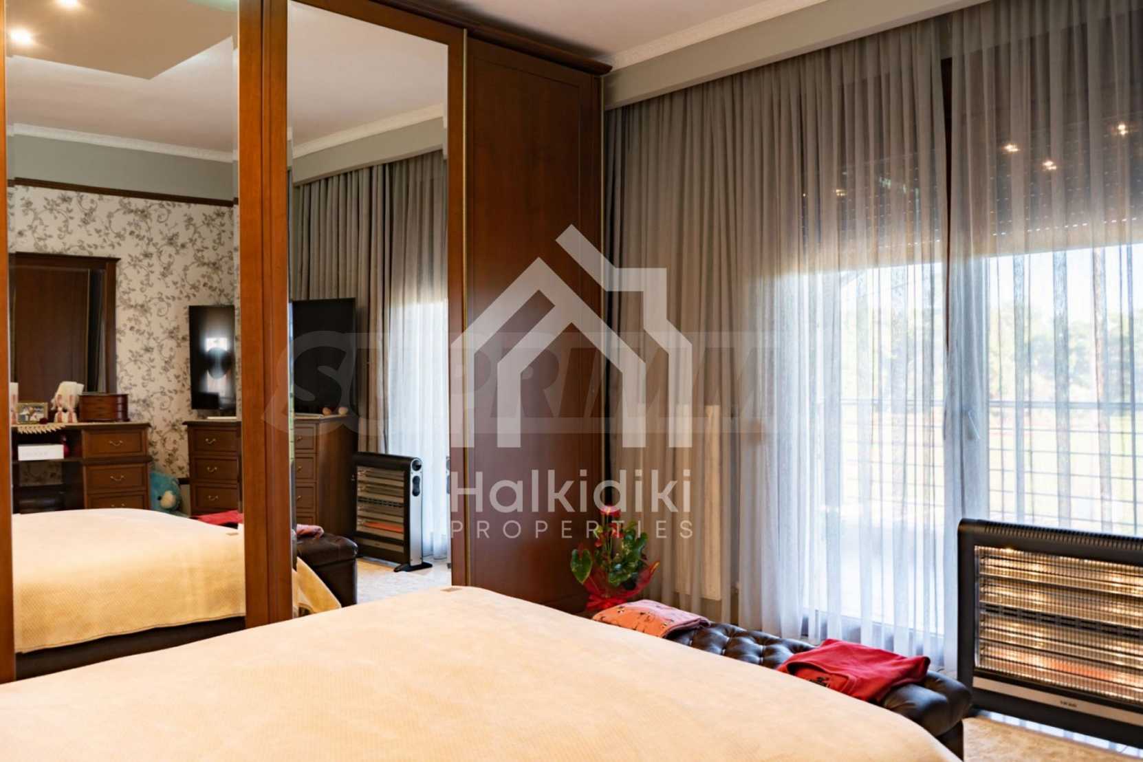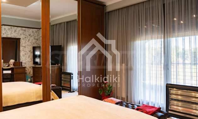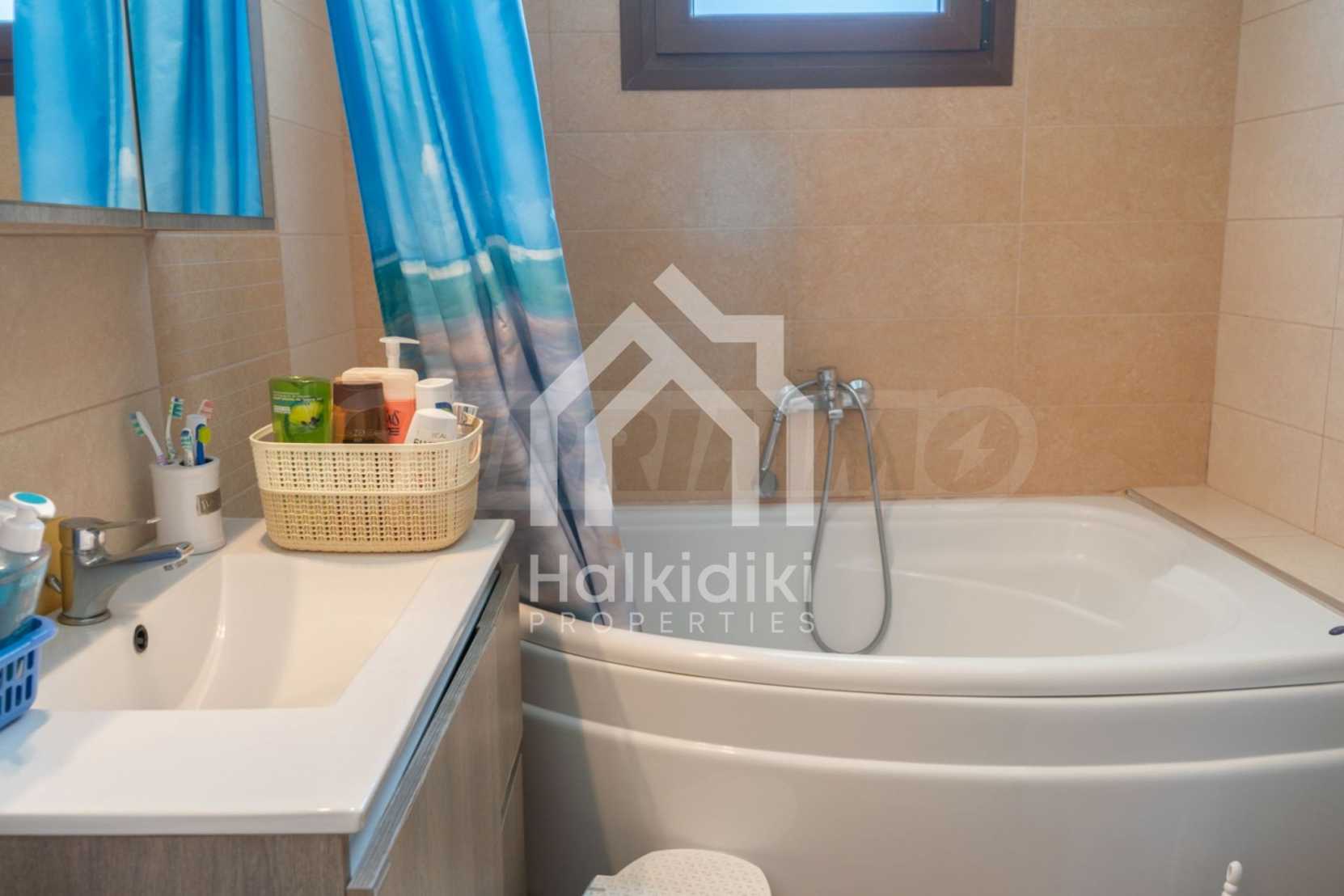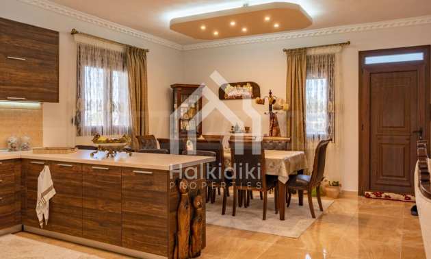Unabhängige Villa, 260 m², in Kassandra, Chalkidiki, mit 650 m² privatem Garten und unverbautem permanenten Meerblick auf die Bucht von Toronaios. Die Liegenschaft befindet sich 2,5 km. vom Strand und dem Zentrum des Dorfes entfernt.Die Maisonette ist auf drei Ebenen aufgeteilt und besteht aus zwei Wohnzimmern, einem Spielzimmer, einer Küche, vier Schlafzimmern, drei Badezimmern und zwei Abstellräumen.Das Anwesen verfügt auch über große Balkone aus Aluminium Tischlerei, Kiosk, Sicherheitstür, Grill, Einbauschränke und Küche. Die Villa ist komplett ausgestattet und möbliert.