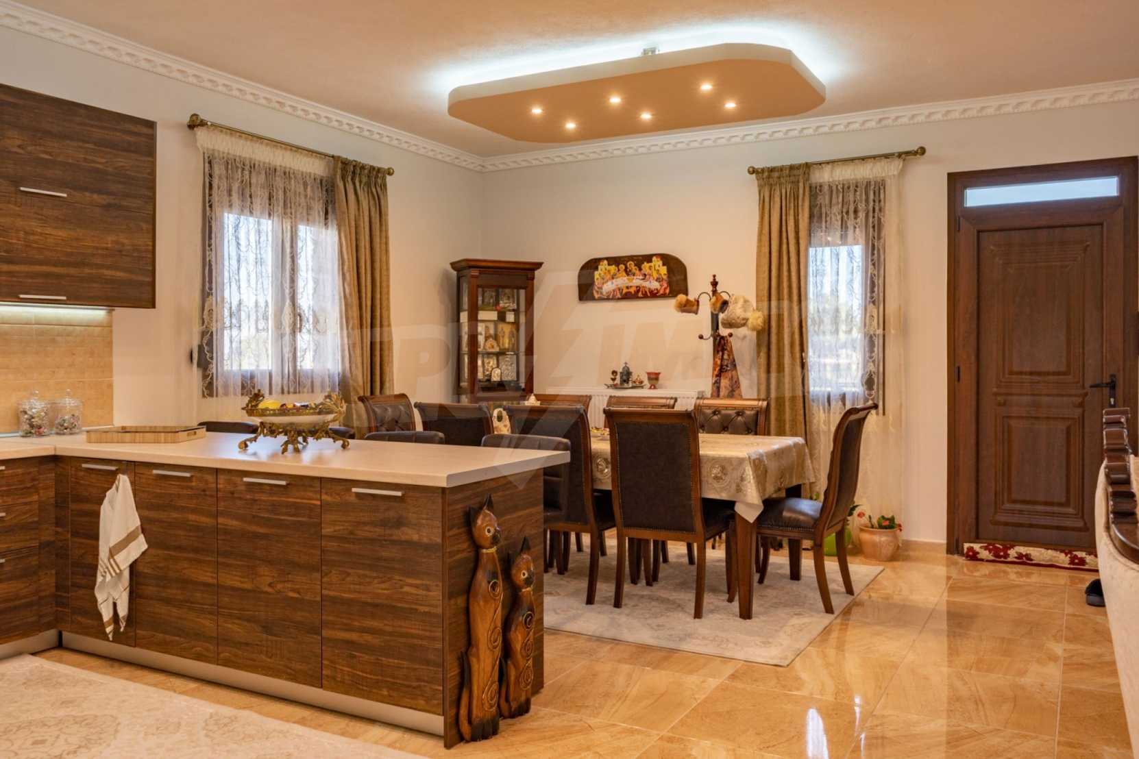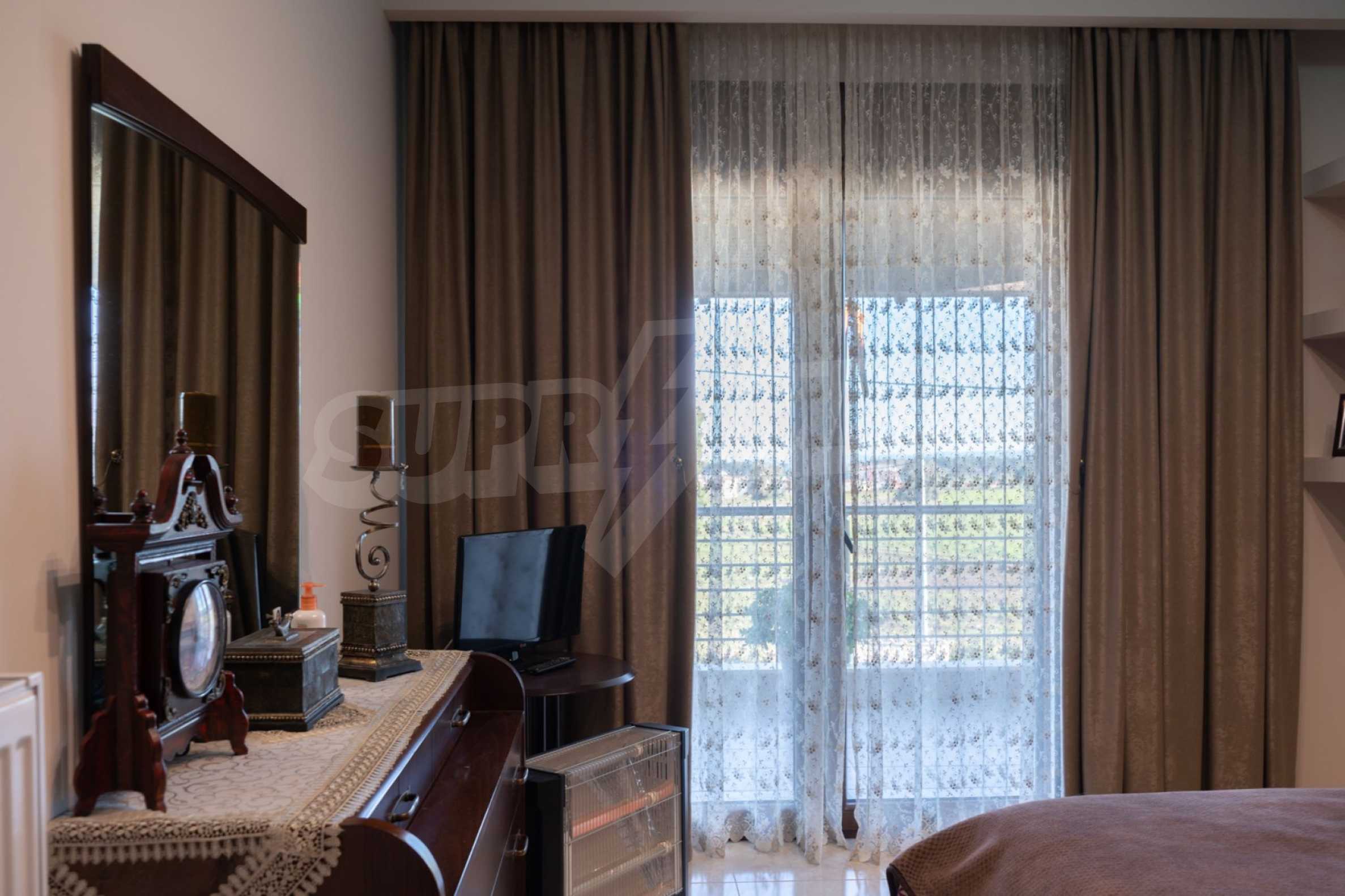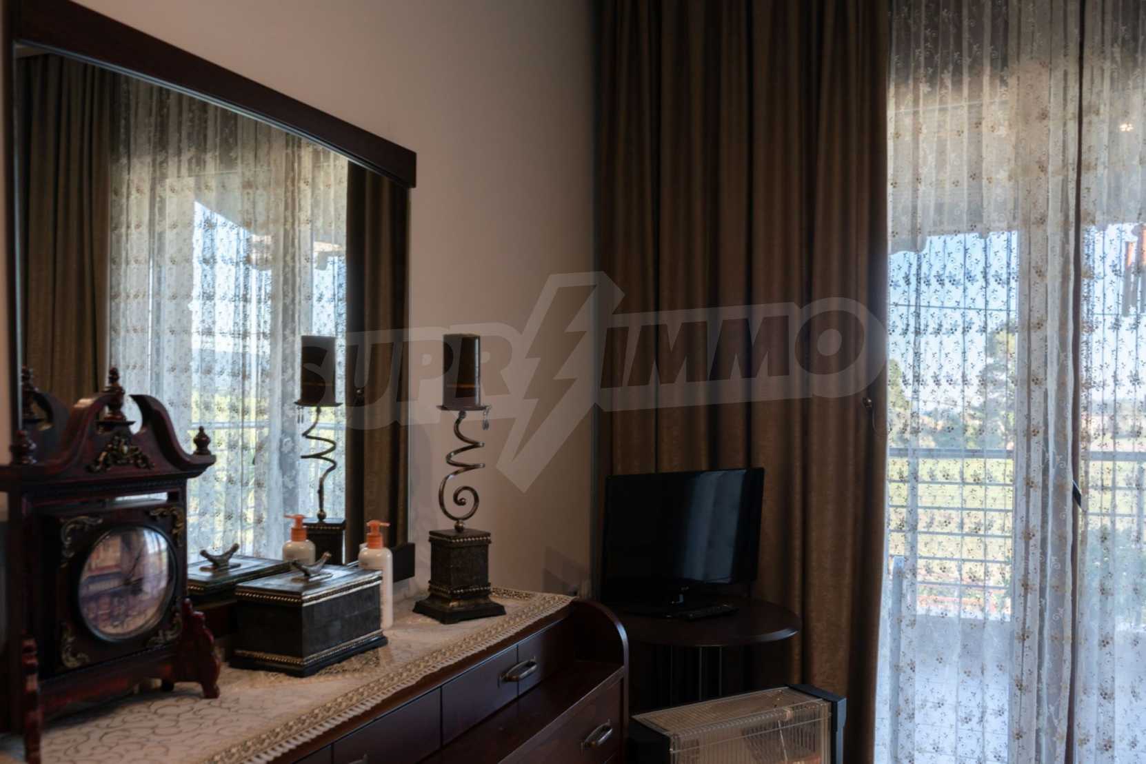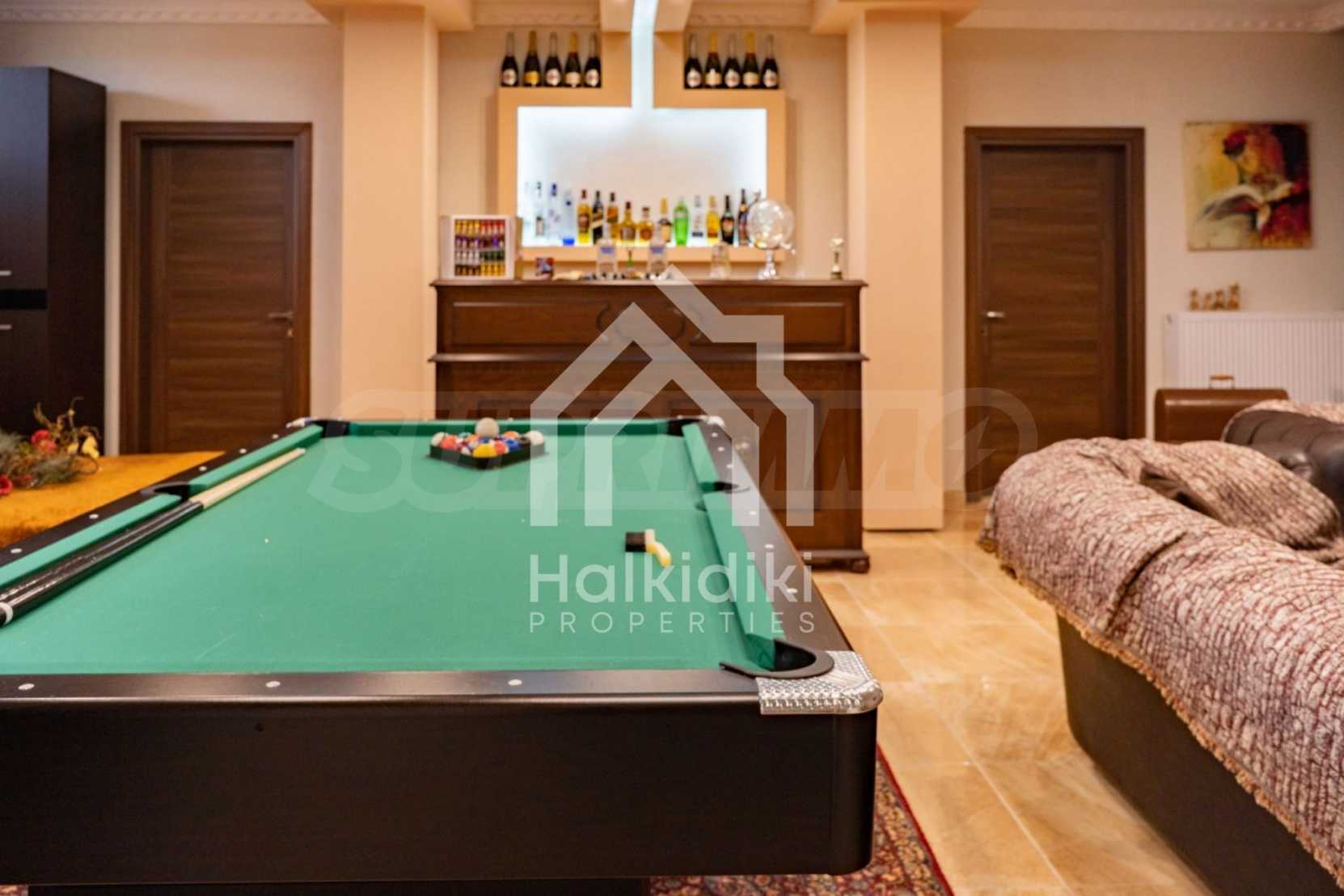 Unabhängige Villa, 260 m², in Kassandra, Chalkidiki, mit 650 m² privatem Garten und unverbautem permanenten Meerblick auf die Bucht von Toronaios. Die Liegenschaft befindet sich 2,5 km. vom Strand und dem Zentrum des Dorfes entfernt.Die Maisonette ist auf drei Ebenen aufgeteilt und besteht aus zwei Wohnzimmern, einem Spielzimmer, einer Küche, vier Schlafzimmern, drei Badezimmern und zwei Abstellräumen.Das Anwesen verfügt auch über große Balkone aus Aluminium Tischlerei, Kiosk, Sicherheitstür, Grill, Einbauschränke und Küche. Die Villa ist komplett ausgestattet und möbliert.