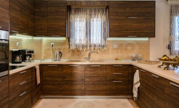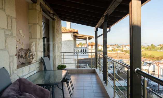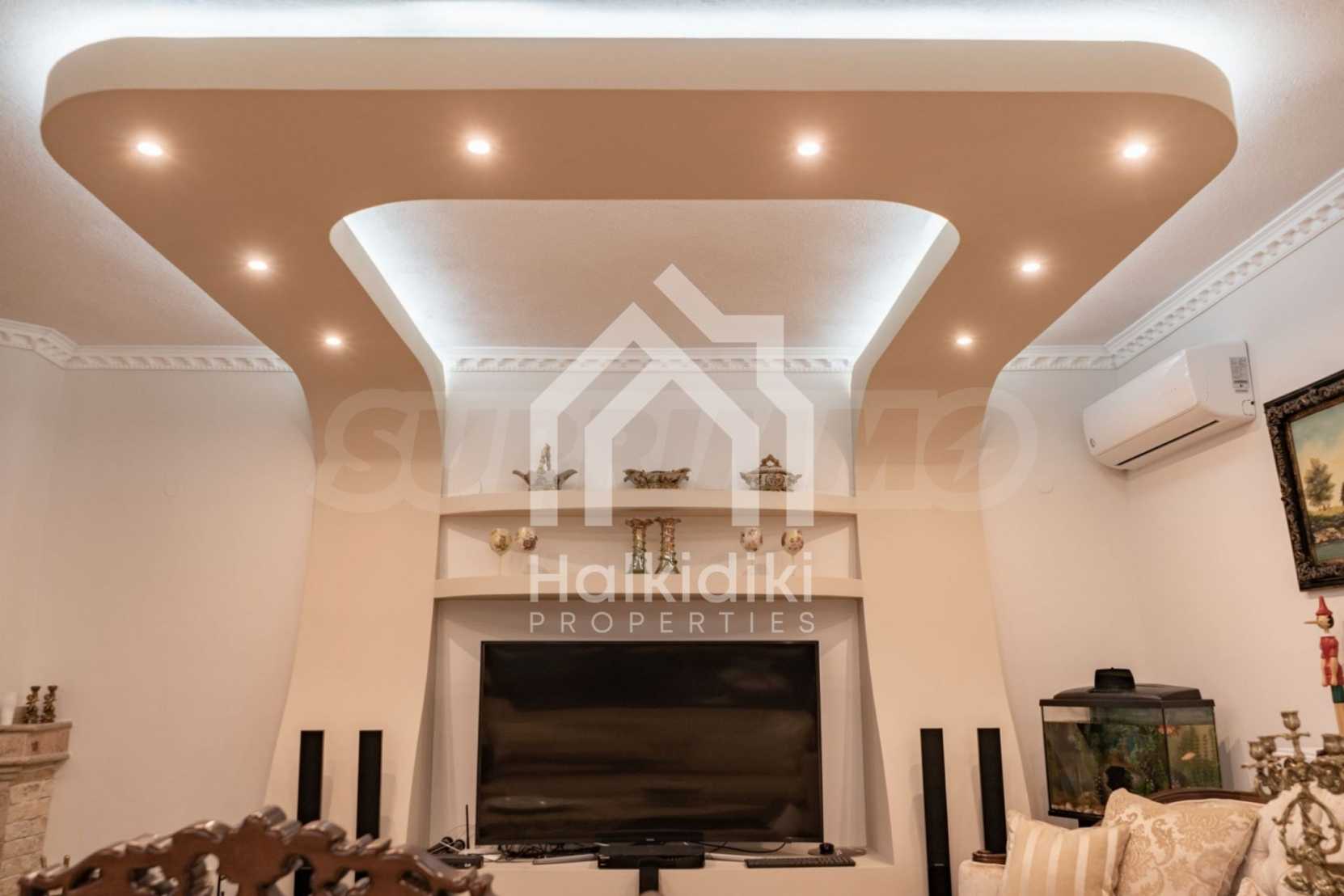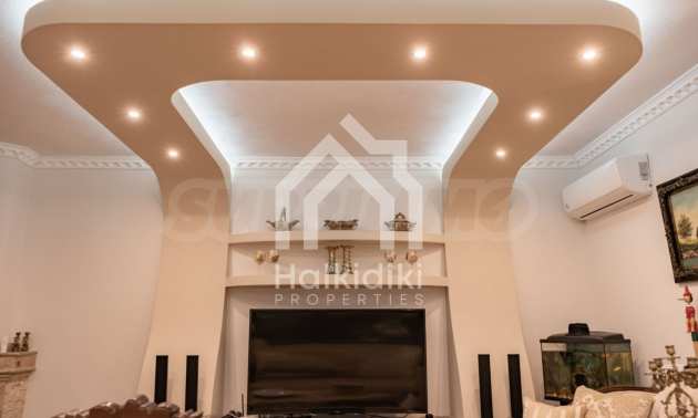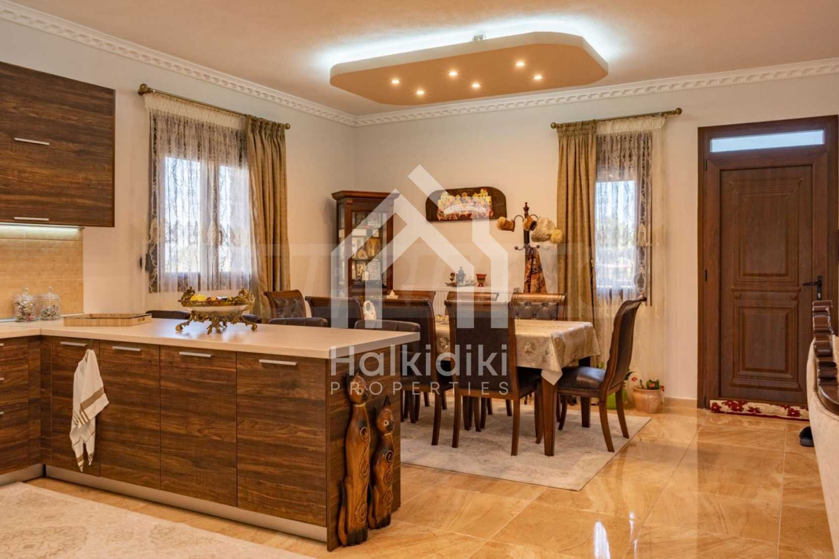 Unabhängige Villa, 260 m², in Kassandra, Chalkidiki, mit 650 m² privatem Garten und unverbautem permanenten Meerblick auf die Bucht von Toronaios. Die Liegenschaft befindet sich 2,5 km. vom Strand und dem Zentrum des Dorfes entfernt.Die Maisonette ist auf drei Ebenen aufgeteilt und besteht aus zwei Wohnzimmern, einem Spielzimmer, einer Küche, vier Schlafzimmern, drei Badezimmern und zwei Abstellräumen.Das Anwesen verfügt auch über große Balkone aus Aluminium Tischlerei, Kiosk, Sicherheitstür, Grill, Einbauschränke und Küche. Die Villa ist komplett ausgestattet und möbliert.