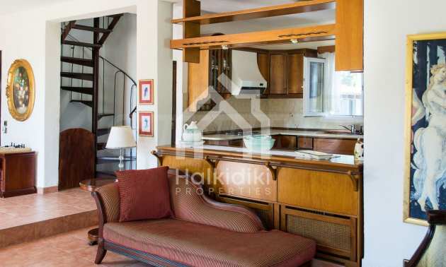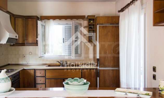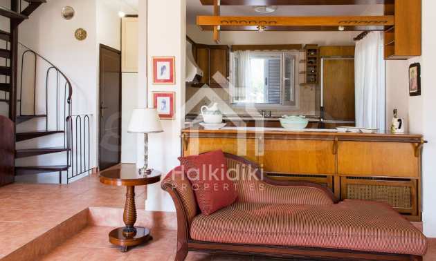 Zum Verkauf gelangt dieses voll möblierte zweistöckige Haus im Df. Paliouri auf Chalkidiki.