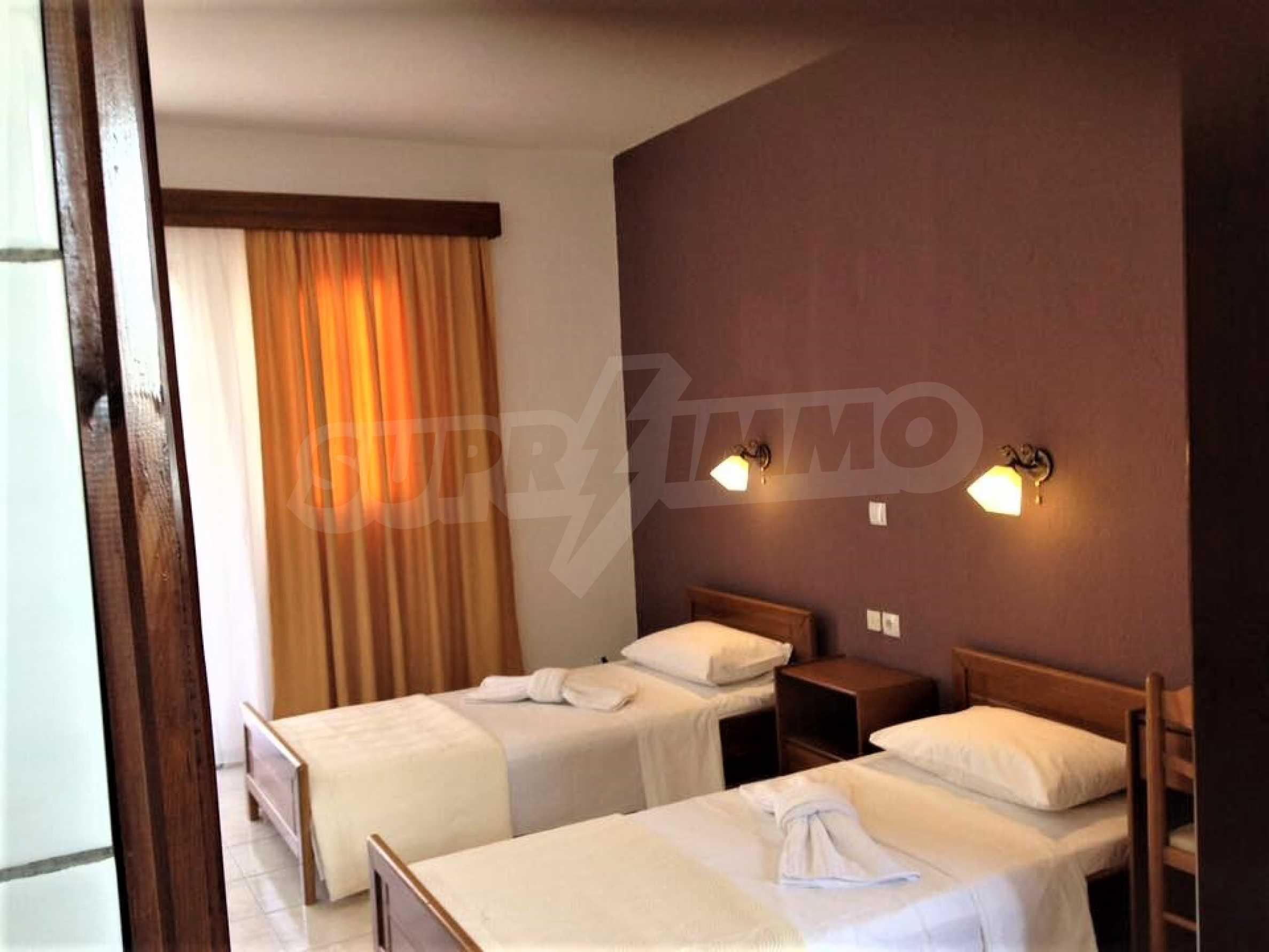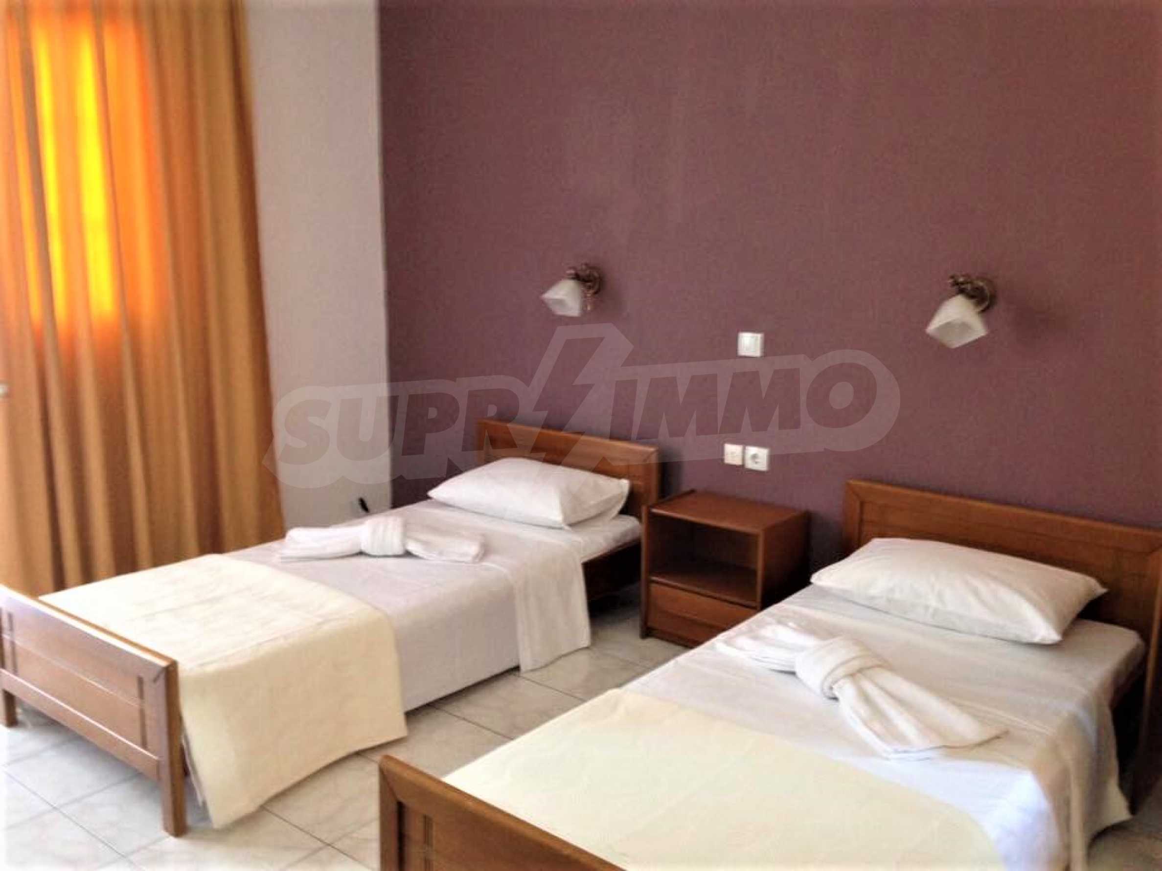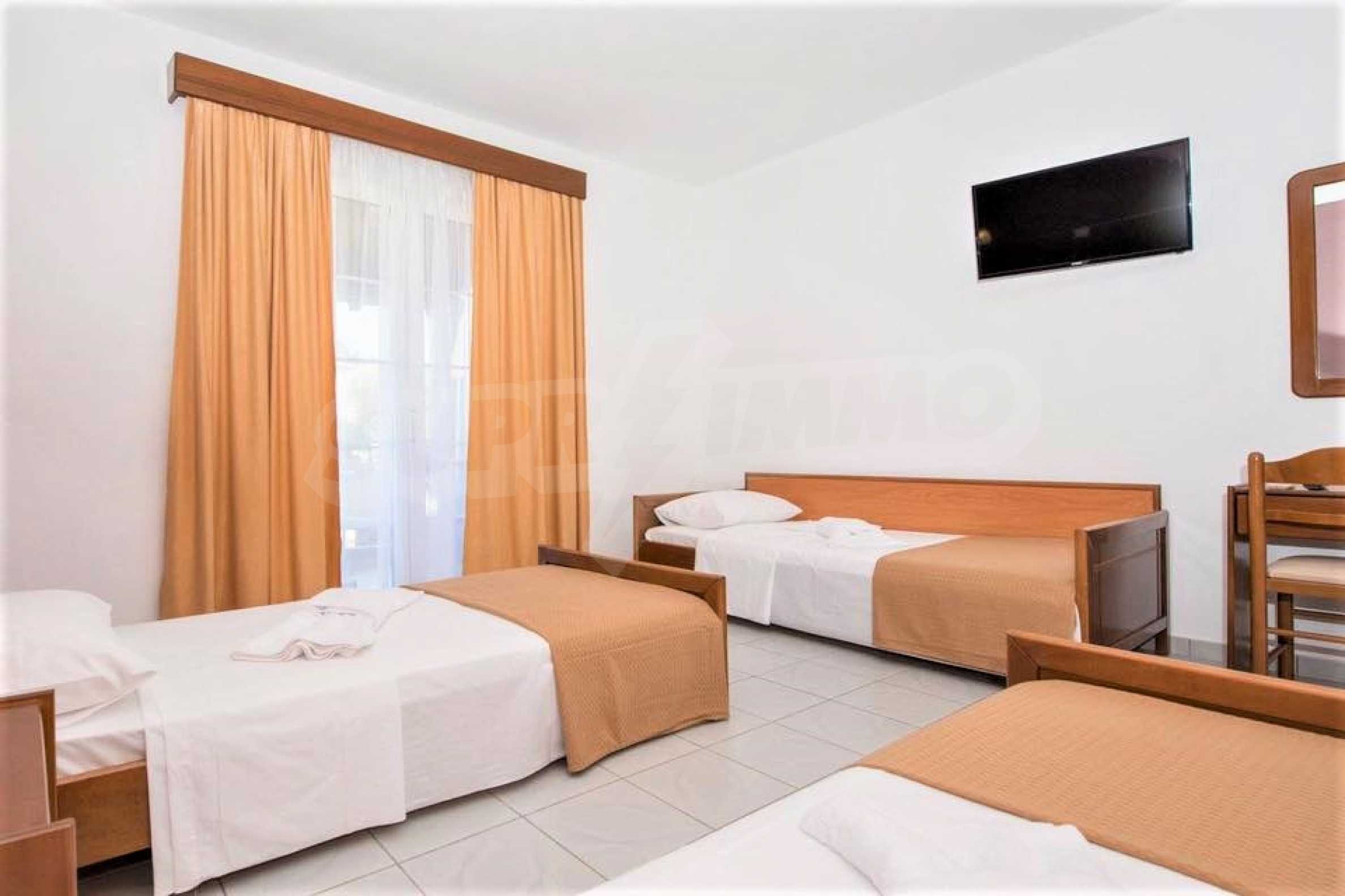 Zu verkaufen Hotel in Limenas, Thassos, Griechenland. Es besteht aus 3 Doppel- und 15 Dreibettzimmern, 1 Apartment mit einem Schlafzimmer, Rezeption 40 m², 2 Zimmern mit Badezimmern und Toiletten für Hilfspersonal, Lagerung, Waschküche, Heizkessel 2000l. mit 15 Sonnenkollektoren. Ein angrenzendes Grundstück von 160 qm wurde gekauft. Für einen Parkplatz, der 190 m² groß sein kann. Im vergangenen Jahr wurde die Sanitärinstallation komplett ersetzt und alle Badezimmer wurden repariert. Das Gebäude ist 830 m² groß, der Hof 810 m² groß, mit den richtigen Dokumenten und erlaubt.