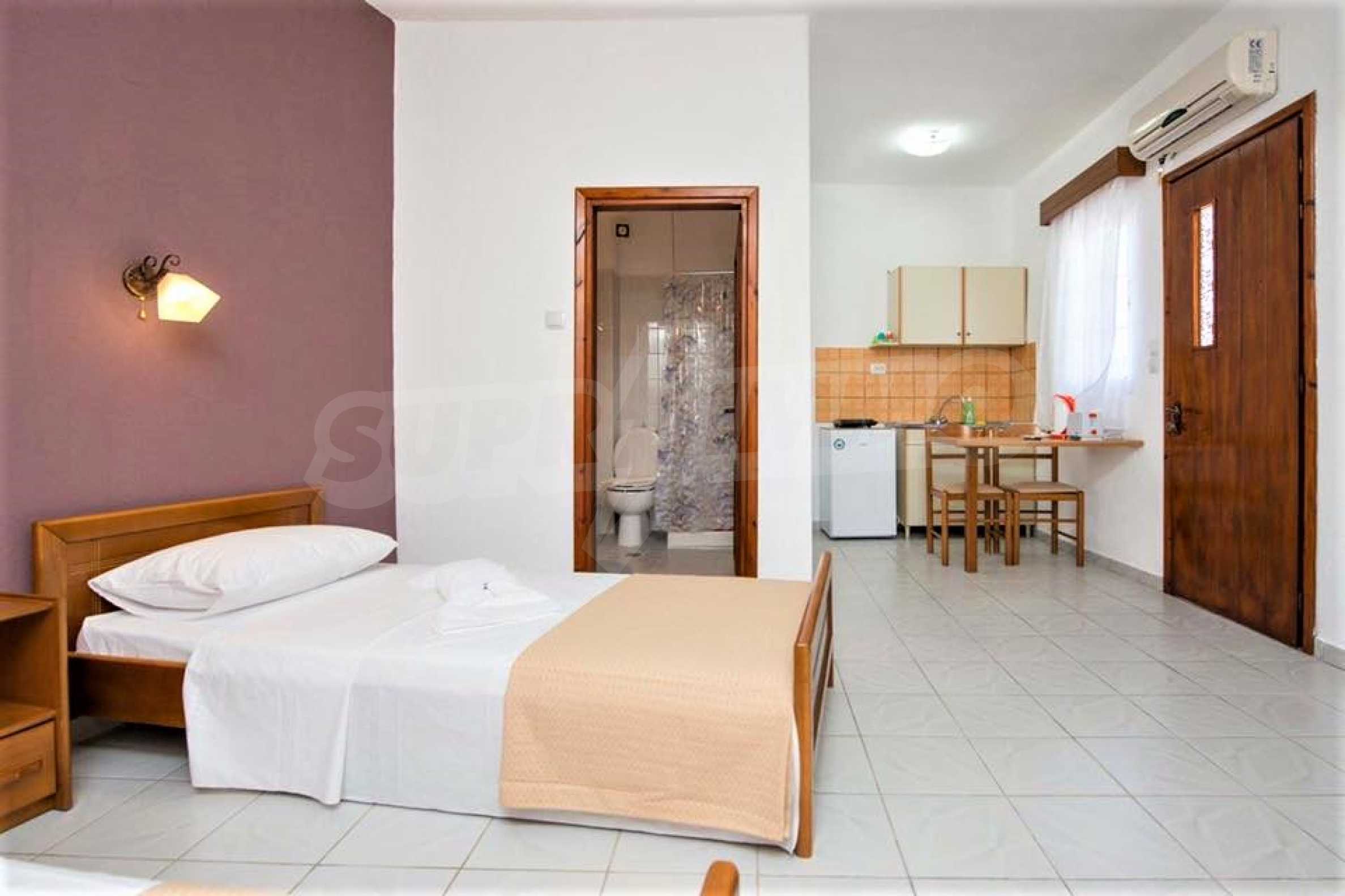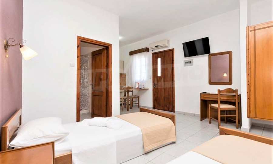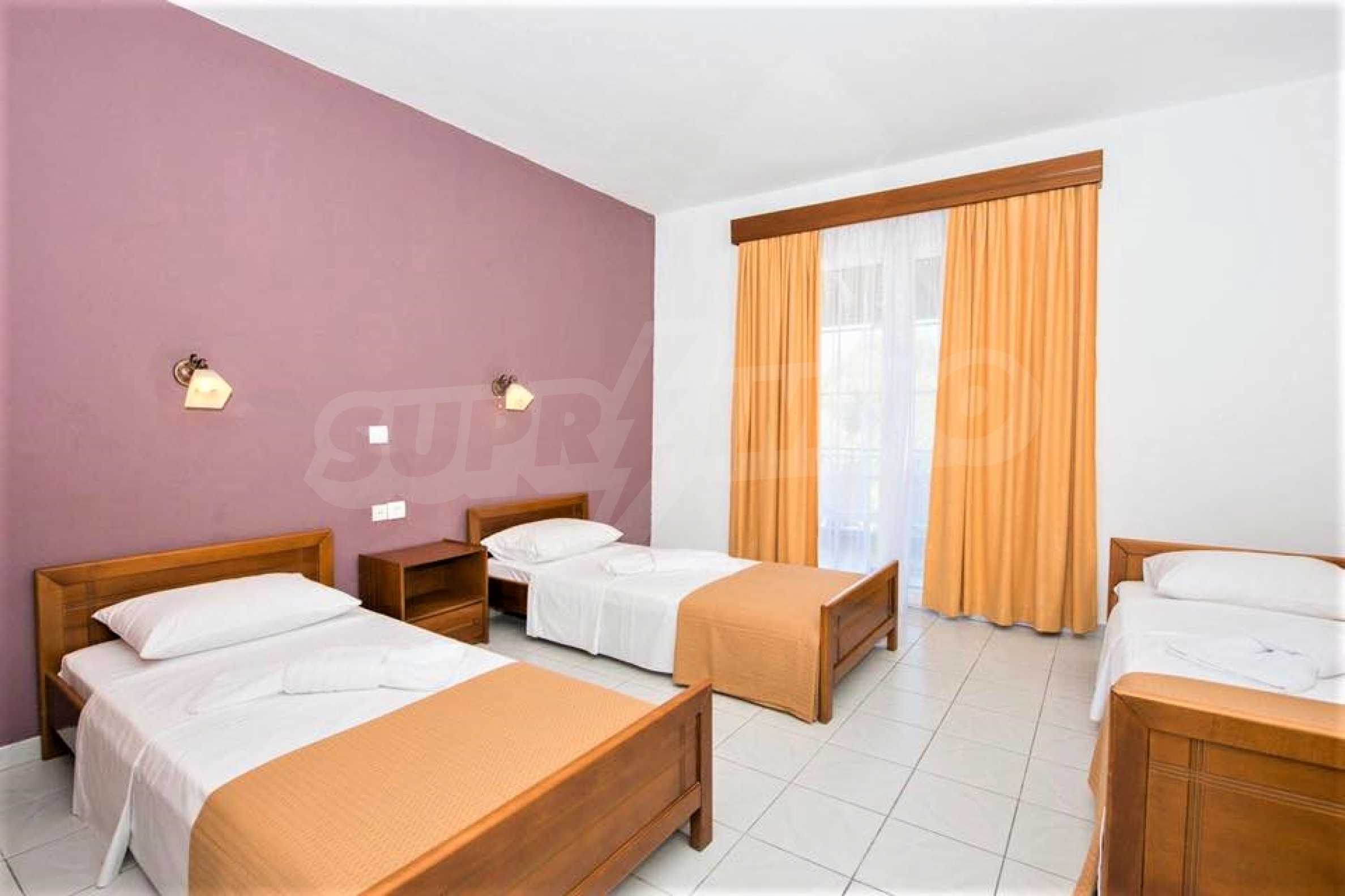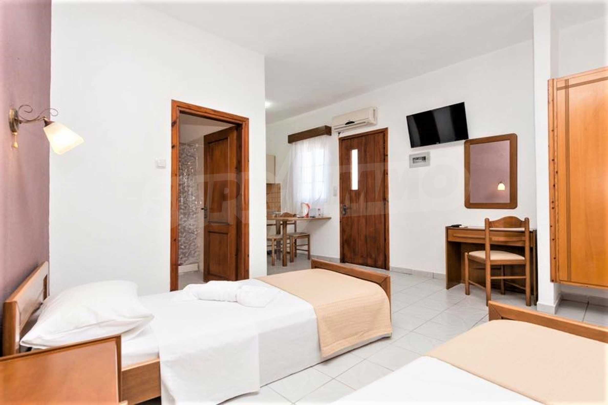 Zu verkaufen Hotel in Limenas, Thassos, Griechenland. Es besteht aus 3 Doppel- und 15 Dreibettzimmern, 1 Apartment mit einem Schlafzimmer, Rezeption 40 m², 2 Zimmern mit Badezimmern und Toiletten für Hilfspersonal, Lagerung, Waschküche, Heizkessel 2000l. mit 15 Sonnenkollektoren. Ein angrenzendes Grundstück von 160 qm wurde gekauft. Für einen Parkplatz, der 190 m² groß sein kann. Im vergangenen Jahr wurde die Sanitärinstallation komplett ersetzt und alle Badezimmer wurden repariert. Das Gebäude ist 830 m² groß, der Hof 810 m² groß, mit den richtigen Dokumenten und erlaubt.
