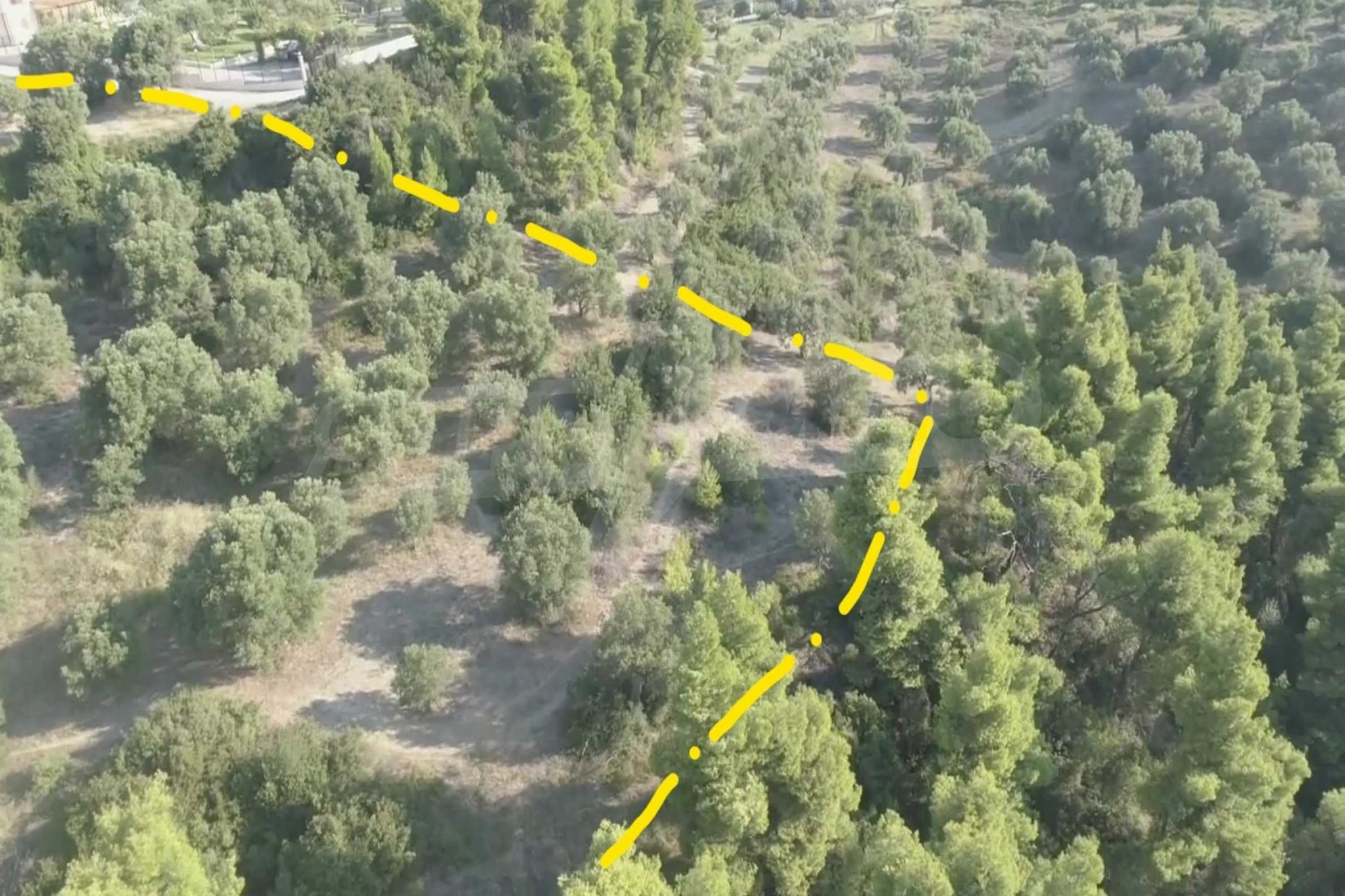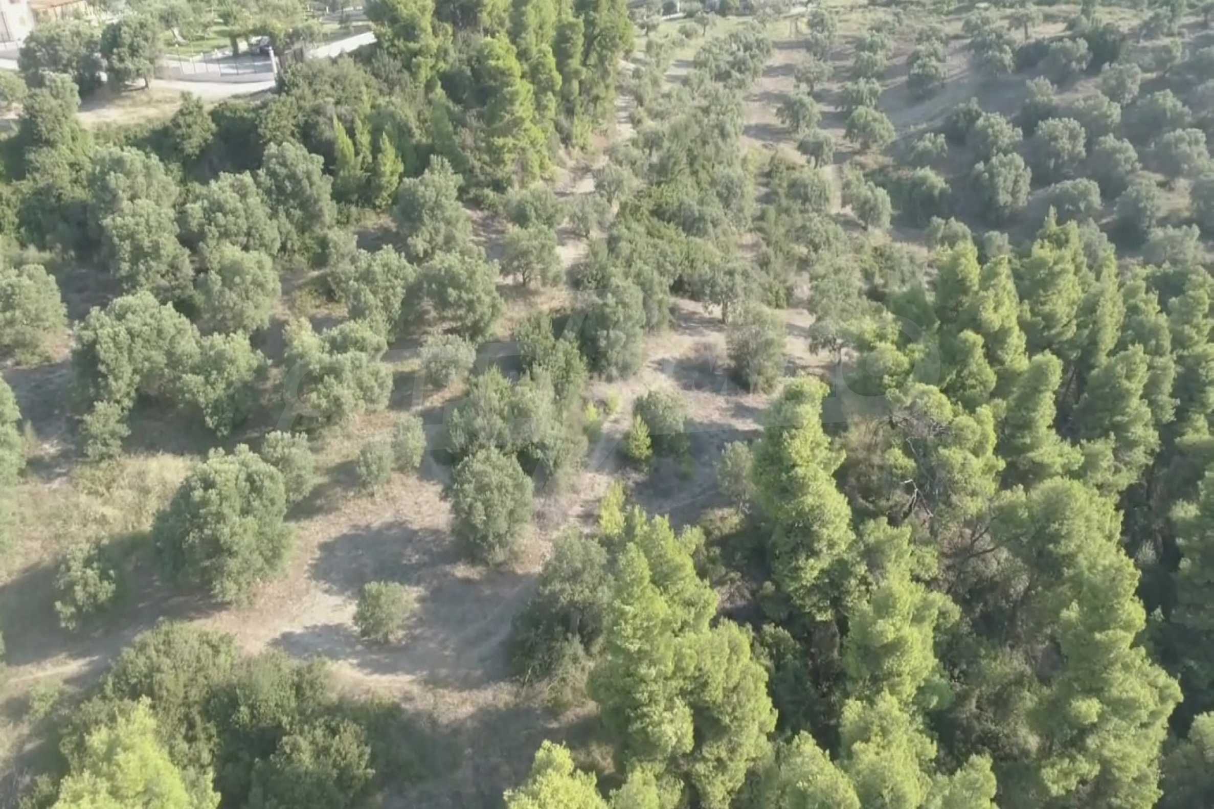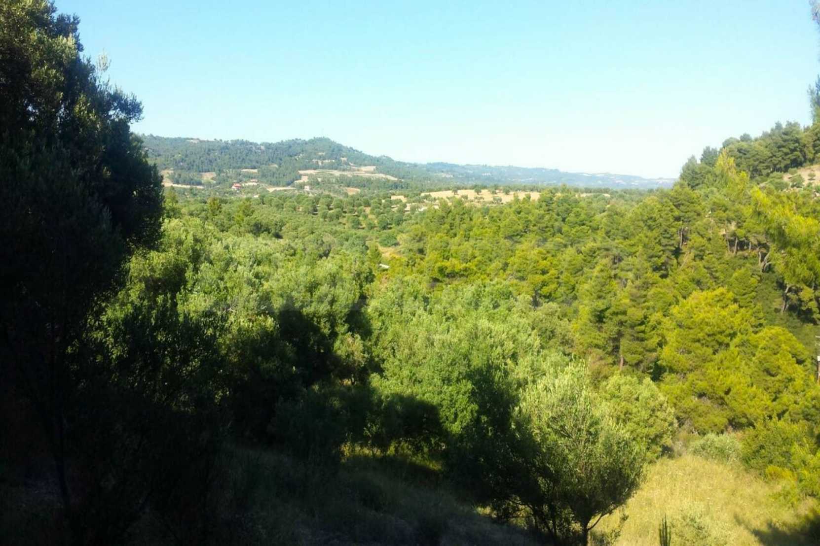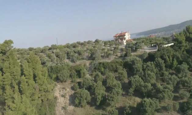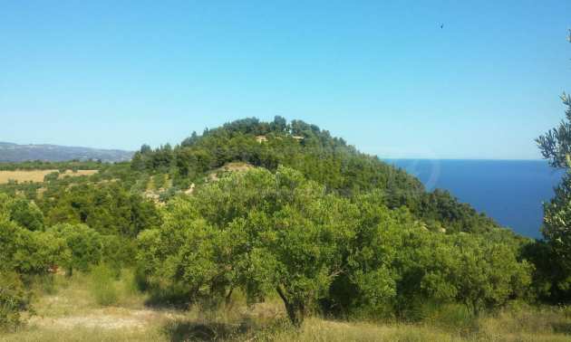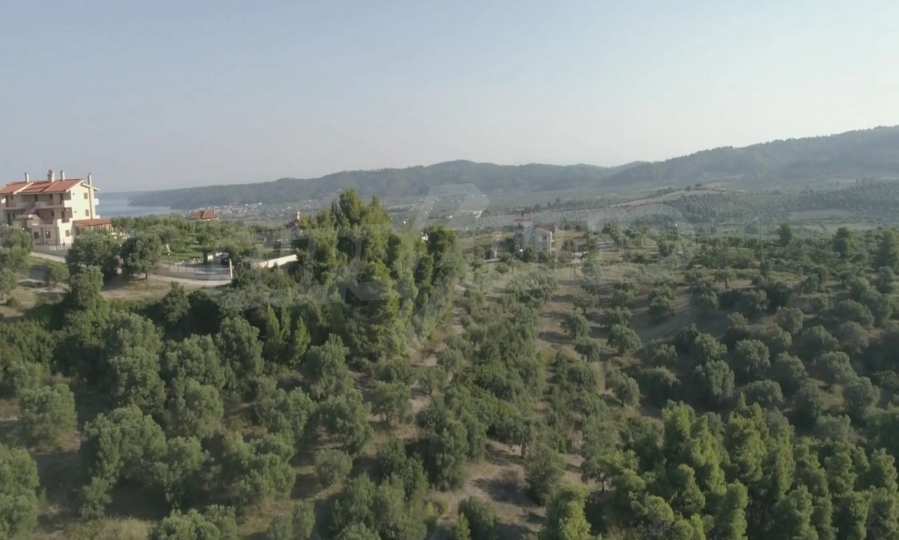 Ausgezeichnetes Panoramafeld, 9427 mÂІ in Kassandra, Chalkidiki. Es hat einen großen offenen Raum, ist amphitheatralisch und hat freien Blick auf die Berge und das Meer. Es liegt außerhalb des Dorfes, nur 450 m vom Strand und 700 m vom Dorfzentrum entfernt. Es ist auch komplett, baubar und perfekt für den professionellen Gebrauch und für den Bau einer Villa. Darüber hinaus hat das Feld einen großen Olivenhain im Inneren.