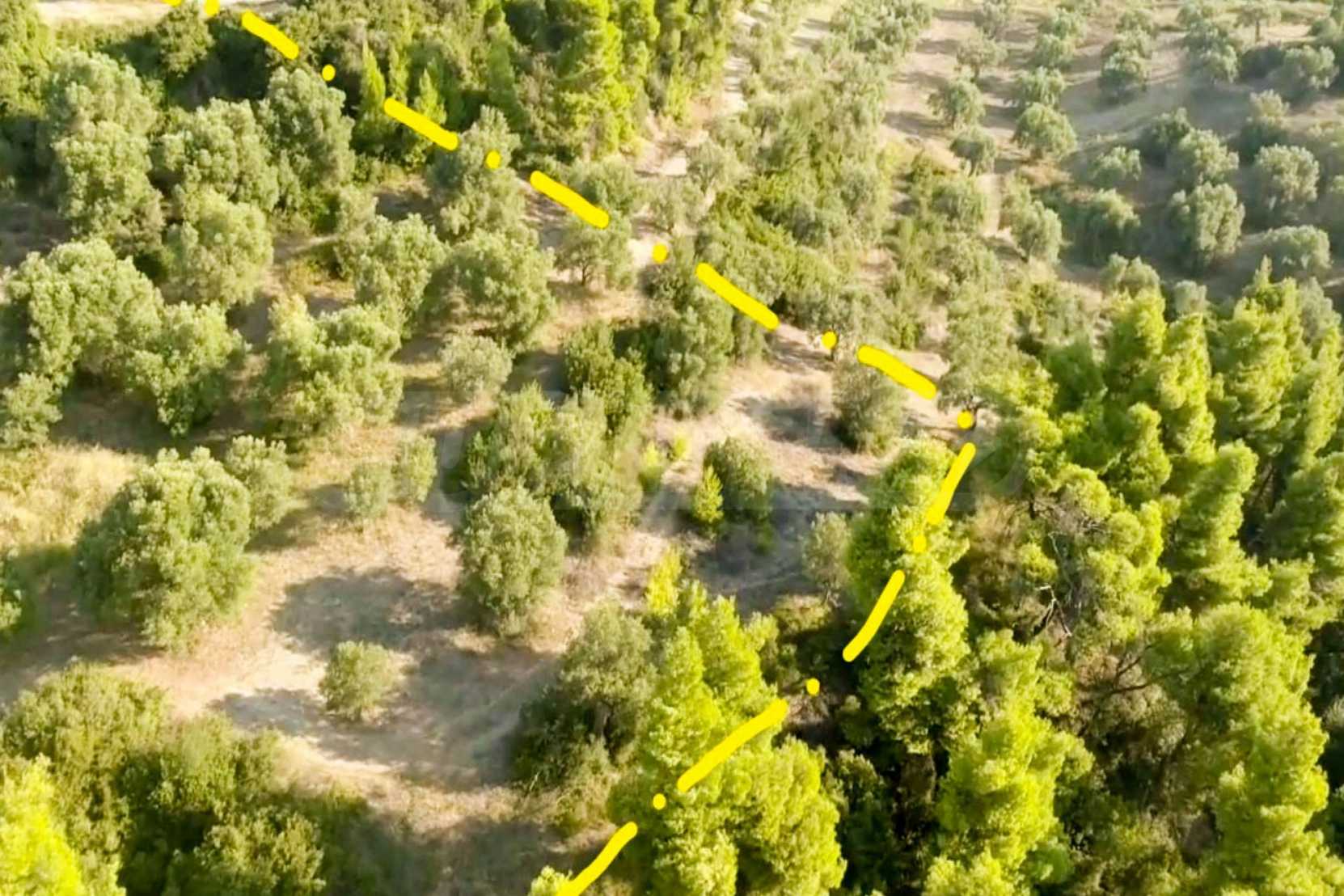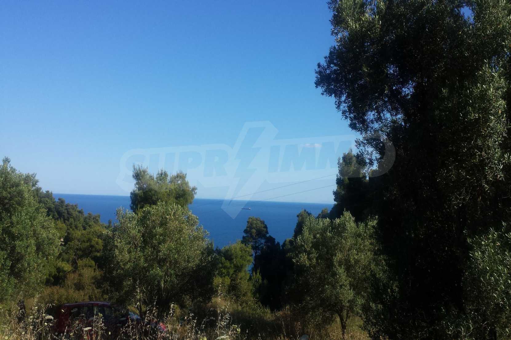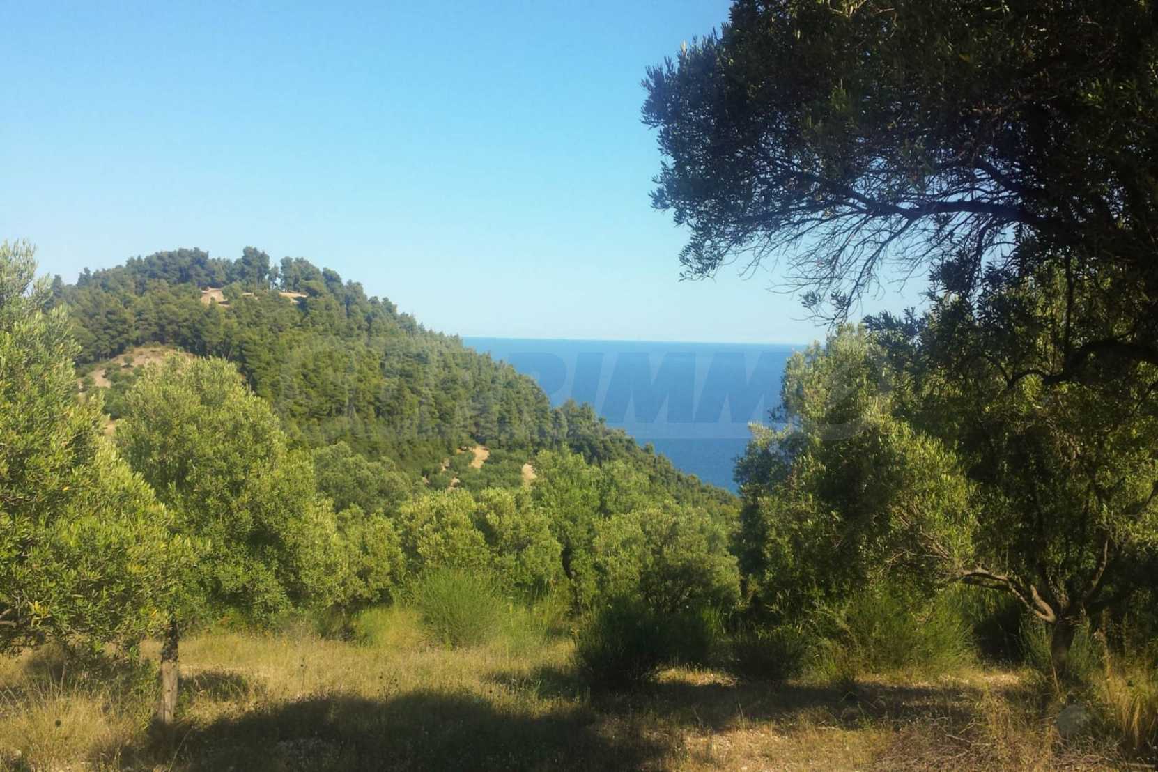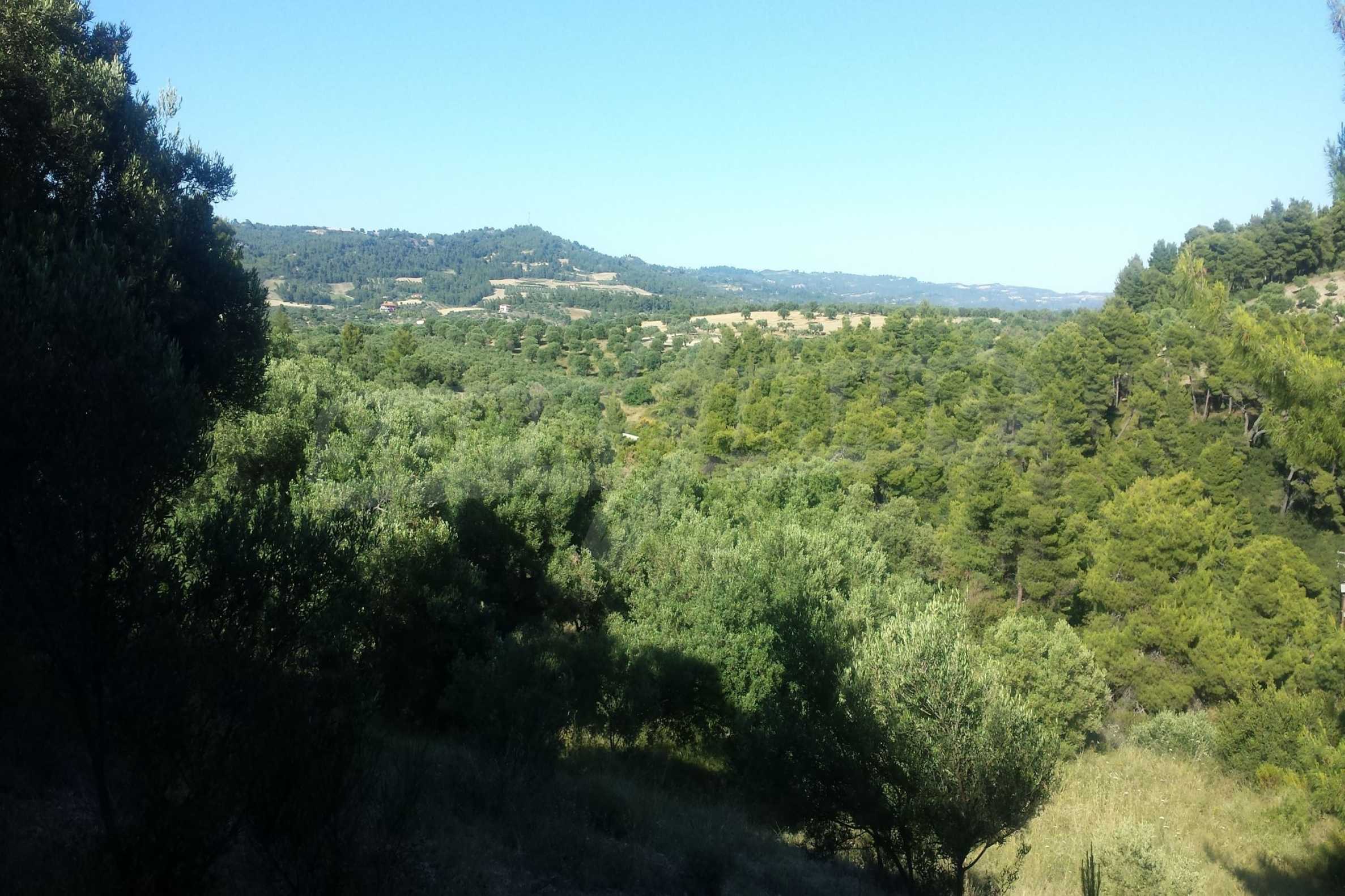 Ausgezeichnetes Panoramafeld, 9427 mÂІ in Kassandra, Chalkidiki. Es hat einen großen offenen Raum, ist amphitheatralisch und hat freien Blick auf die Berge und das Meer. Es liegt außerhalb des Dorfes, nur 450 m vom Strand und 700 m vom Dorfzentrum entfernt. Es ist auch komplett, baubar und perfekt für den professionellen Gebrauch und für den Bau einer Villa. Darüber hinaus hat das Feld einen großen Olivenhain im Inneren.