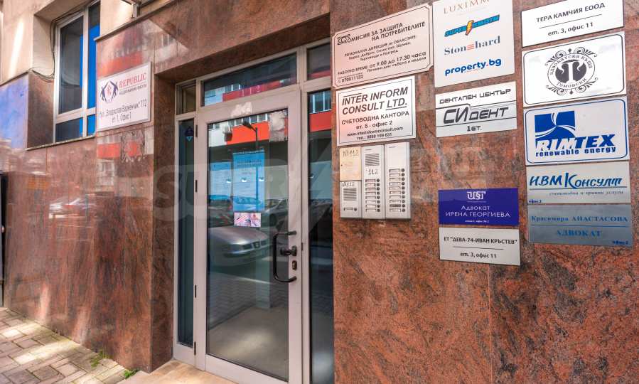 Wir bieten Ihnen eine attraktive Gewerbefläche zur Miete an - geräumiges und helles Büro mit einer Gesamtfläche von 94.11 m² (inkl. Gemeinschaftsanteile). Die Immobilie befindet sich im 3. Geschoss des prestigeträchtigen Geschäftsgebäudes Oligarch, das am Vladislav Varnenchik 112 Blvd. liegt. Die Lage im Lyatno kino Trakiya Viertel ist sehr günstig und ist in unmittelbarer Nähe von McDonalds drive. Das Zentrum von Warna ist in 3-4 Autominuten zu erreichen.