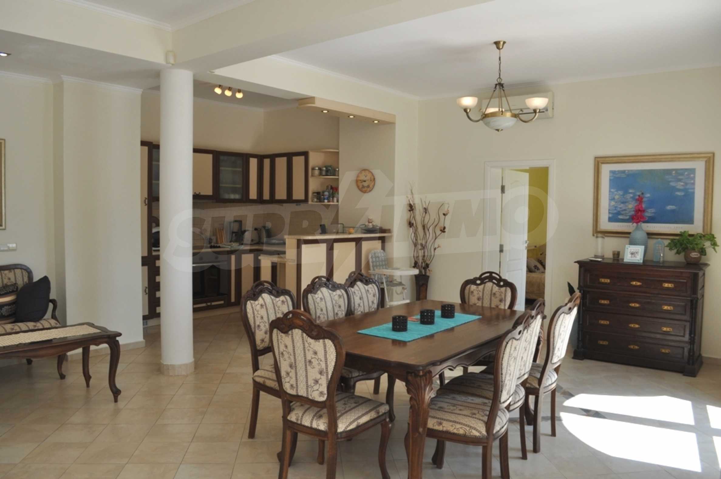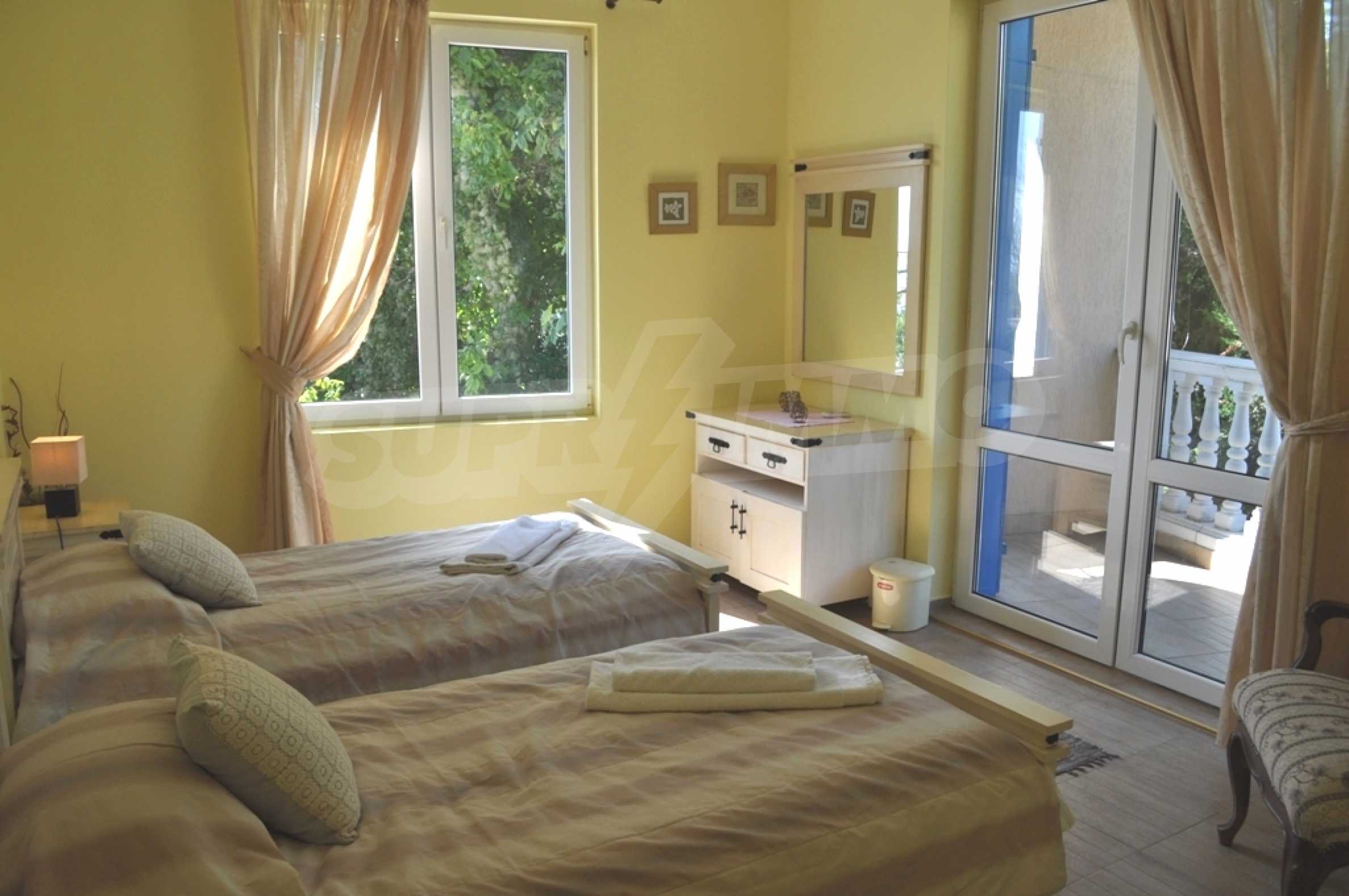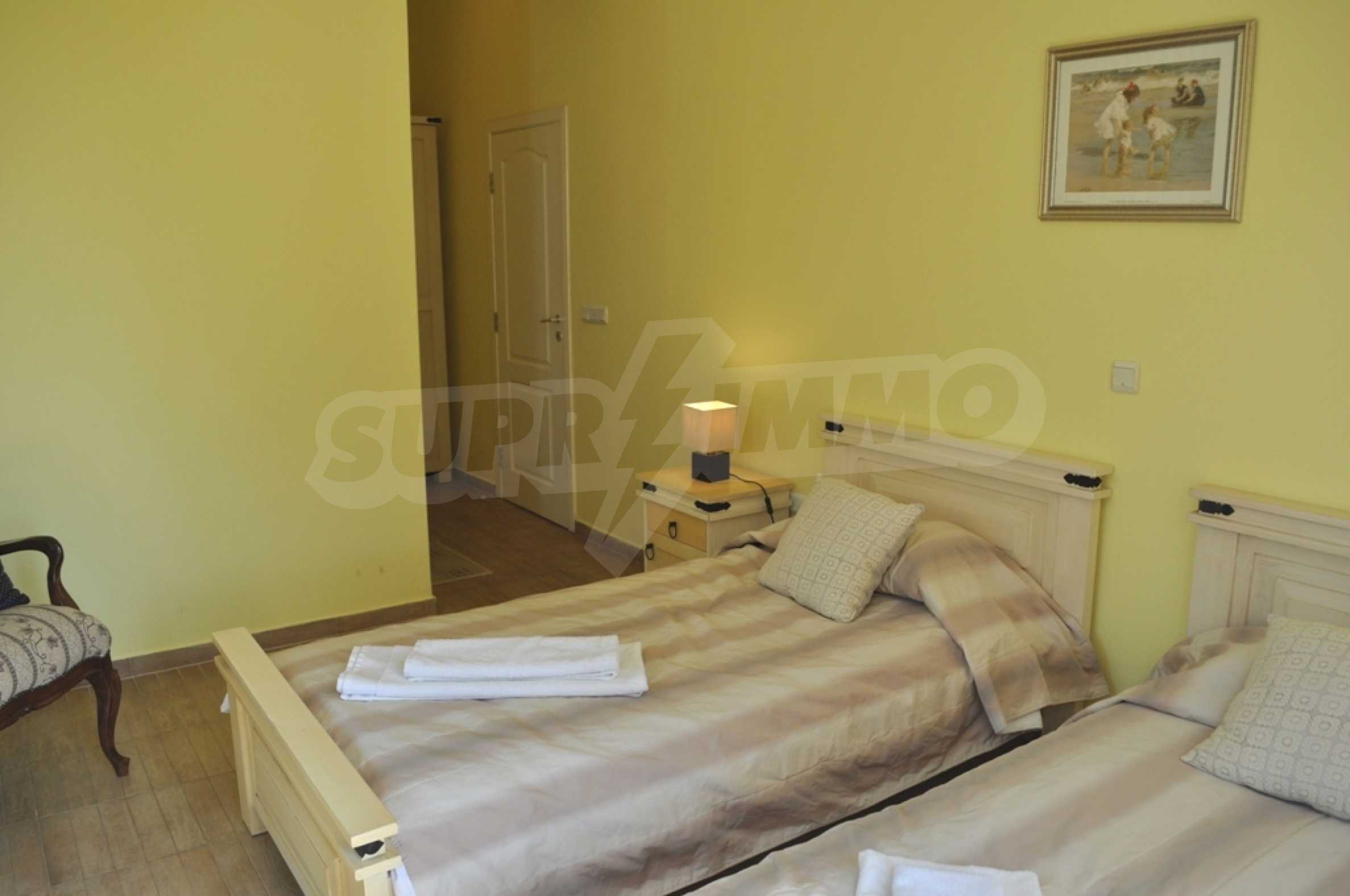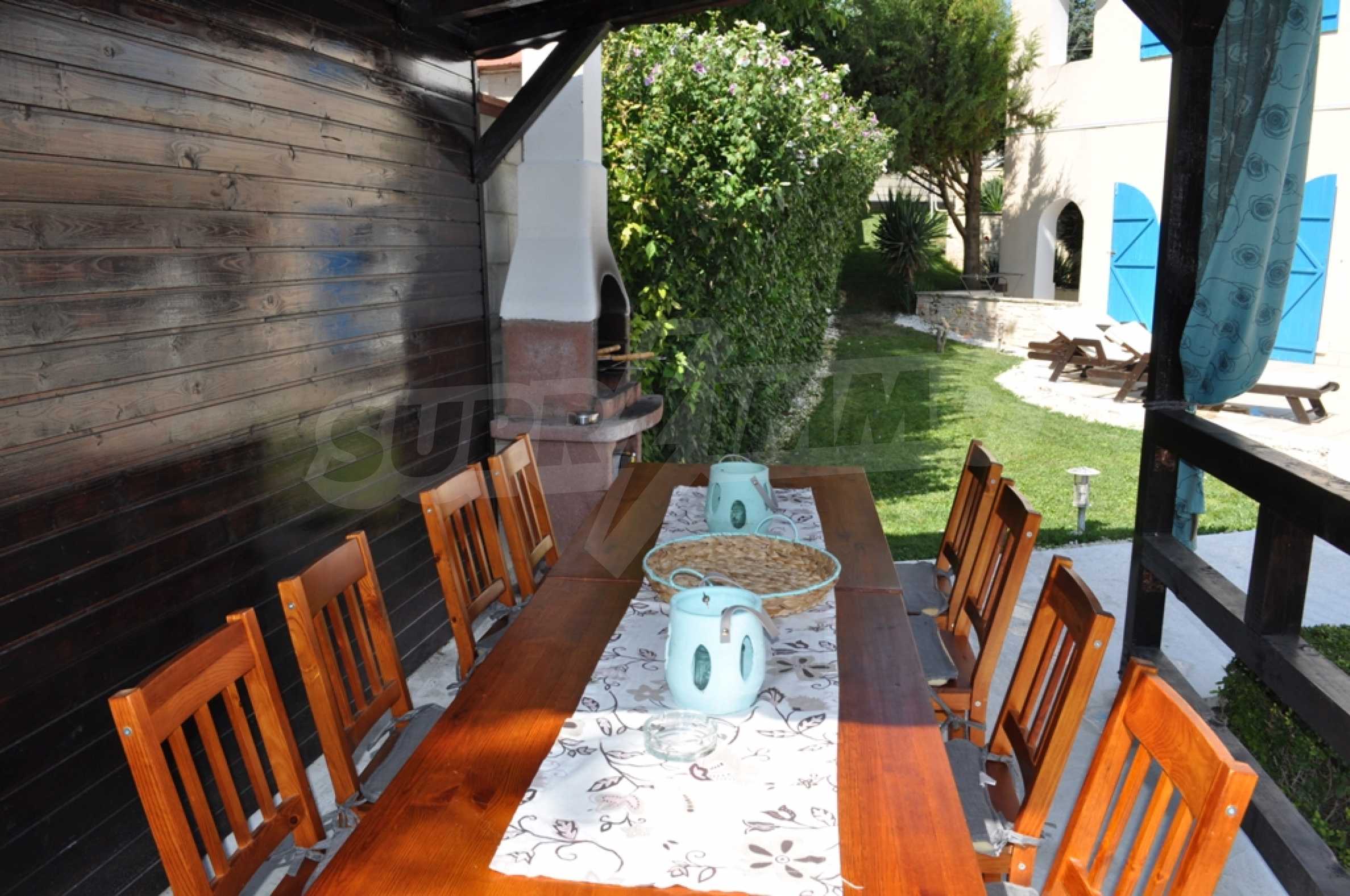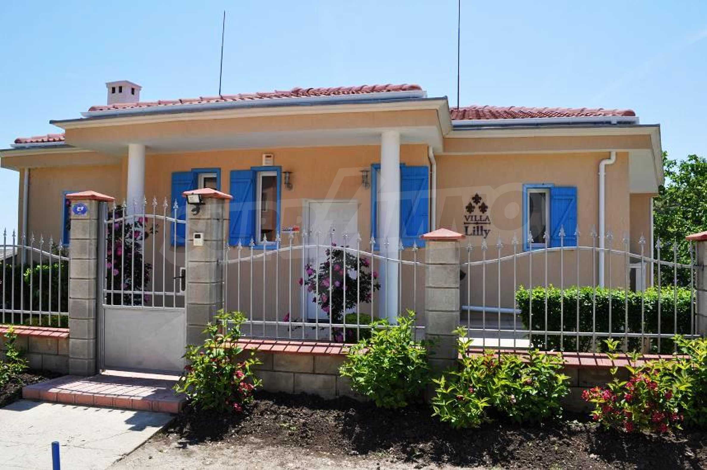 Die Villa „Classic“ ist eine großartige Gelegenheit für Ihren Familienurlaub an der nördlichen Schwarzmeerküste. Die Villa wird Sie mit ihrer wunderbaren Lage in einer ruhigen Villengegend zwischen Albena und Balchik, nur etwa einen Kilometer von der Küste entfernt, überraschen. Die Villa „Classic“ bietet alle modernen Annehmlichkeiten, die in Kombination mit der bezaubernden Umgebung den Gästen der Villa einen luxuriösen Urlaub ermöglichen.