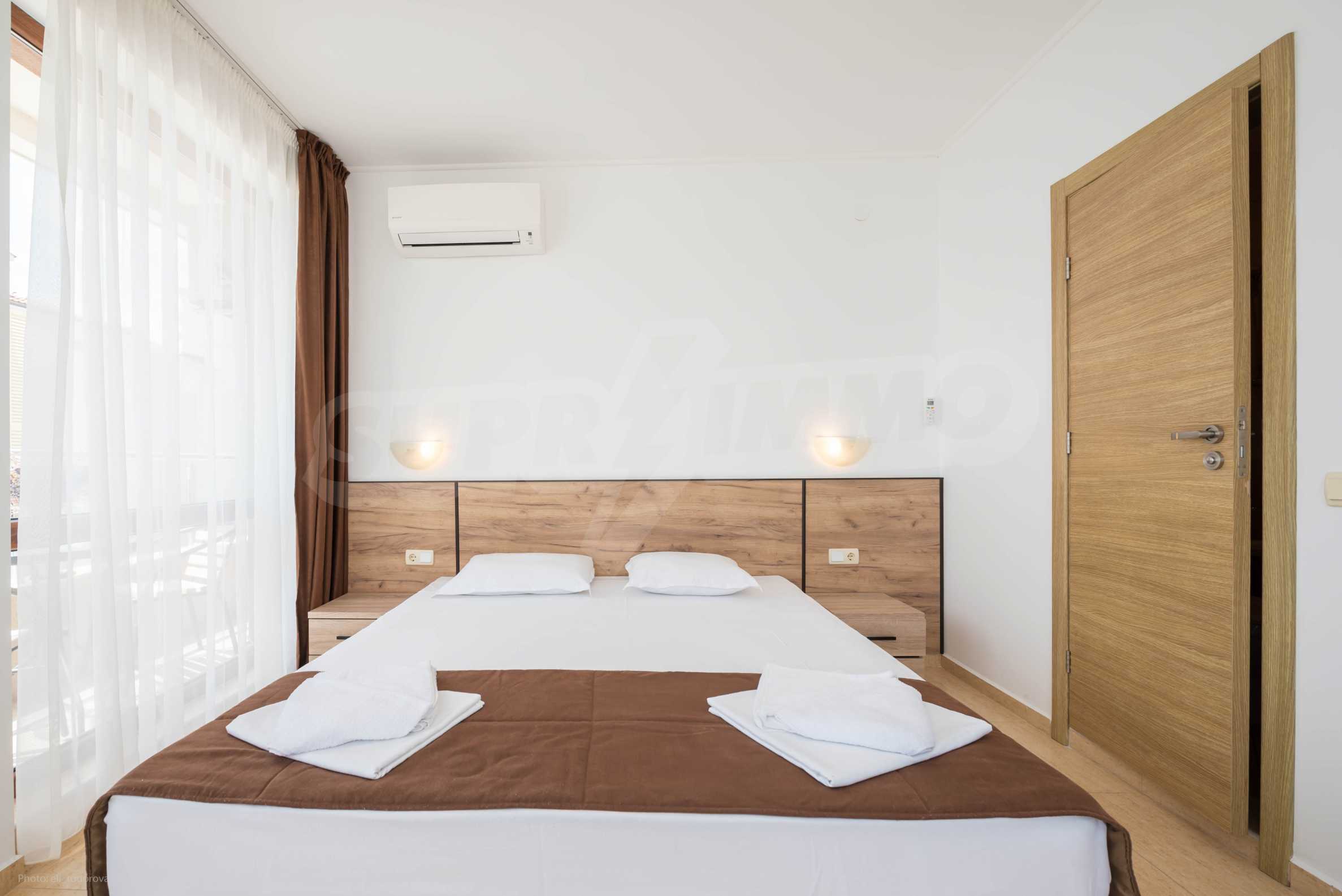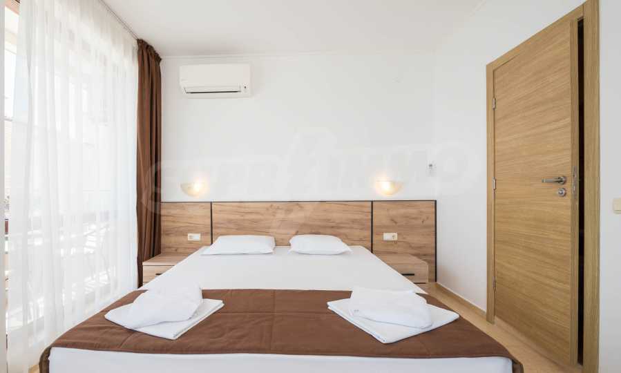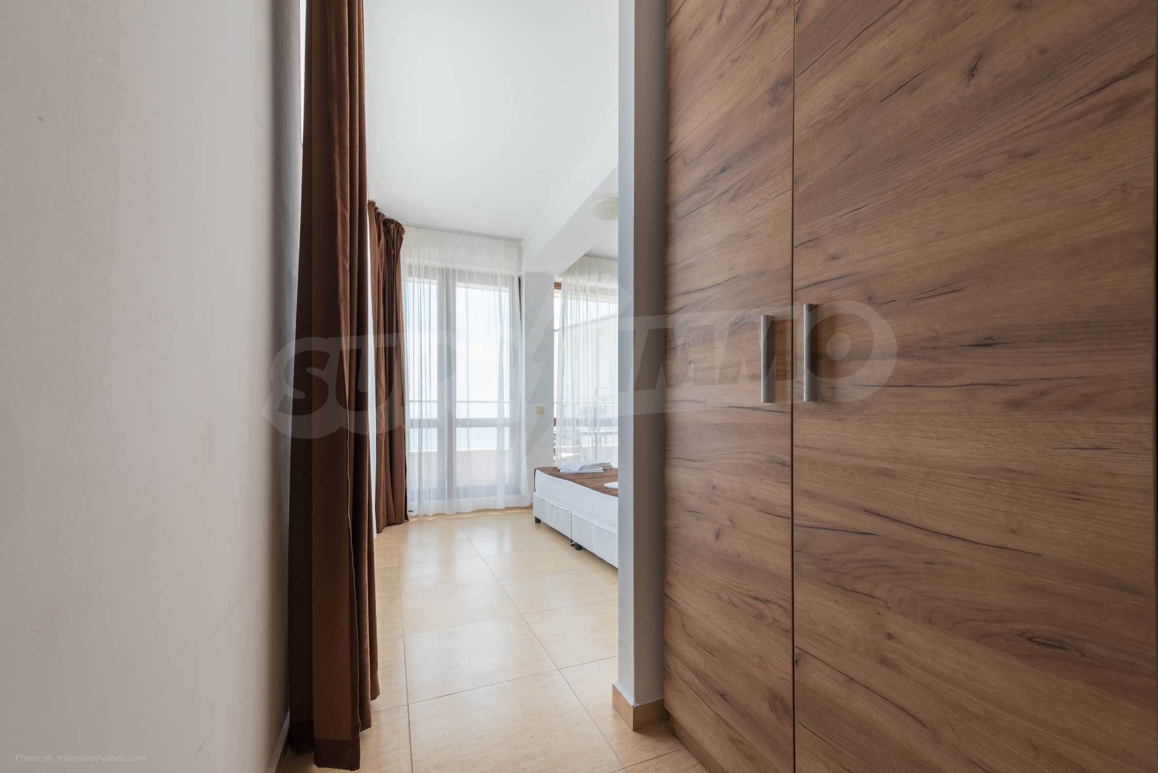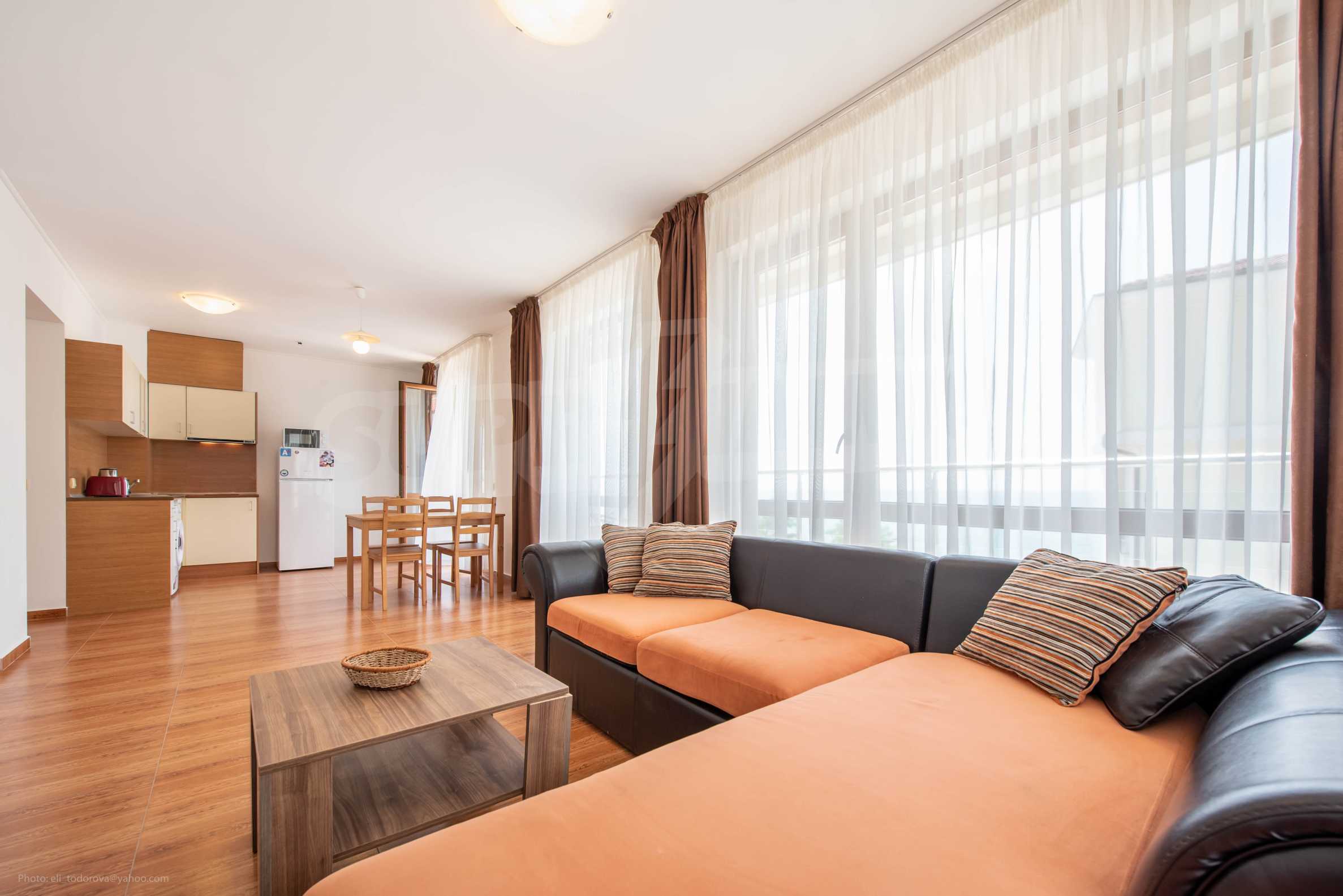 Wir präsentieren Ihnen ein ausgezeichnetes, komfortabel eingerichtetes Apartment mit zwei Schlafzimmern und Meerblick zur Miete im Komplex Princess Residence an der Küste im Ferienort Balchik.