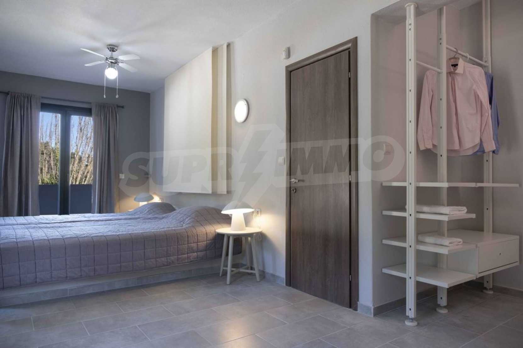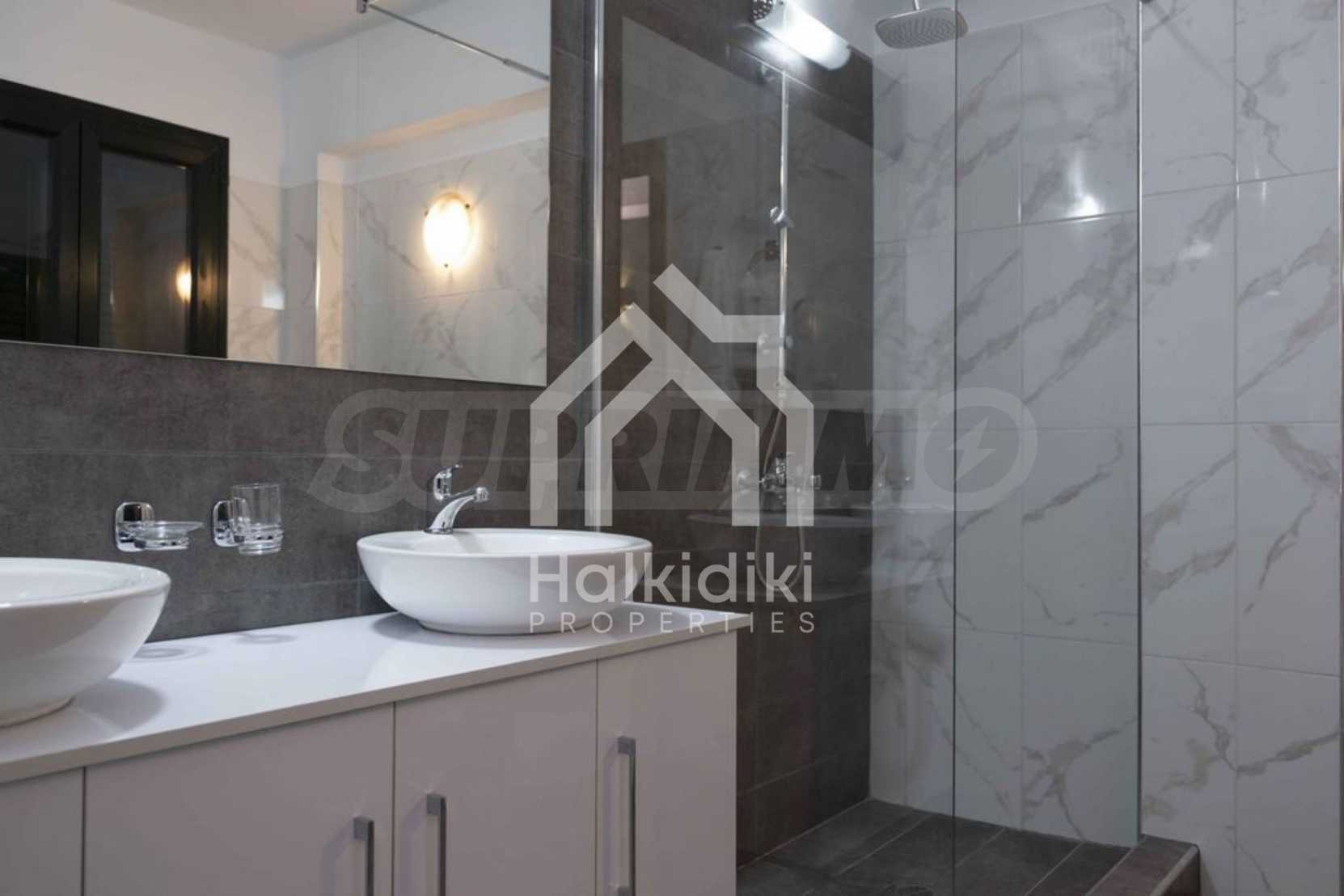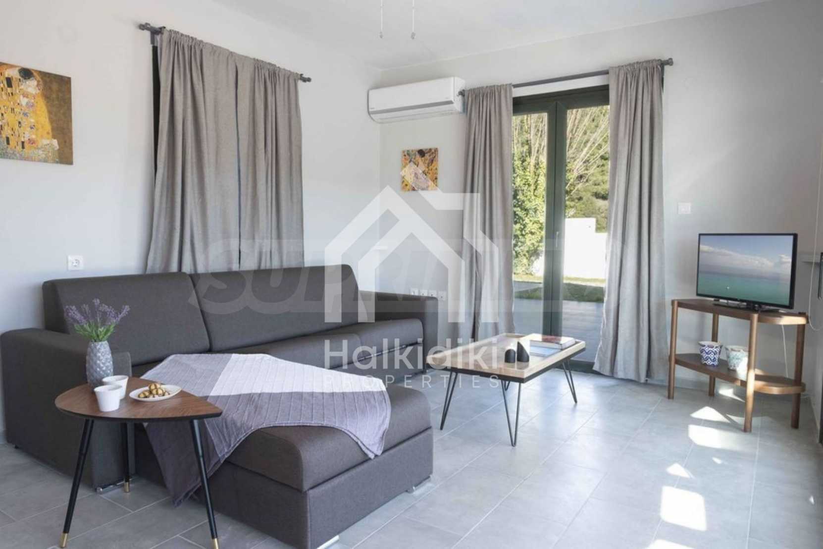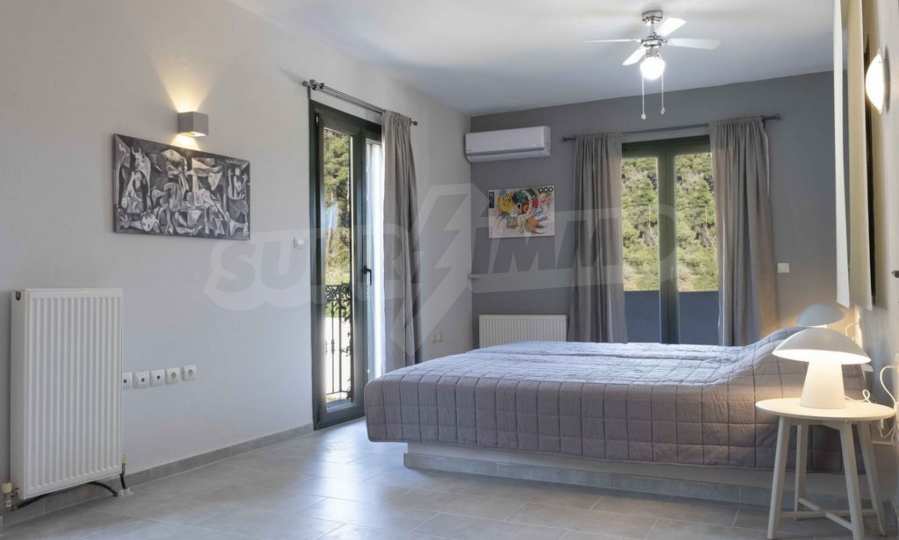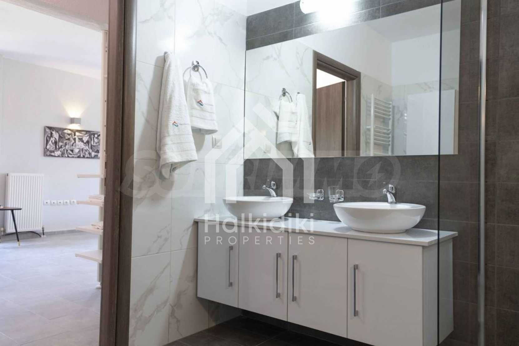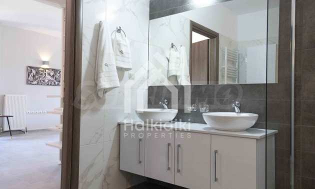 Luxuriöse Villa, 220 m², in Kassandra, Chalkidiki, in einem mit Kiefern bewachsenen Gebiet und fünf Minuten vom Strand entfernt. Es ist in zwei Ebenen aufgeteilt und besteht aus einem mit der Küche verbundenen Wohnzimmer, vier Schlafzimmern, drei Bädern und einem Abstellraum. Es verfügt über einen 5.000 m großen Garten mit automatisierter Bewässerung, Aluminiumschreinerei, Heizkessel, Kiosk, Außenpool und Satellitenantenne. Das Anwesen ist perfekt für eine Investition und ist voll möbliert.