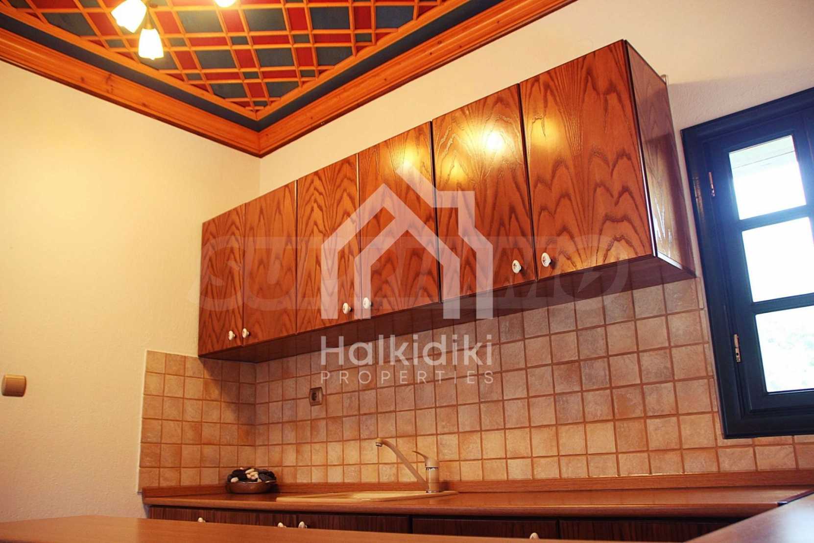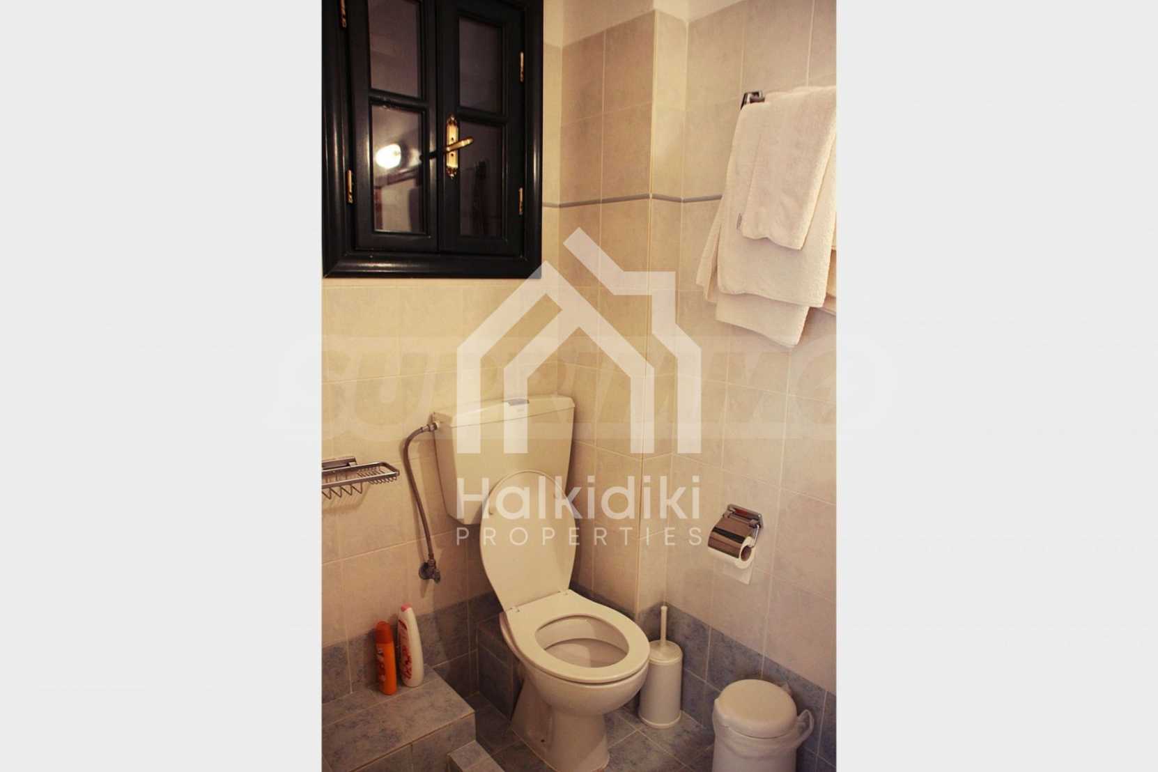 Einzigartige Panoramavilla in Athos, Chalkidiki. Das Anwesen ist 235 m² groß, hat eine südliche Ausrichtung und ist in drei Ebenen aufgeteilt. Es besteht aus drei großen Wohnzimmern, einer Küche, vier großen Schlafzimmern und drei Bädern. Es ist voll möbliert und mit allen Elektrogeräten ausgestattet. Es verfügt über einen Parkplatz für zwei Autos und einen Garten von 350 m² mit einem sehr schön gestalteten Grill. Es ist ein luxuriöses Hotel mit großer Privatsphäre. Es hat auch Holz- und Steinböden, Holzschreinerei und große Balkone.