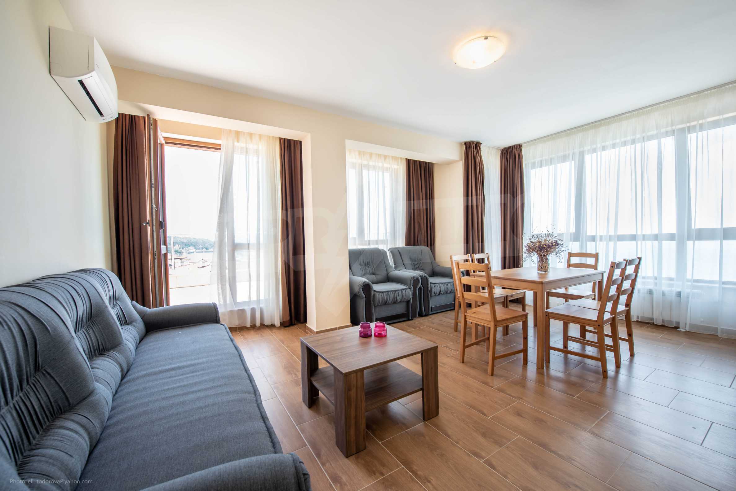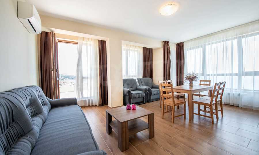Wir präsentieren Ihnen eine ausgezeichnete, komfortabel eingerichtete Zwei-Zimmer-Wohnung zur Miete mit beeindruckender Terrasse und einzigartigem Meerblick in der Stadt … Balchik.
