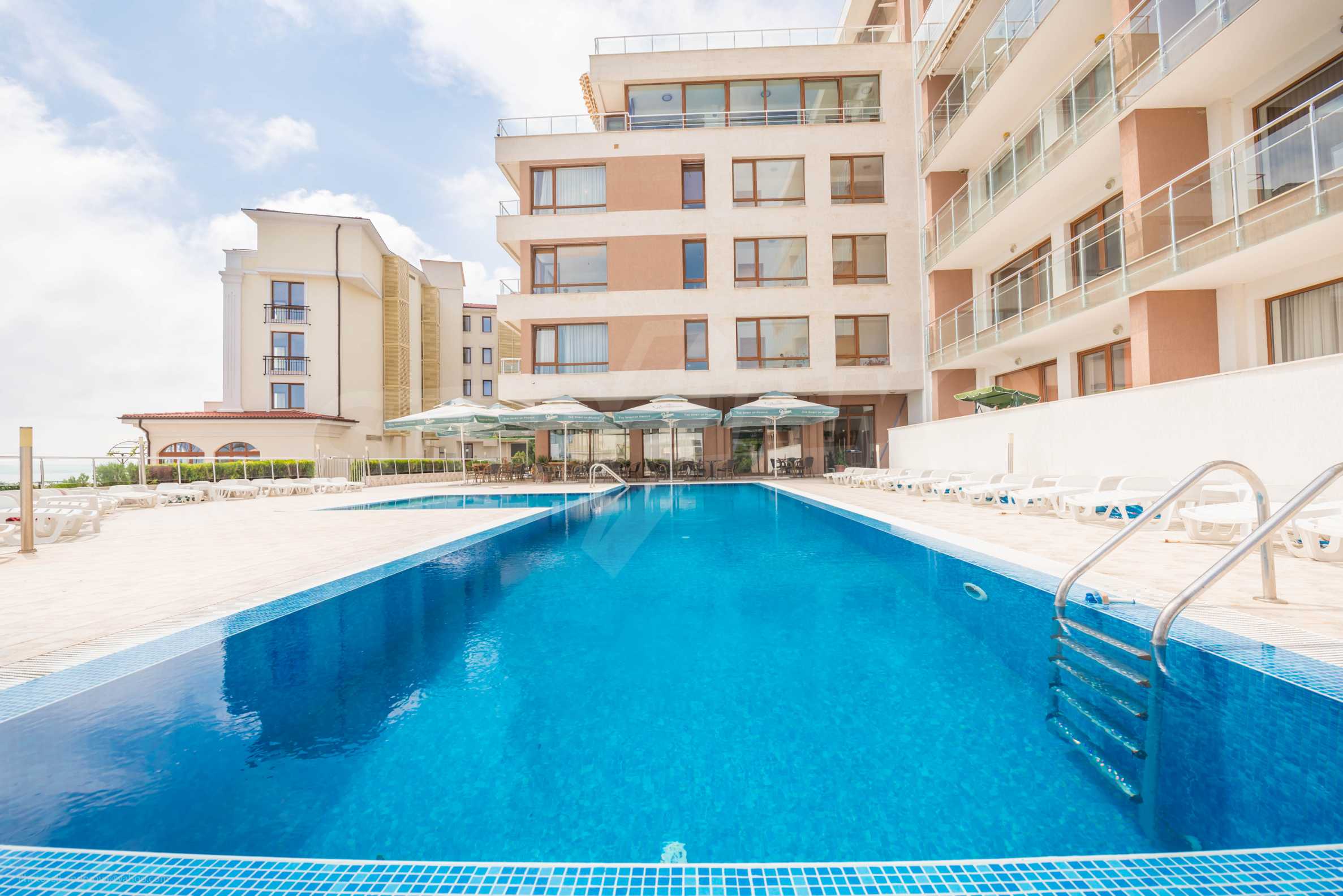 Die Wohnung befindet sich im siebten Stock eines geschlossenen Komplexes mit Swimmingpool – Princess Residence, in erster Meereslinie.