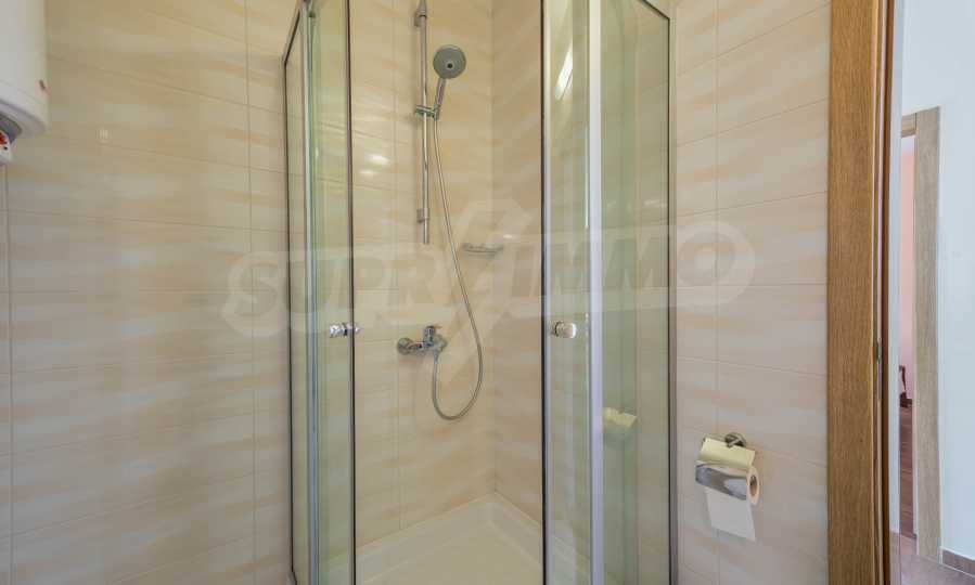- Badezimmer mit Toilette und Duschkabine;