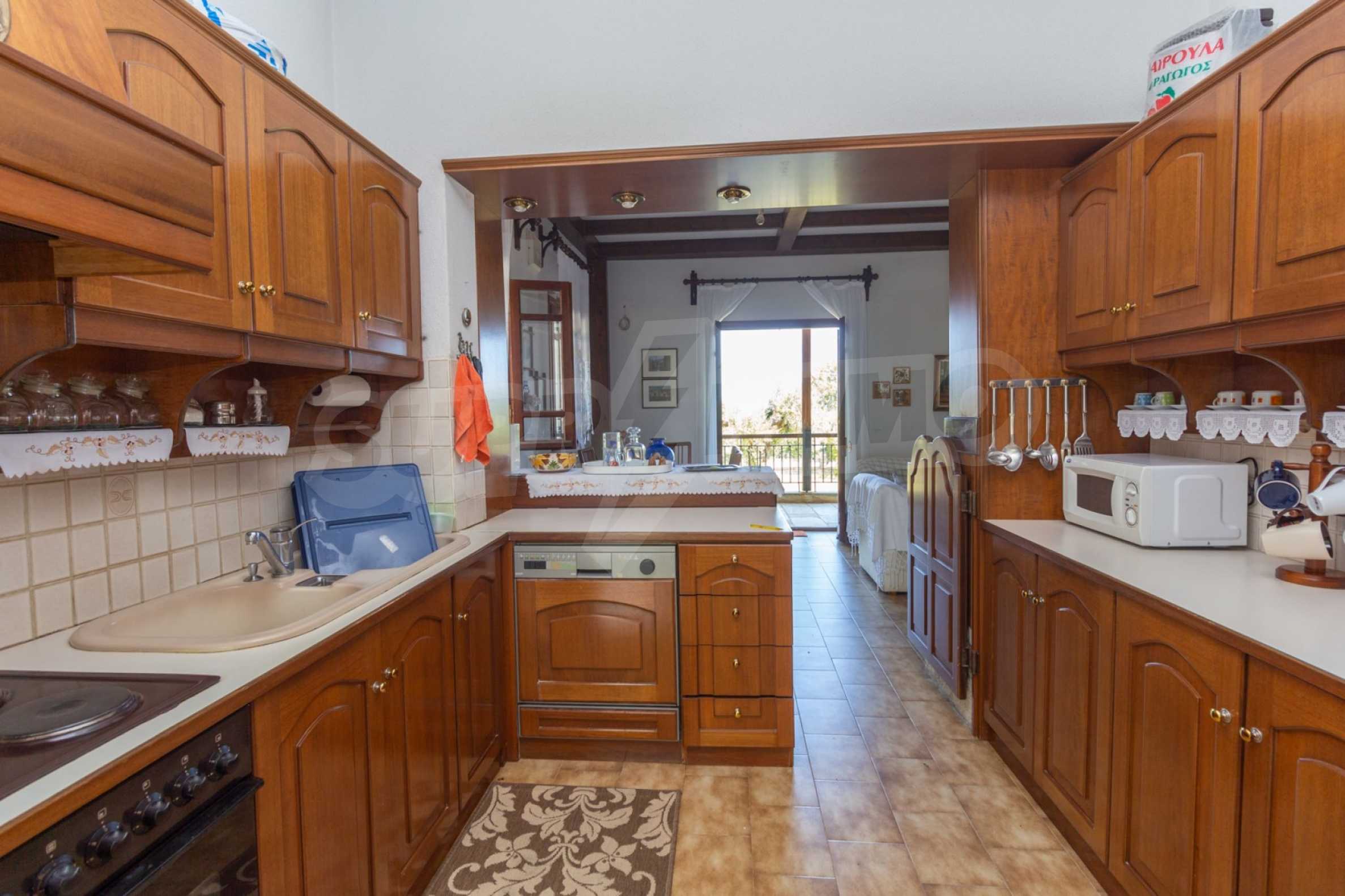 Ausgezeichnetes, helles Einfamilienhaus, 300 m², in Kassandra, Chalkidiki. Es liegt außerhalb des Dorfes mit südöstlicher Ausrichtung, sehr nahe am Meer. Es ist 150 m vom Strand und 600 m vom Dorfzentrum entfernt. Es ist in einem sehr guten Zustand, mit Einbauschränken und allen Elektrogeräten ausgestattet. Es verfügt über Parkplätze, eine autonome Heizung, einen Kamin, eine Holzschreinerei und einen wunderschönen privaten Garten von 4.150 m², in dem sich auch ein großer Olivenhain befindet. Es ist in drei Ebenen unterteilt, von denen jede 100 m groß ist. Es besteht aus zwei mit der Küche verbundenen Wohnzimmern, sieben Schlafzimmern, zwei Badezimmern und zwei Abstellräumen.