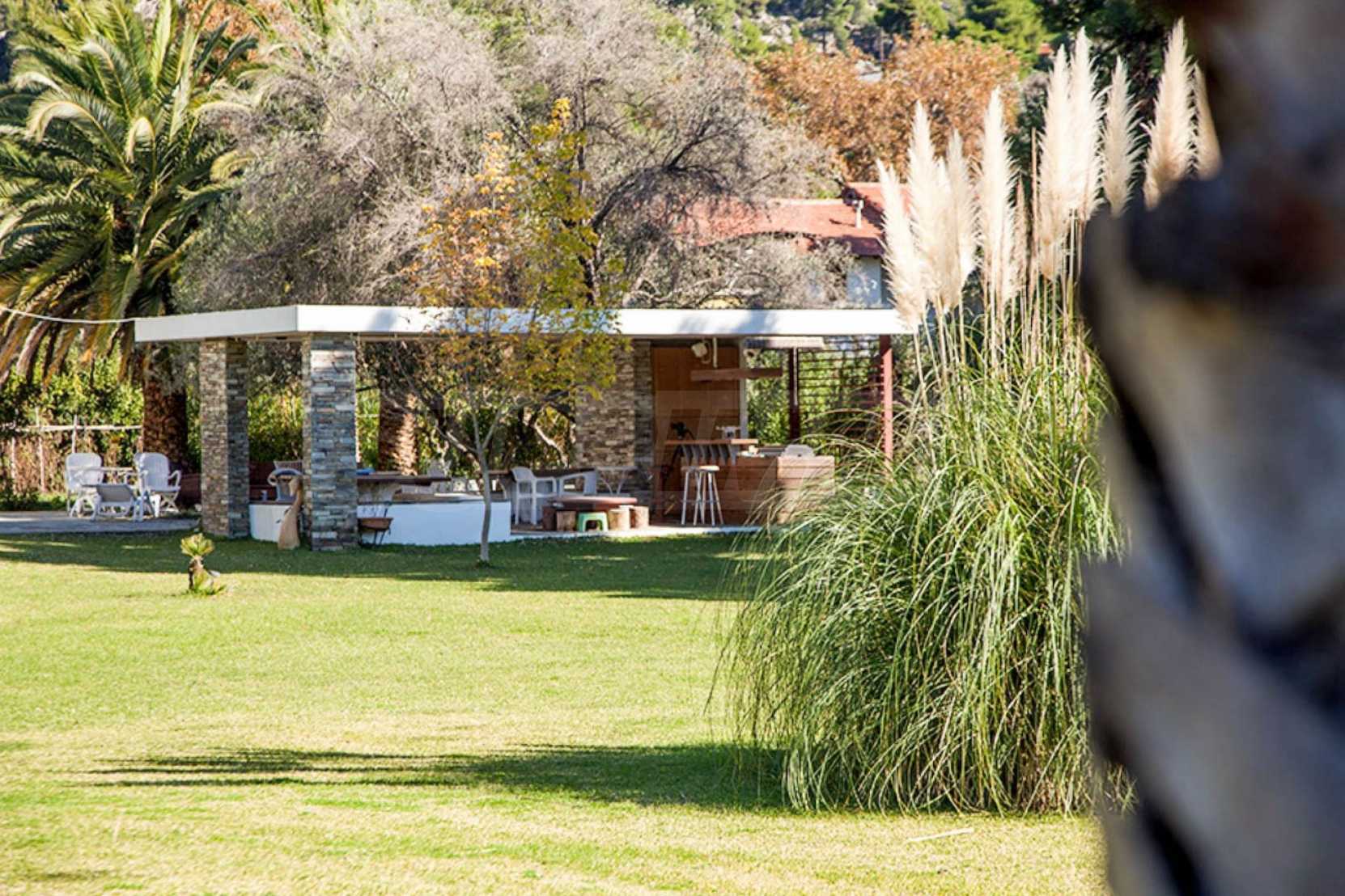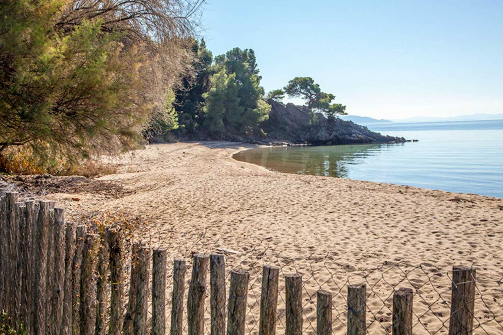 Wunderschönes Einfamilienhaus, 200 m², in Sithonia, Chalkidiki, zuerst am Meer, mit herrlicher Aussicht und südwestlicher Ausrichtung. Das Anwesen ist von 13 Hektar von Bäumen gesäumtem Land umgeben und liegt 7,5 km vom Zentrum des Dorfes entfernt. Es ist in zwei Ebenen aufgeteilt und besteht aus einem mit der Küche verbundenen Wohnzimmer, vier Schlafzimmern, vier Badezimmern und einem Abstellraum. Das Haus hat auch einen Hof, einen Kiosk, einen Grill, einen Heizkessel, Wassertanks, eine automatische Bewässerung, eine Sicherheitstür, ein Alarmsystem, eine Tischlerei aus Aluminium und Fliesenböden. Das Anwesen ist möbliert und komplett ausgestattet.