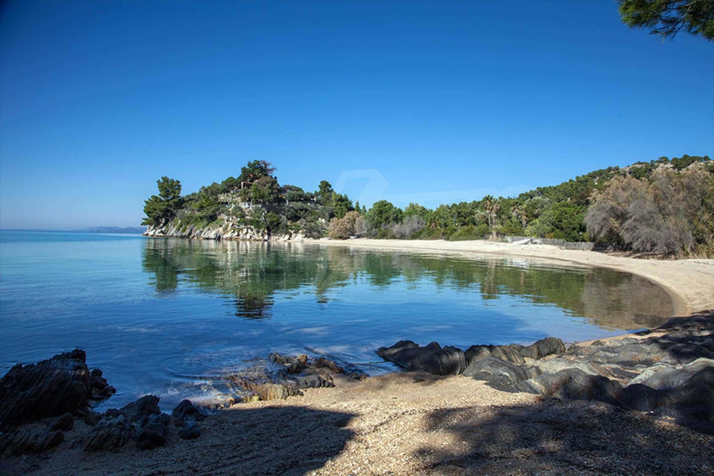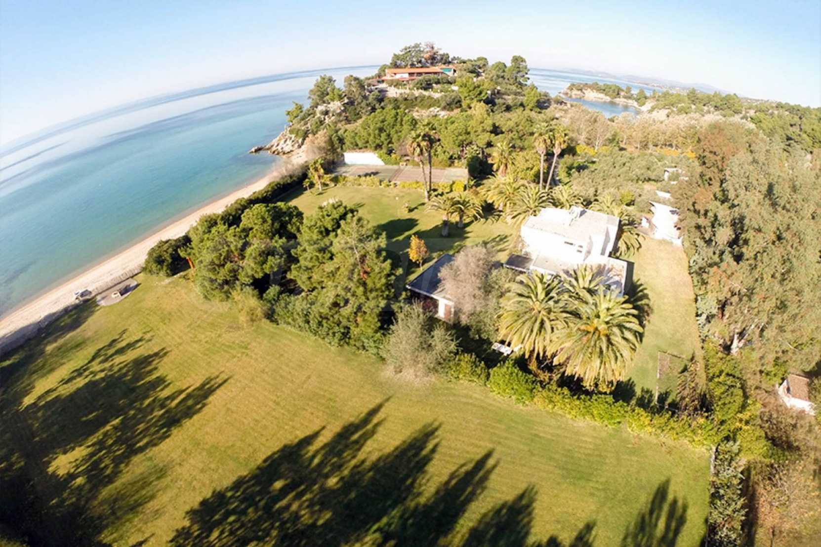 Wunderschönes Einfamilienhaus, 200 m², in Sithonia, Chalkidiki, zuerst am Meer, mit herrlicher Aussicht und südwestlicher Ausrichtung. Das Anwesen ist von 13 Hektar von Bäumen gesäumtem Land umgeben und liegt 7,5 km vom Zentrum des Dorfes entfernt. Es ist in zwei Ebenen aufgeteilt und besteht aus einem mit der Küche verbundenen Wohnzimmer, vier Schlafzimmern, vier Badezimmern und einem Abstellraum. Das Haus hat auch einen Hof, einen Kiosk, einen Grill, einen Heizkessel, Wassertanks, eine automatische Bewässerung, eine Sicherheitstür, ein Alarmsystem, eine Tischlerei aus Aluminium und Fliesenböden. Das Anwesen ist möbliert und komplett ausgestattet.