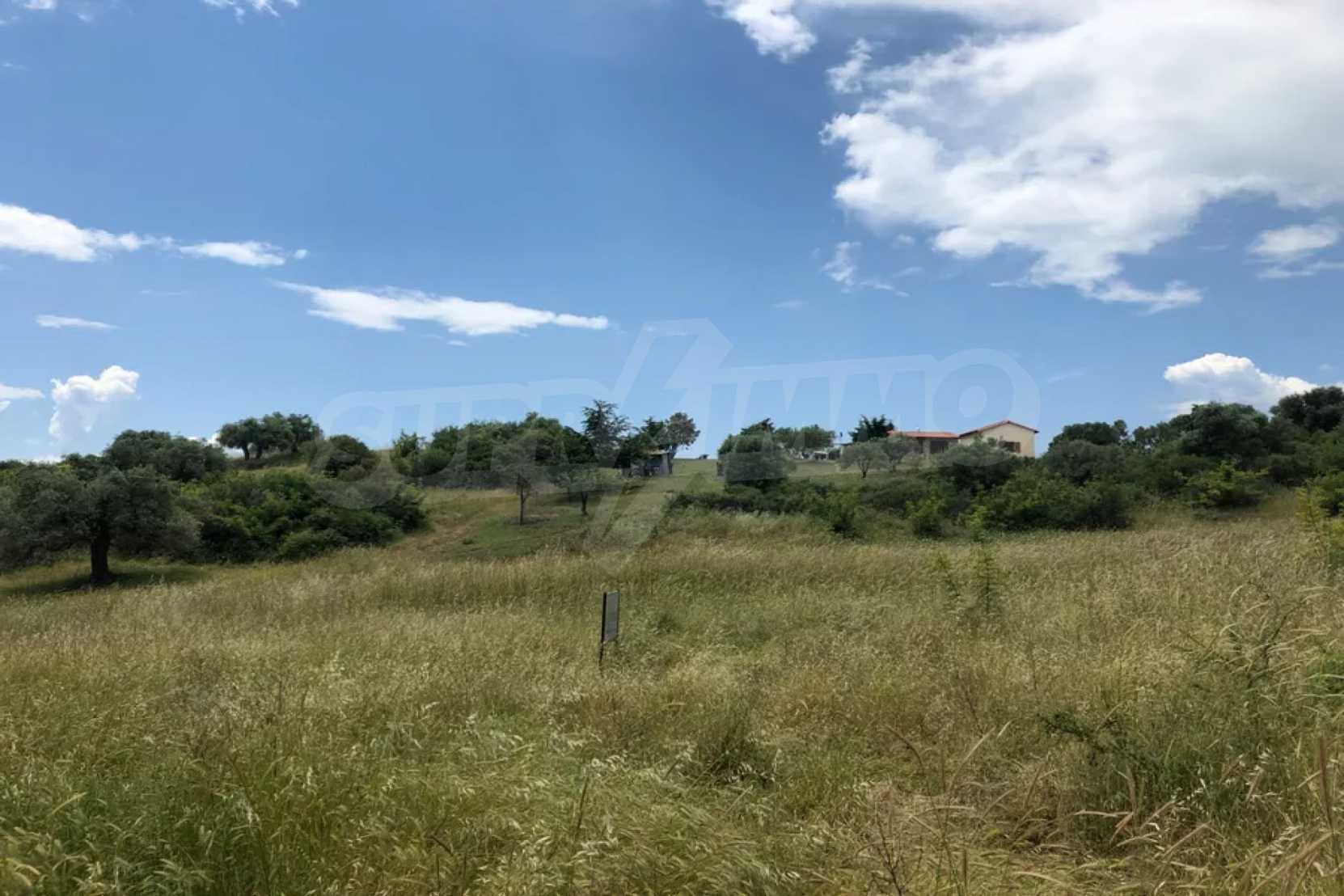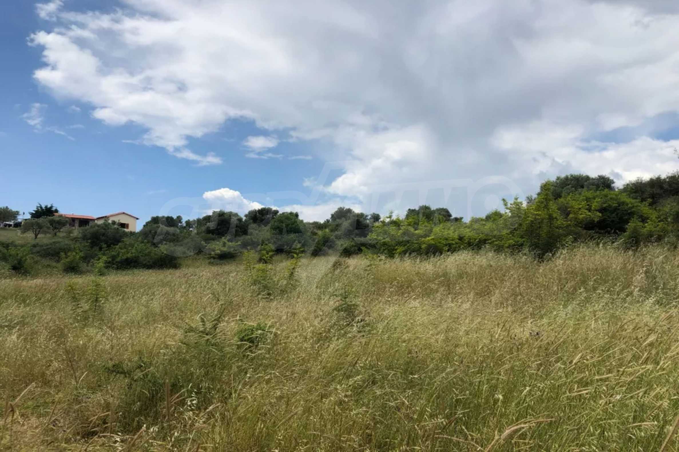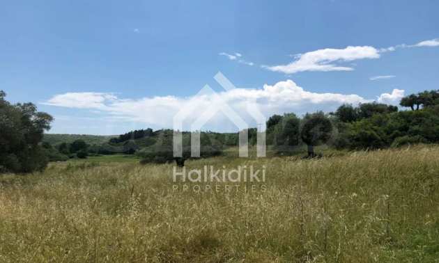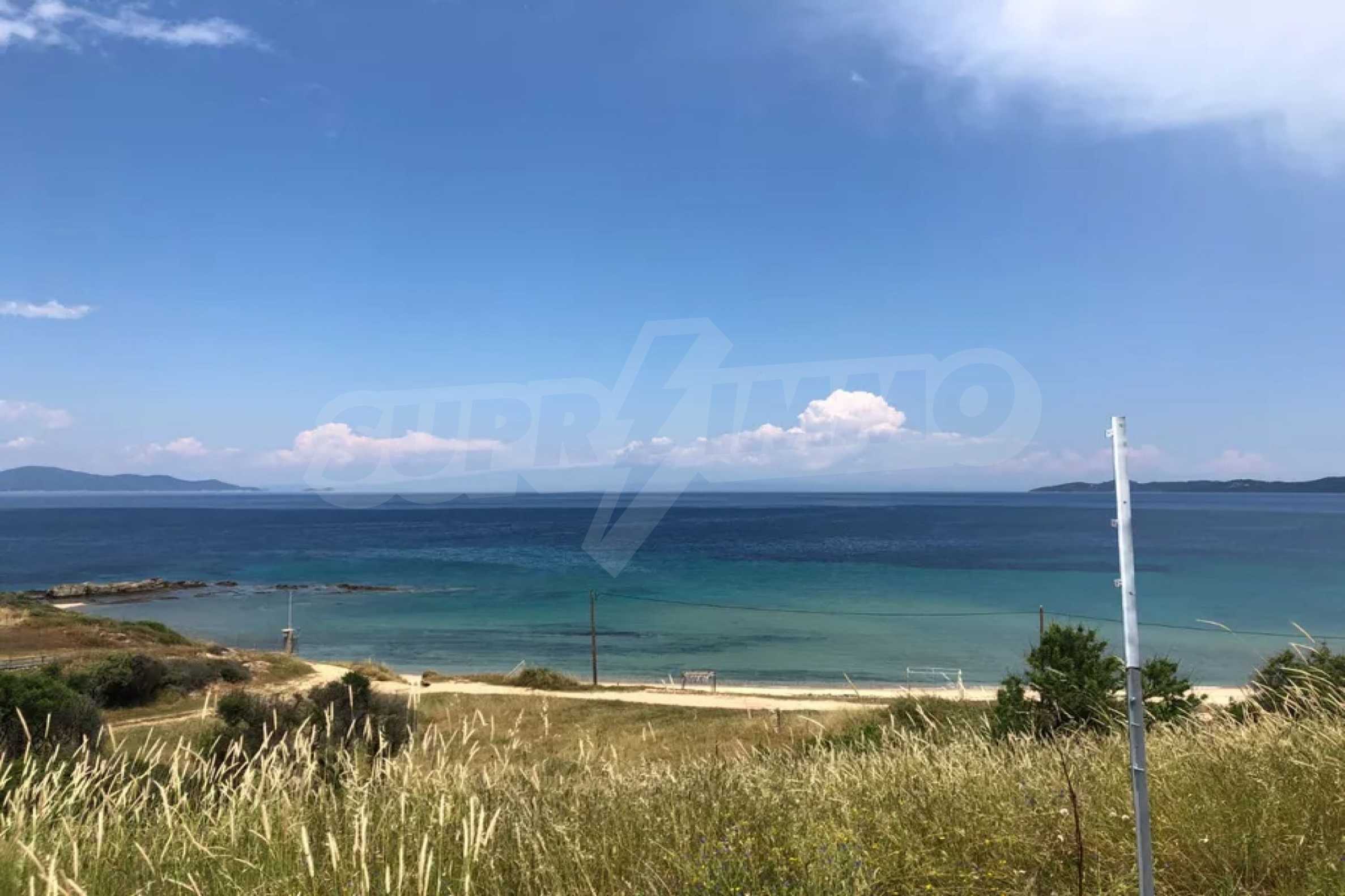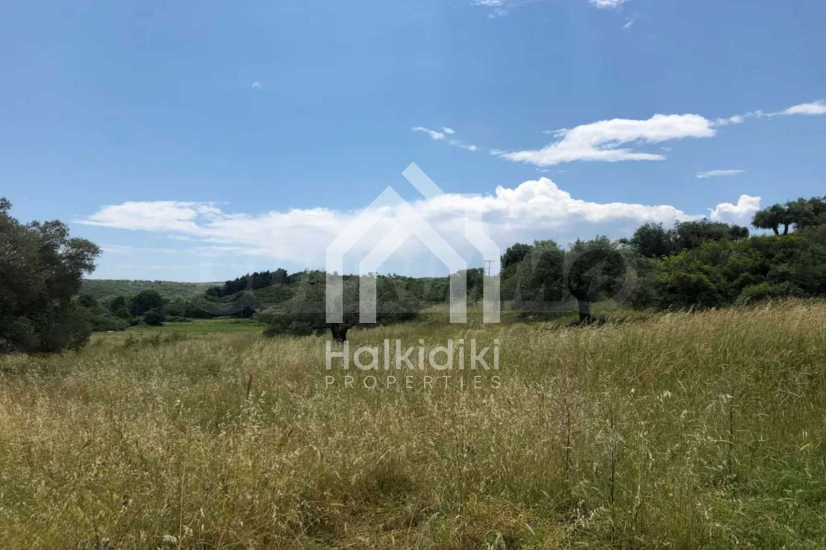 Einzigartiges Feld, 8.000 m², in Athos, Chalkidiki, 50 m vom Strand entfernt. Das Anwesen ist schräg, es hat eine nordöstliche Ausrichtung und Panoramablick. Es ist perfekt für den Bau einer Villa, Einfamilienhäuser und die professionelle Nutzung.