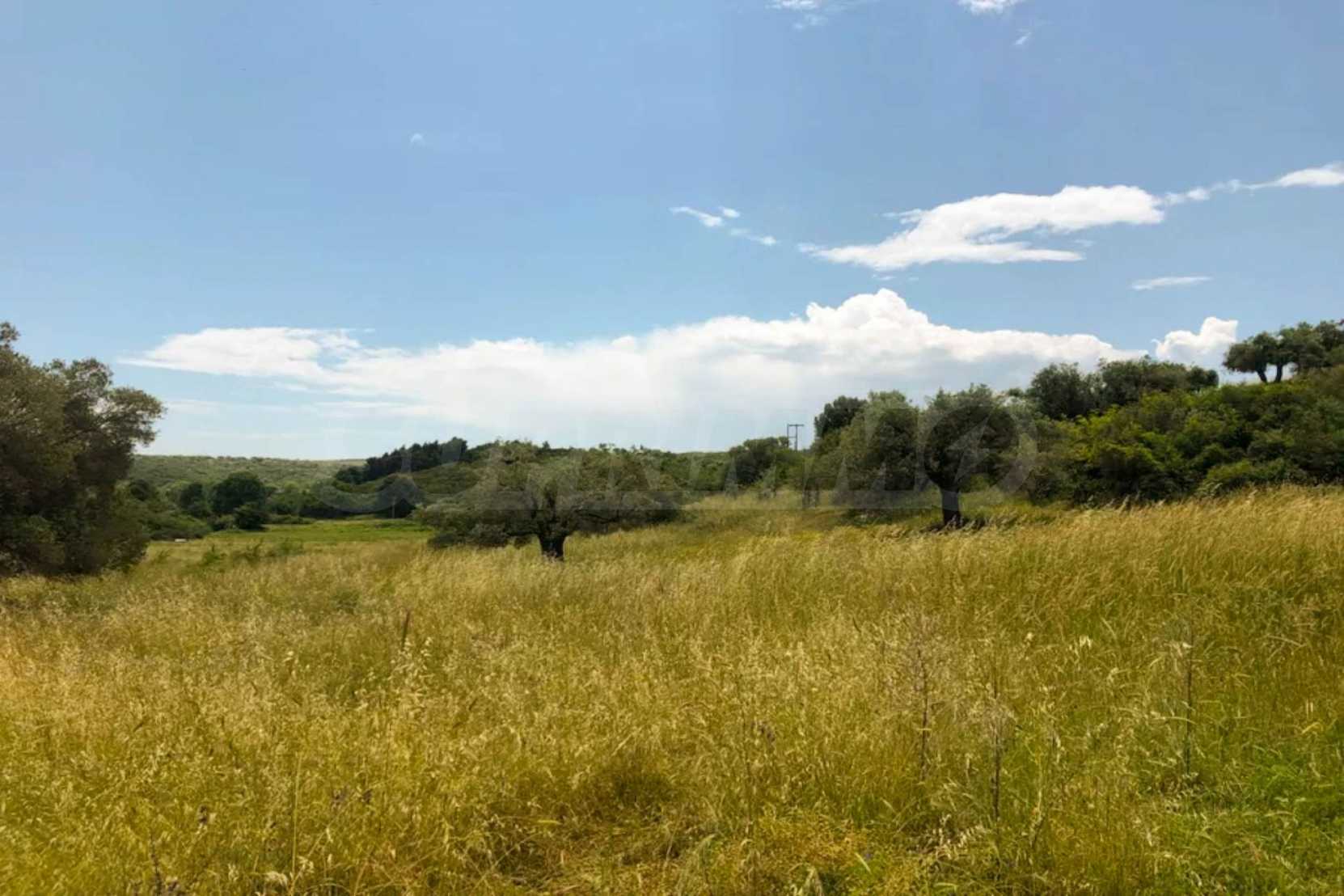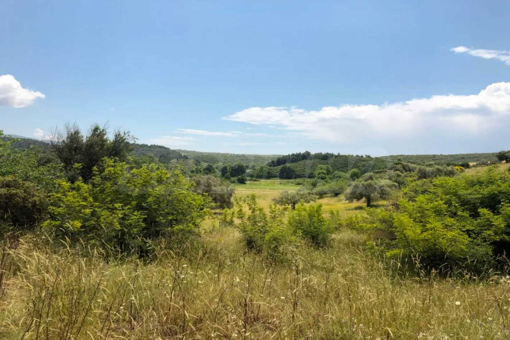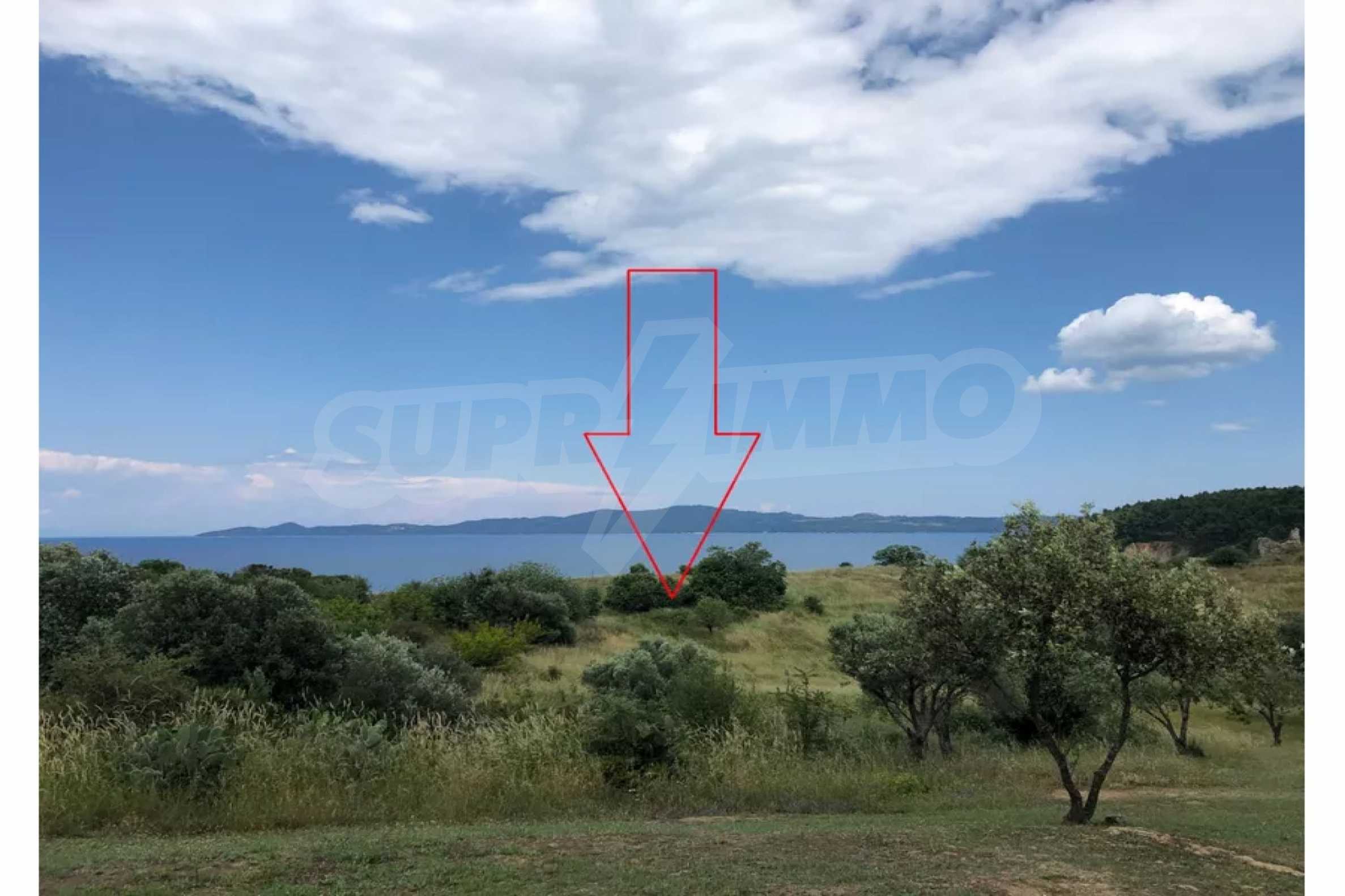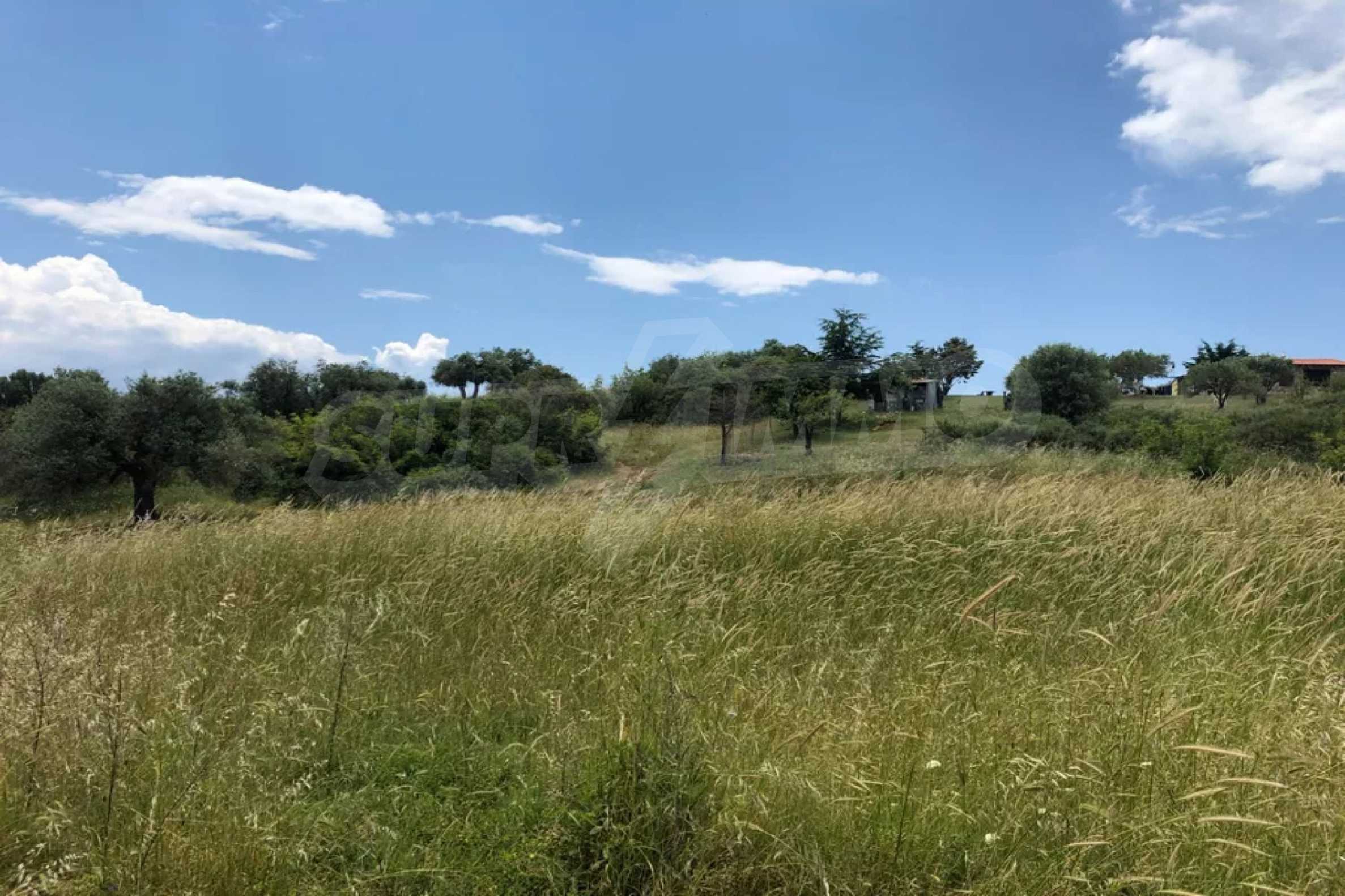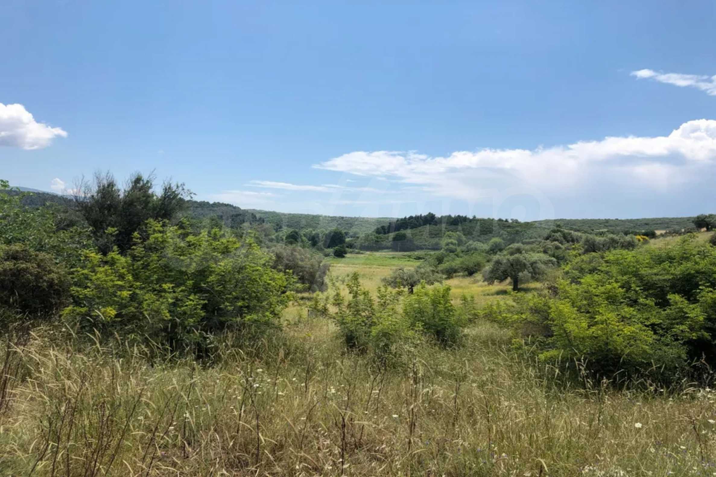 Einzigartiges Feld, 8.000 m², in Athos, Chalkidiki, 50 m vom Strand entfernt. Das Anwesen ist schräg, es hat eine nordöstliche Ausrichtung und Panoramablick. Es ist perfekt für den Bau einer Villa, Einfamilienhäuser und die professionelle Nutzung.