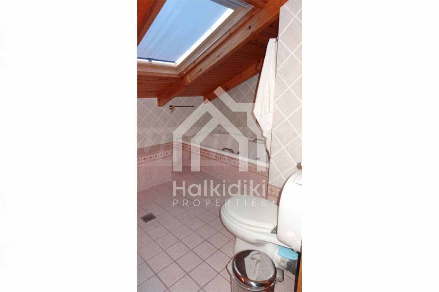 Schöne Maisonette 130 mВІ, in Kassandra, Chalkidiki, auf einem Hügel, mit herrlichem Meerblick und östlicher Ausrichtung. Die Unterkunft befindet sich 80 m vom Strand und 1.000 m vom Dorfzentrum entfernt. Es ist in drei Ebenen aufgeteilt und besteht aus einem mit der Küche verbundenen Wohnzimmer, vier Schlafzimmern, zwei Bädern und einem Abstellraum. Es verfügt über einen großen Balkon, Marmorböden, eine Tischlerei aus Aluminium, eine Sicherheitstür, einen Parkplatz und eine Vorinstallation des Alarmsystems.