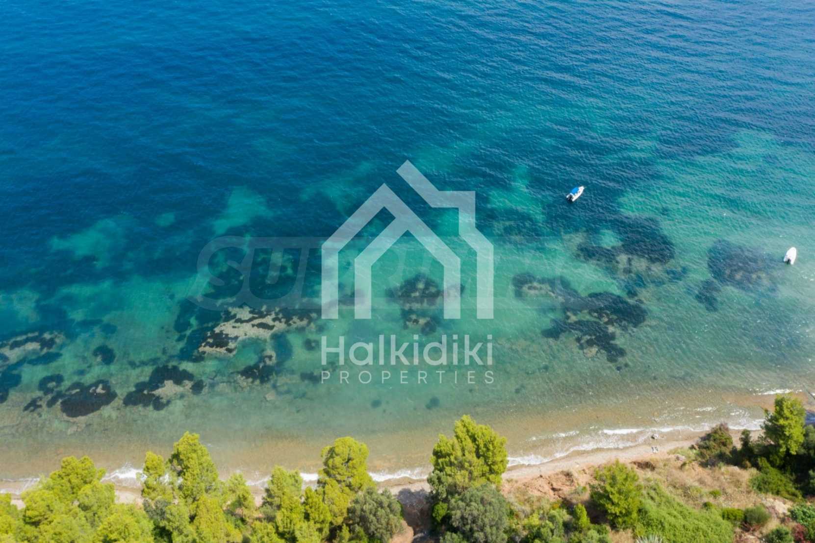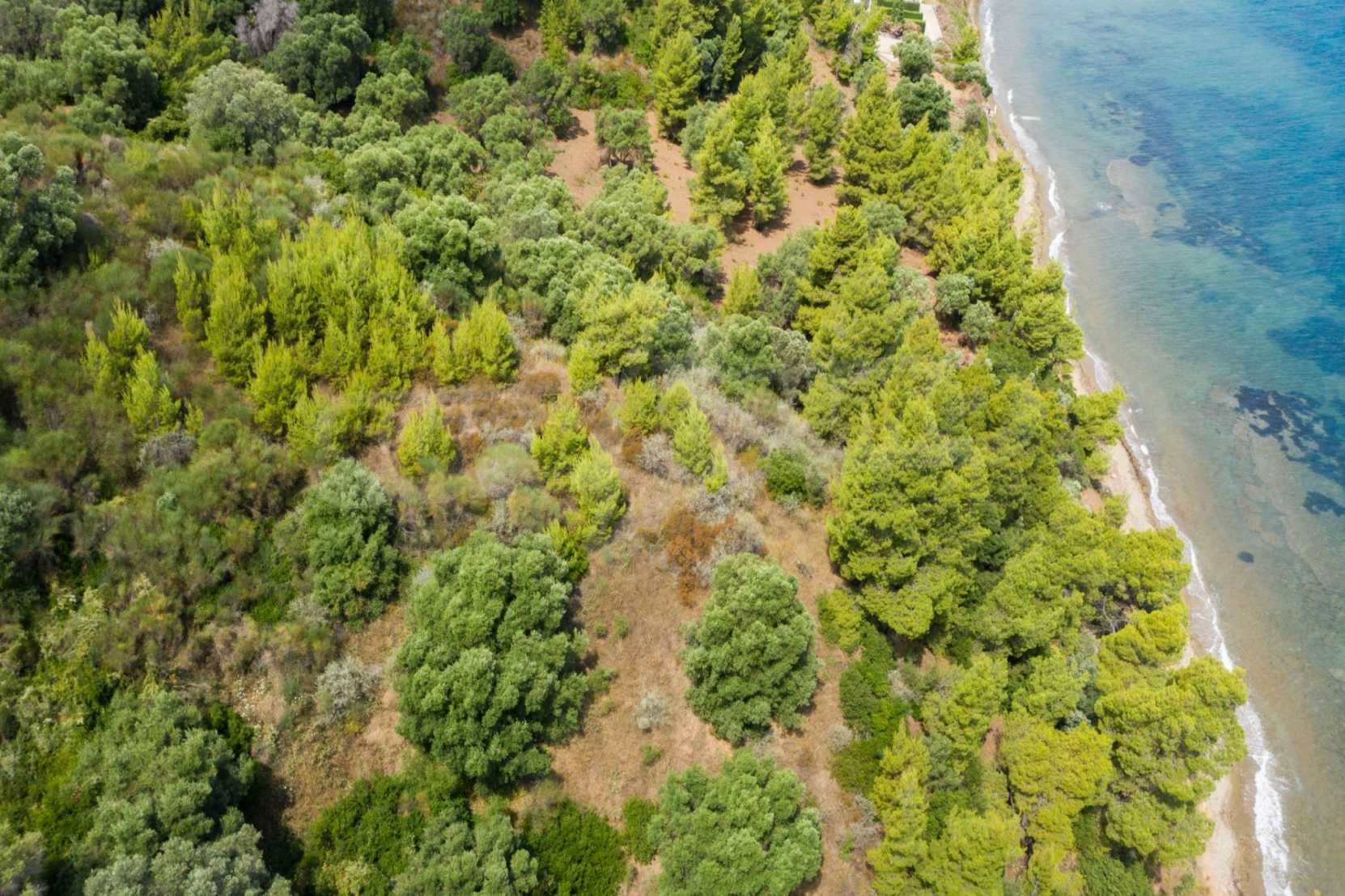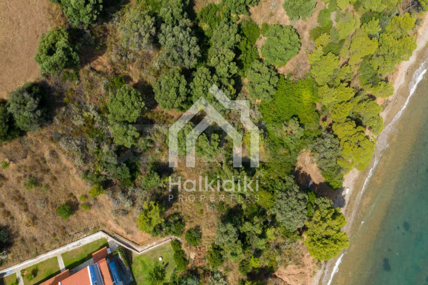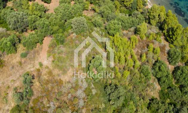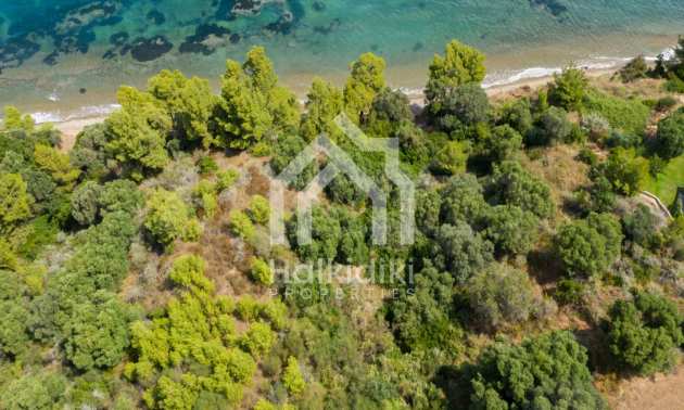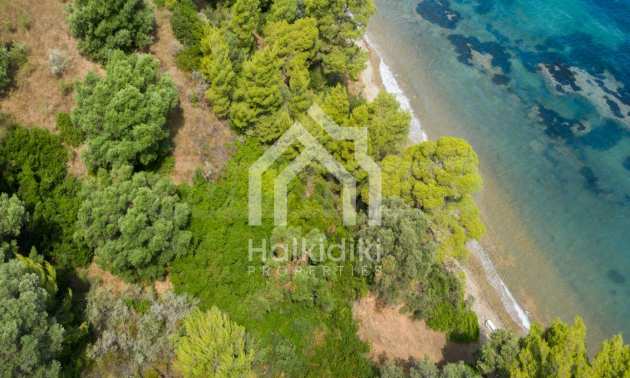 Einzigartiges Amphitheaterfeld, 9.750 m², in Kassandra, Chalkidiki. Es liegt vor einem wunderschönen Sandstrand und außerhalb des Dorfes. Es ist nur wenige Meter vom Meer und 3.600 Meter vom Dorfzentrum entfernt. Es hat eine wundervolle natürliche Schönheit und einen ungehinderten permanenten Meerblick mit südlicher Ausrichtung. Es ist vollständig und baubar und aufgrund seiner Größe ideal für den Bau von Häusern, für die professionelle Nutzung, aber auch für den Bau einer Villa.