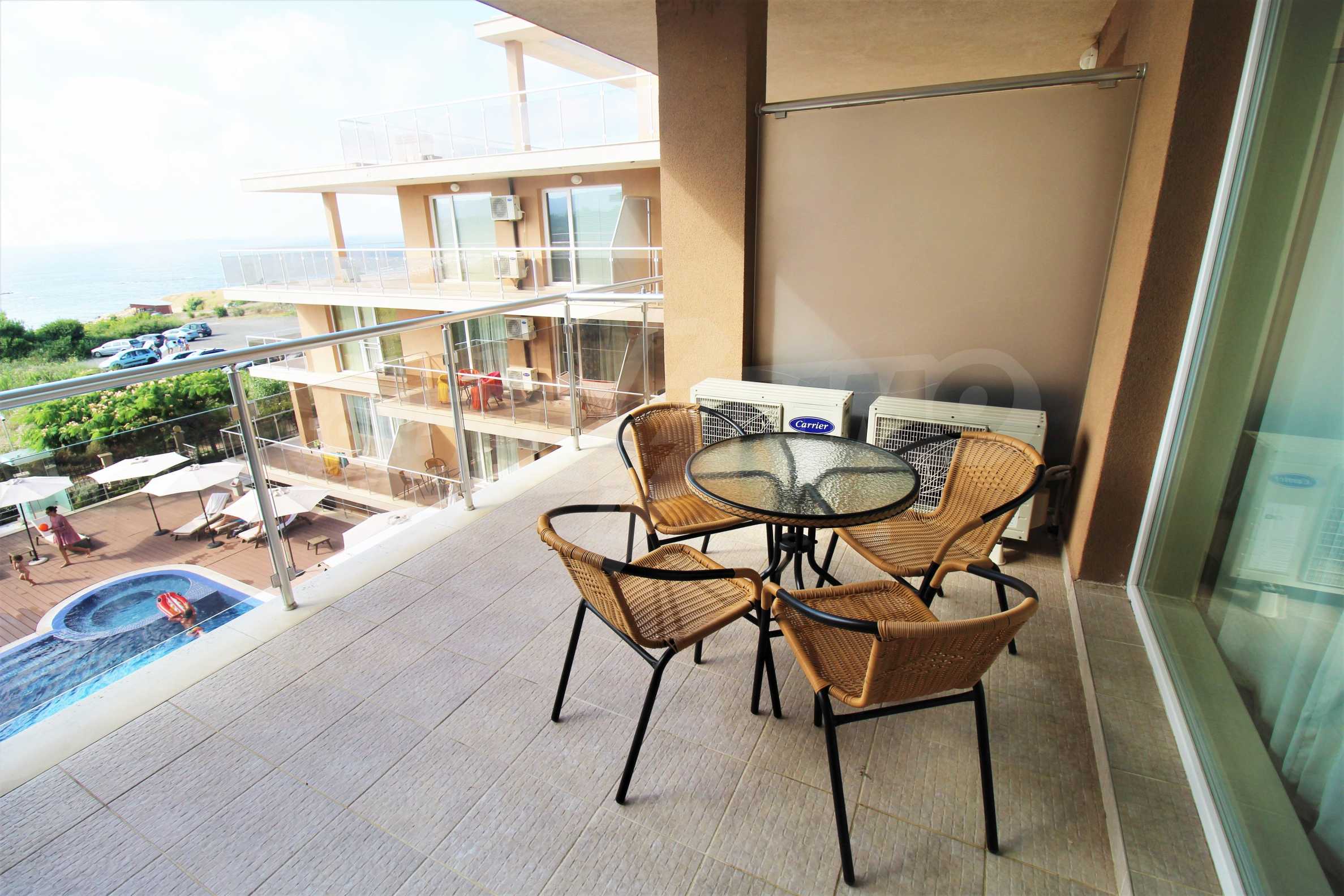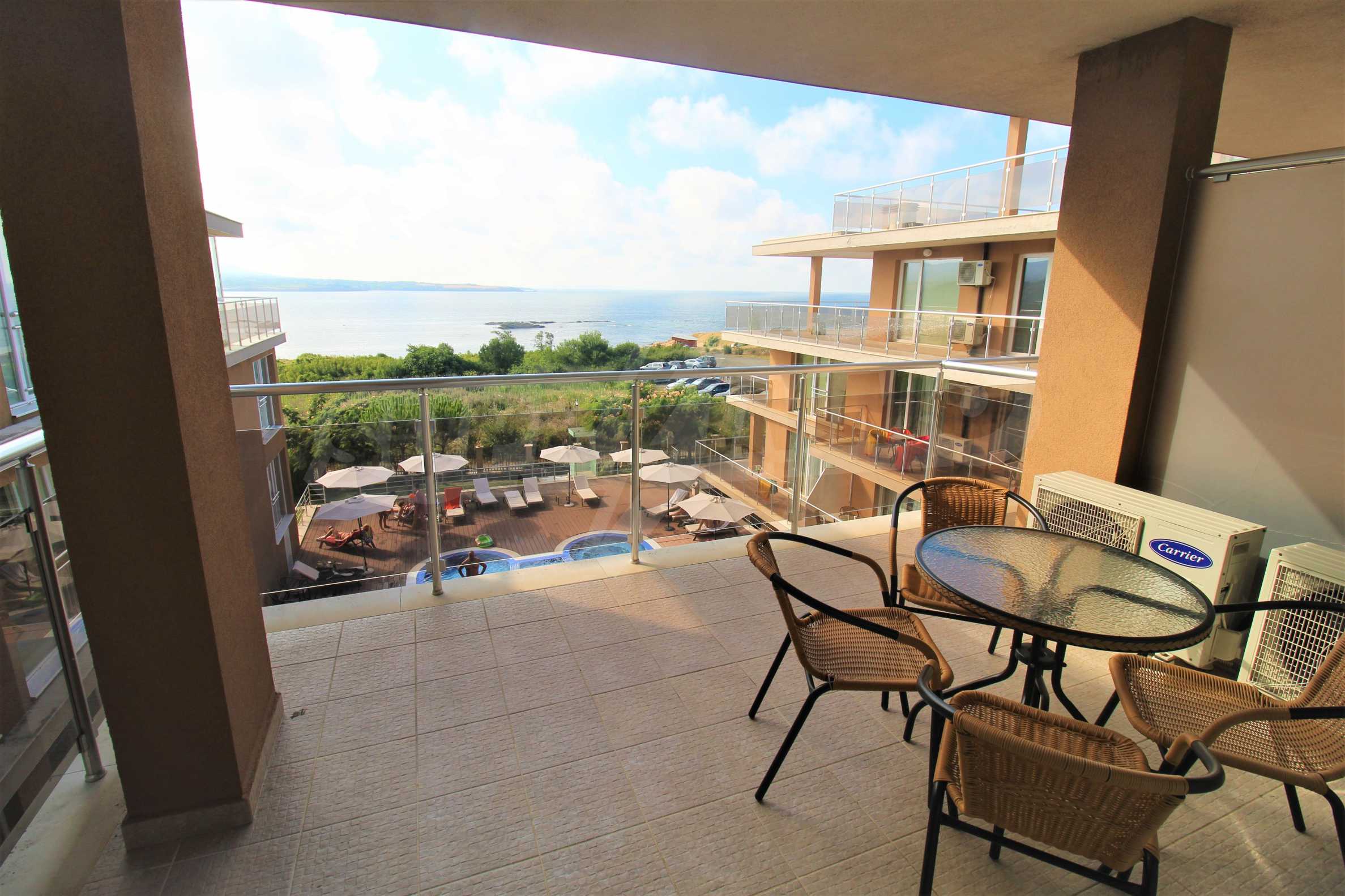 Die zum Verkauf stehenden Wohnungen sind bezugsfertige Studios, Zwei- und Drei-Zimmer-Wohnungen mit großzügigen Terrassen und Panoramablick auf das Meer von jeder Wohnung aus.