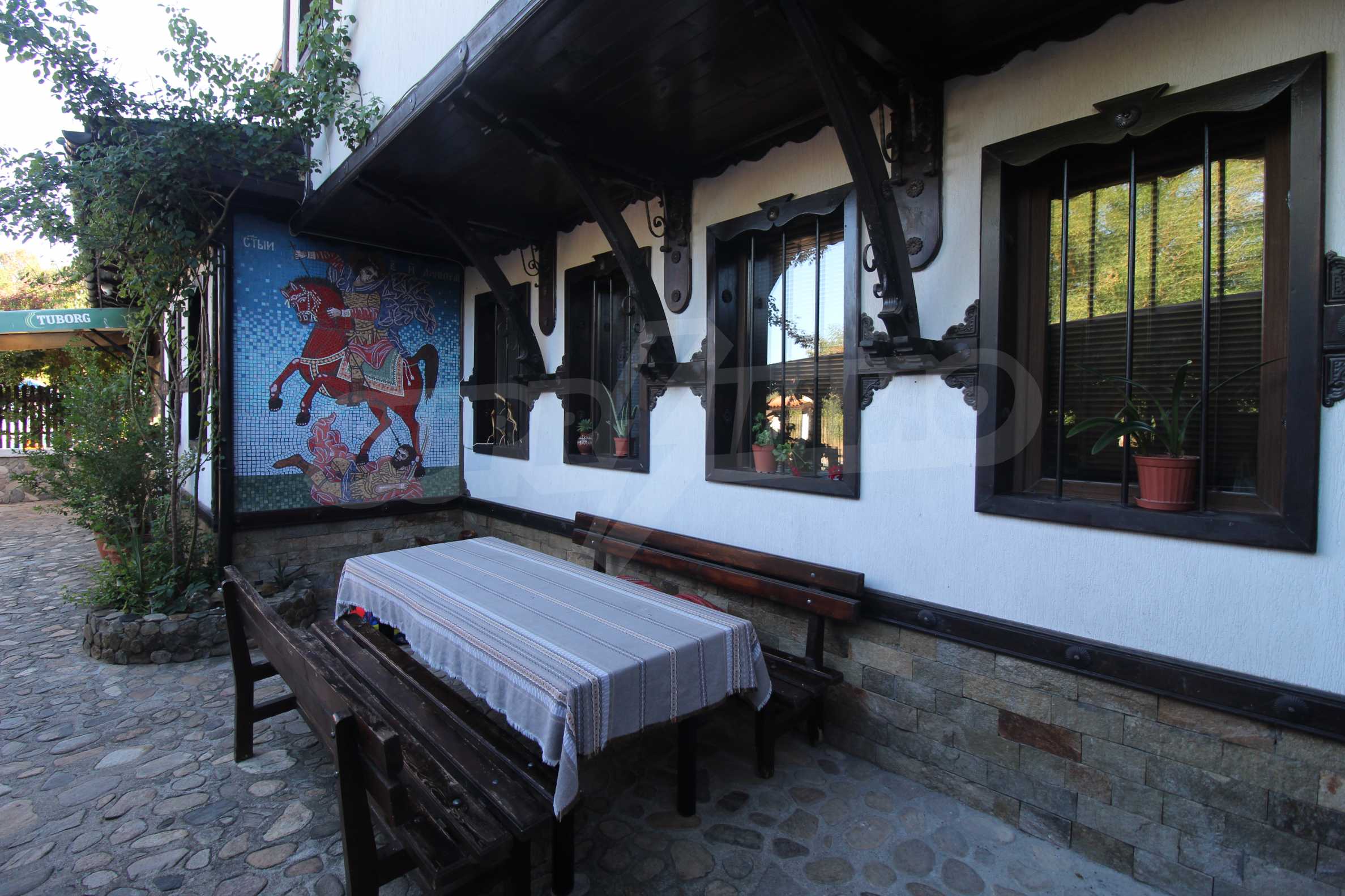 Der Komplex verfügt über eine Restaurant-Taverne mit einer Innenhalle (80 Sitzplätze) und einen Sommergarten mit 30 Sitzplätzen.