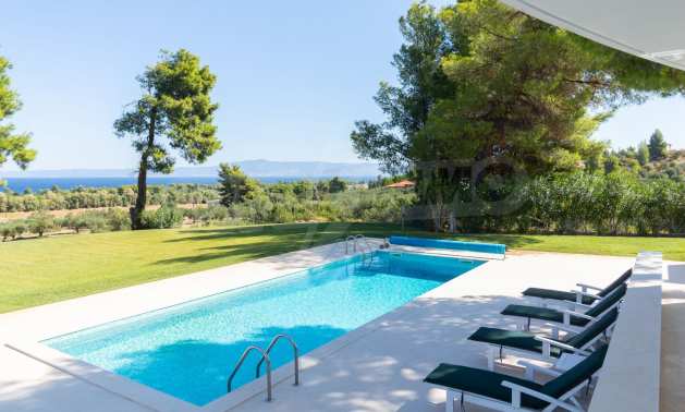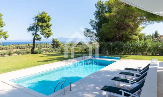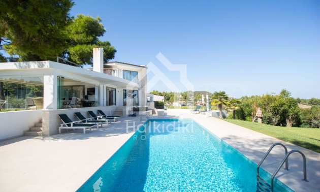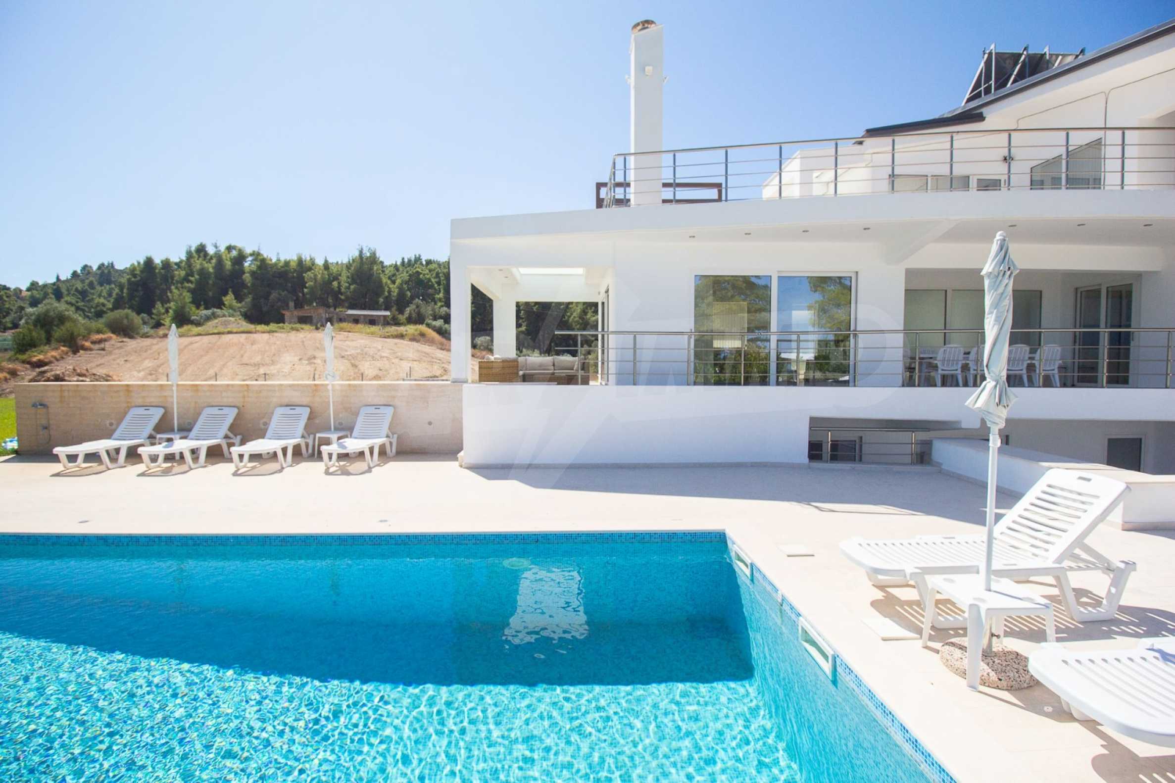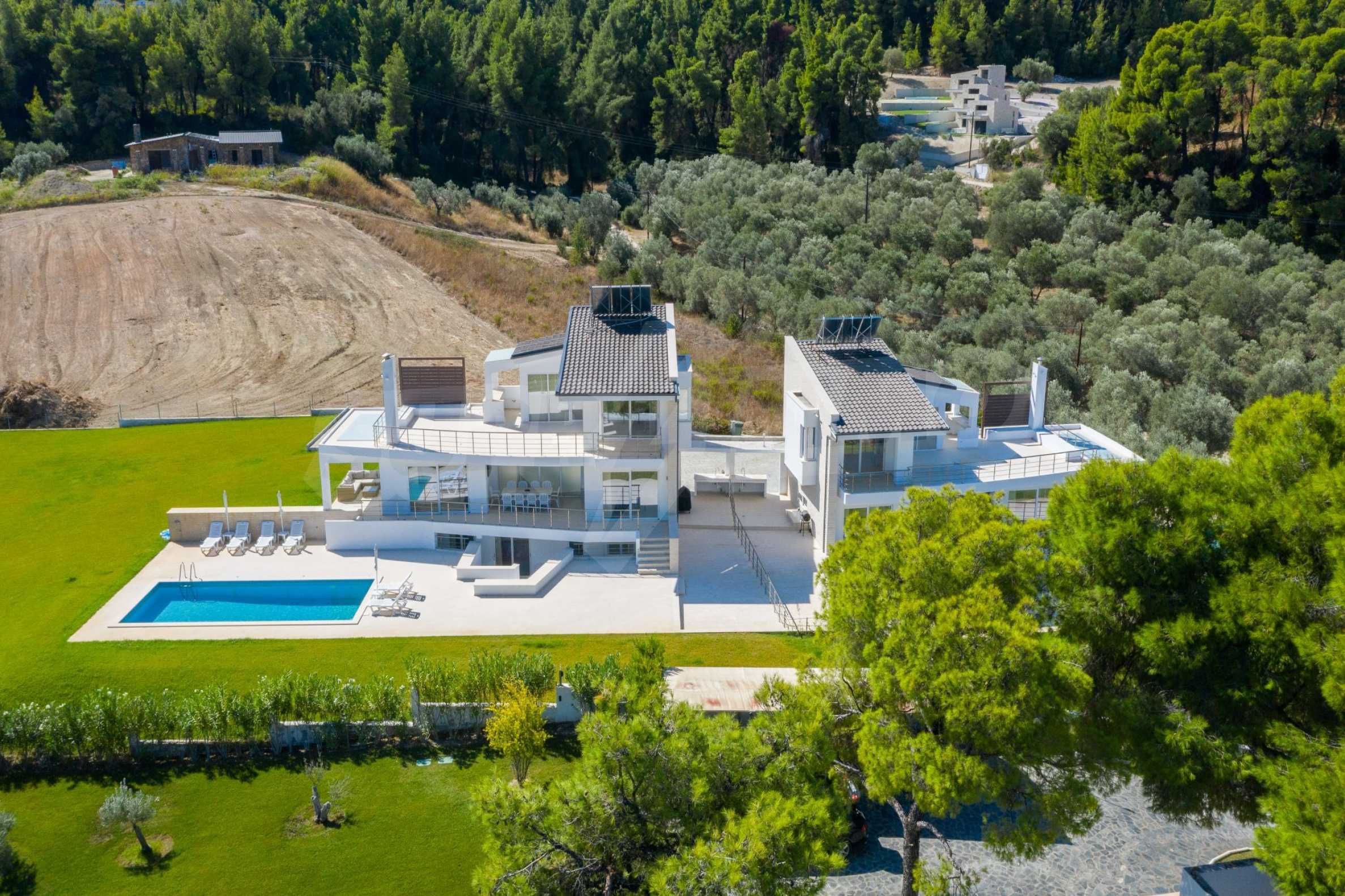 Neu erbauter Komplex von 4 luxuriösen Villen in Kassandra, Chalkidiki, mit herrlichem Blick auf die Bucht von Toronaios. Der Komplex besteht aus 4 Wohnzimmern, die mit den Esszimmern mit Küche verbunden sind, 19 Schlafzimmern, 14 Bädern, 4 WC und 4 Abstellräumen. Das Grundstück ist 8 Hektar groß und jede Villa verfügt über einen privaten Pool und drei Parkplätze. Es ist perfekt für die professionelle Nutzung.