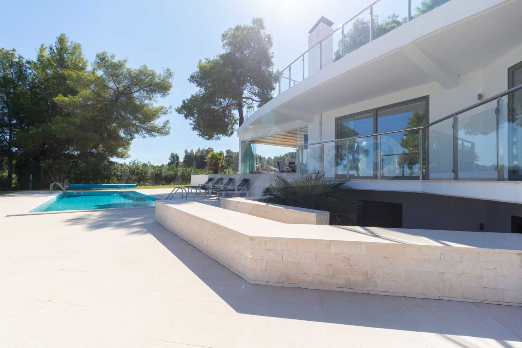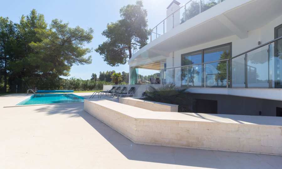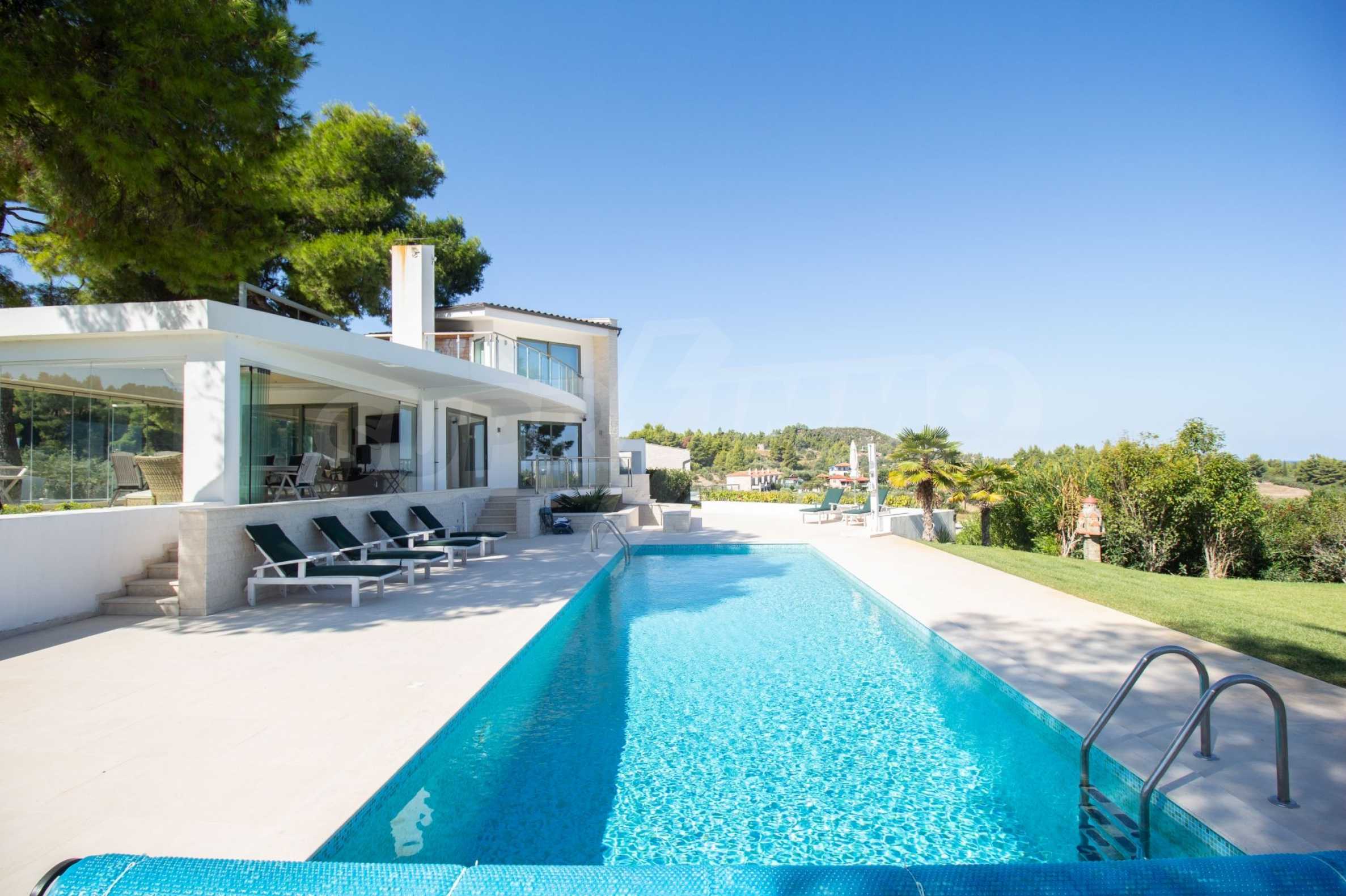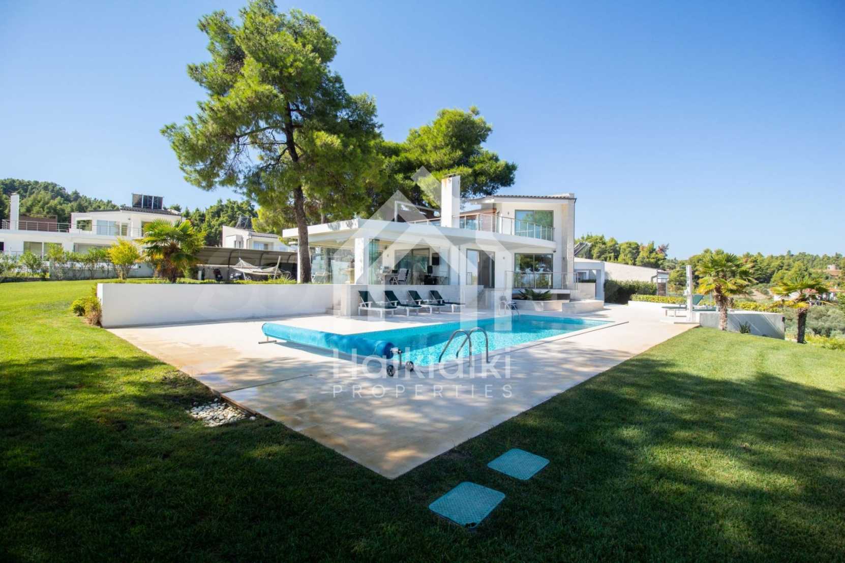 Neu erbauter Komplex von 4 luxuriösen Villen in Kassandra, Chalkidiki, mit herrlichem Blick auf die Bucht von Toronaios. Der Komplex besteht aus 4 Wohnzimmern, die mit den Esszimmern mit Küche verbunden sind, 19 Schlafzimmern, 14 Bädern, 4 WC und 4 Abstellräumen. Das Grundstück ist 8 Hektar groß und jede Villa verfügt über einen privaten Pool und drei Parkplätze. Es ist perfekt für die professionelle Nutzung.