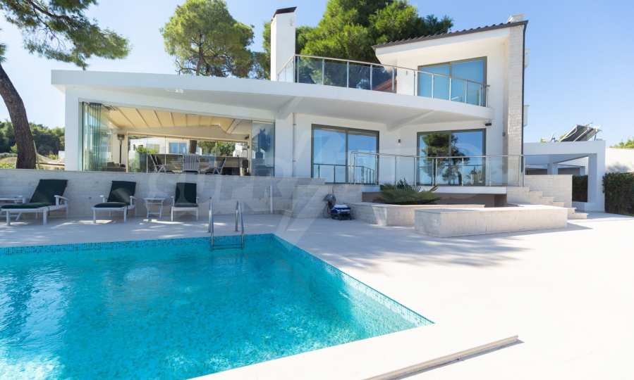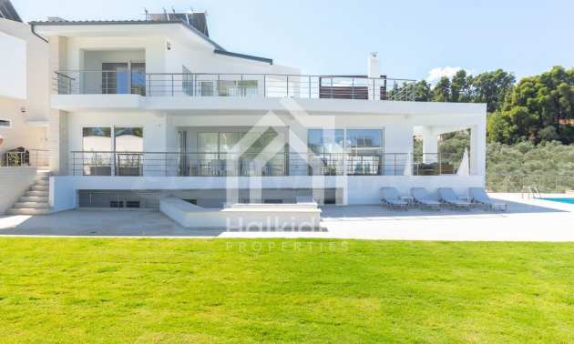 Neu erbauter Komplex von 4 luxuriösen Villen in Kassandra, Chalkidiki, mit herrlichem Blick auf die Bucht von Toronaios. Der Komplex besteht aus 4 Wohnzimmern, die mit den Esszimmern mit Küche verbunden sind, 19 Schlafzimmern, 14 Bädern, 4 WC und 4 Abstellräumen. Das Grundstück ist 8 Hektar groß und jede Villa verfügt über einen privaten Pool und drei Parkplätze. Es ist perfekt für die professionelle Nutzung.
