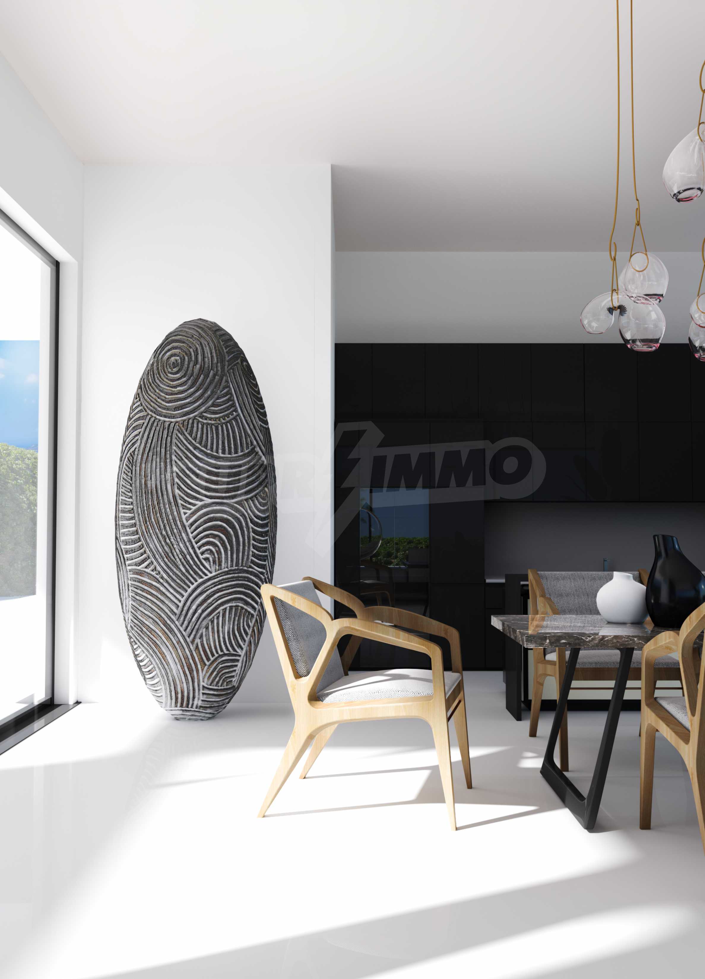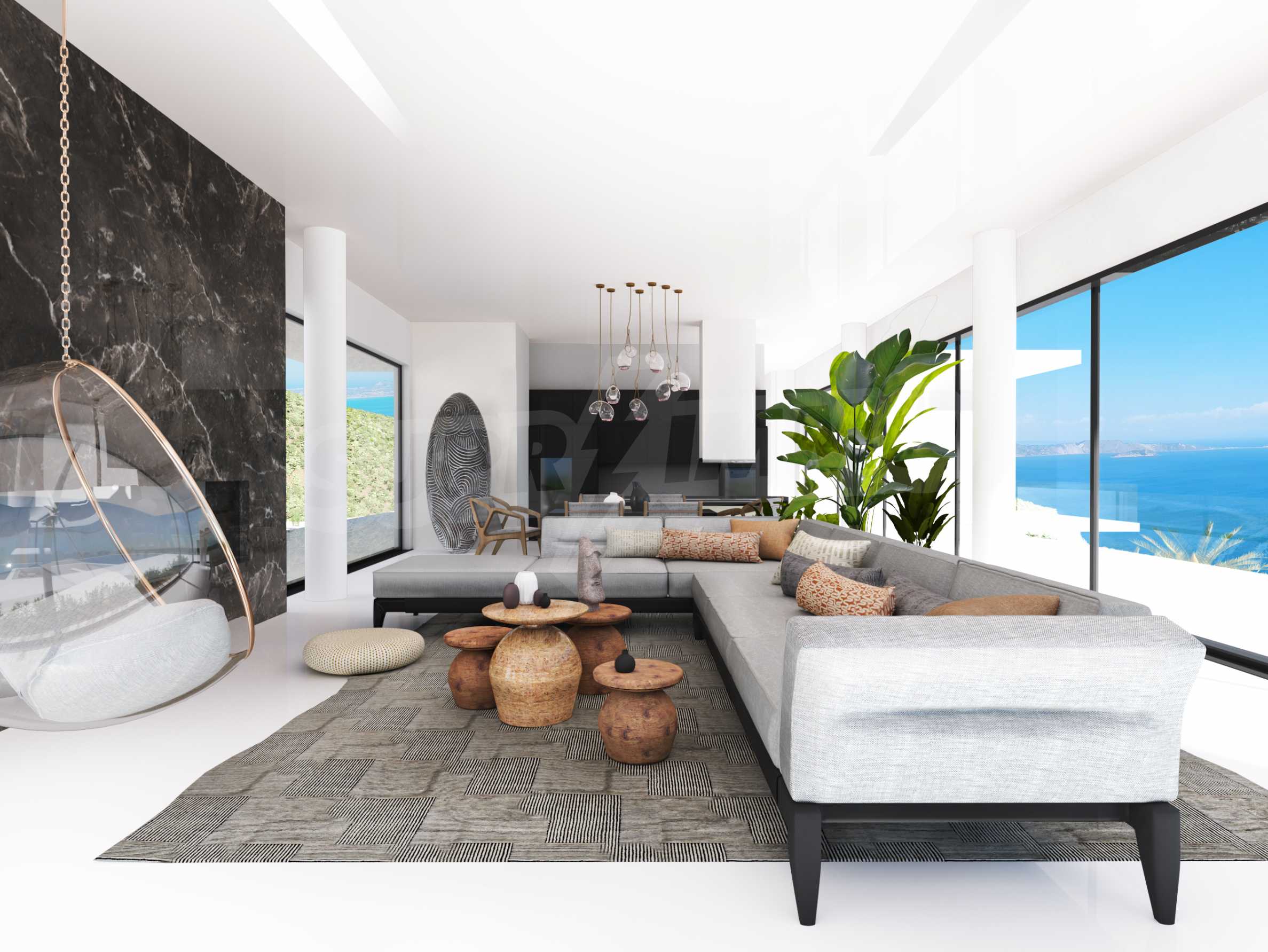 Die Villa wurde mit außergewöhnlicher Liebe zum Detail und Luxus gestaltet. Es wird in einem nachhaltigen, ökologischen Stil mit einer Fläche von 200 m² plus 200 m² gebaut. Keller. Der Hauptwohnbereich verfügt über ein 10 Meter langes französisches Fenster zum Infinity-Pool (70 m²) und eine Terrasse mit weitem Meerblick.
