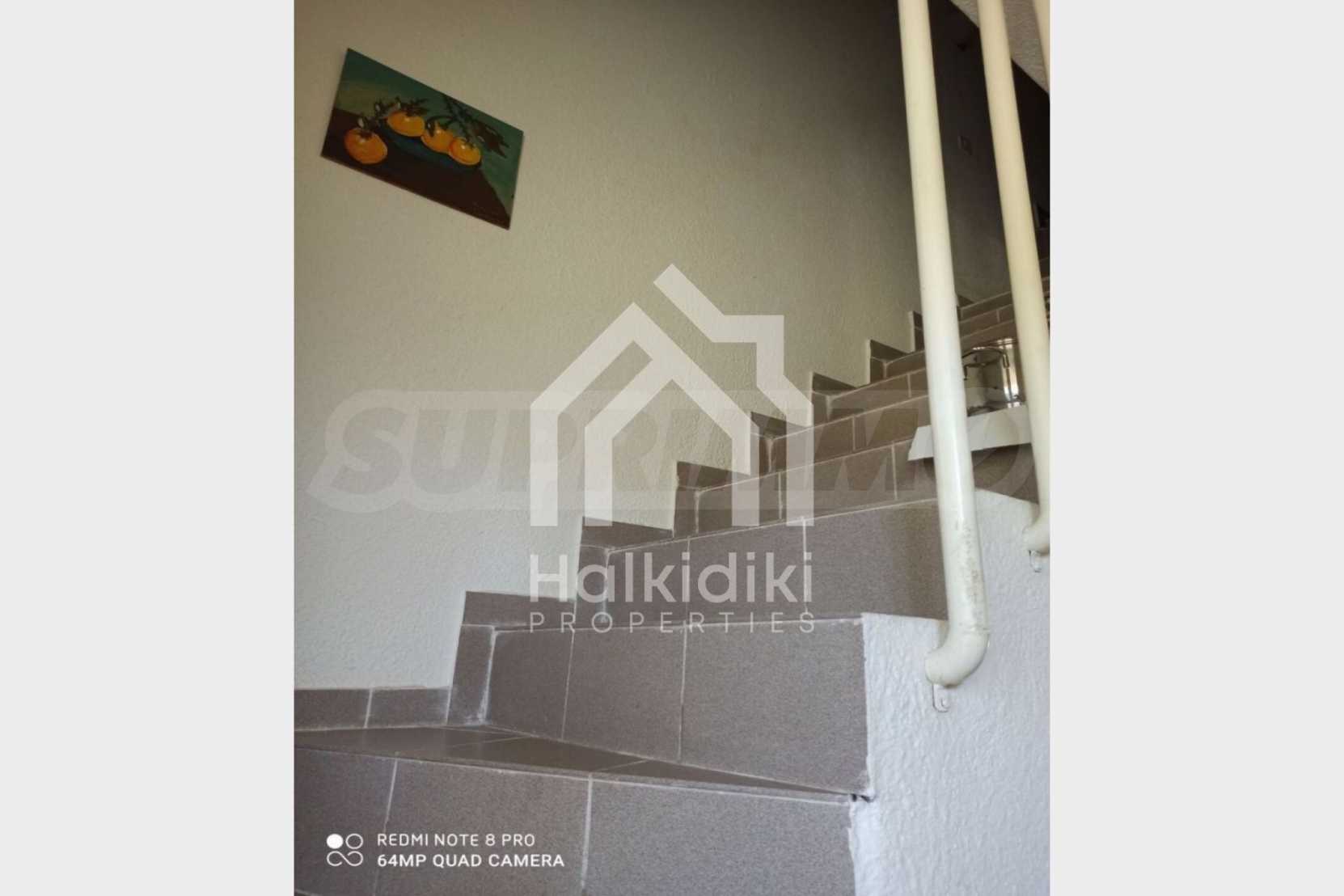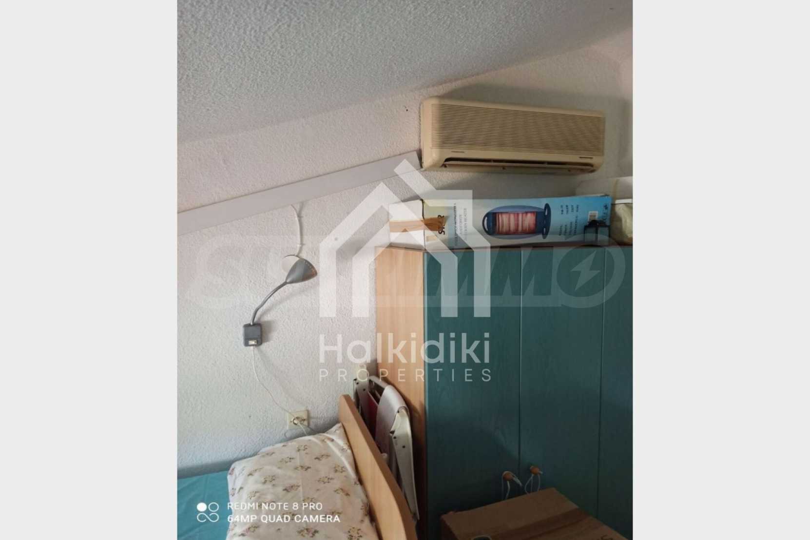 Maisonette in einem Komplex in Kassandra, Chalkidiki, in idealer Lage für alle, die Ruhe suchen. Das Anwesen ist in drei Ebenen aufgeteilt und besteht aus einem Wohnzimmer, das mit der Küche verbunden ist, zwei Schlafzimmern, einem Badezimmer, einem WC und dem Dachboden. Die Maisonette ist einen Kilometer vom besten Strand von Kassandra und zwei Kilometer vom Dorfzentrum entfernt. Es verfügt über eine Tischlerei aus Aluminium, einen Kamin, eine Klimaanlage und einen Parkplatz.