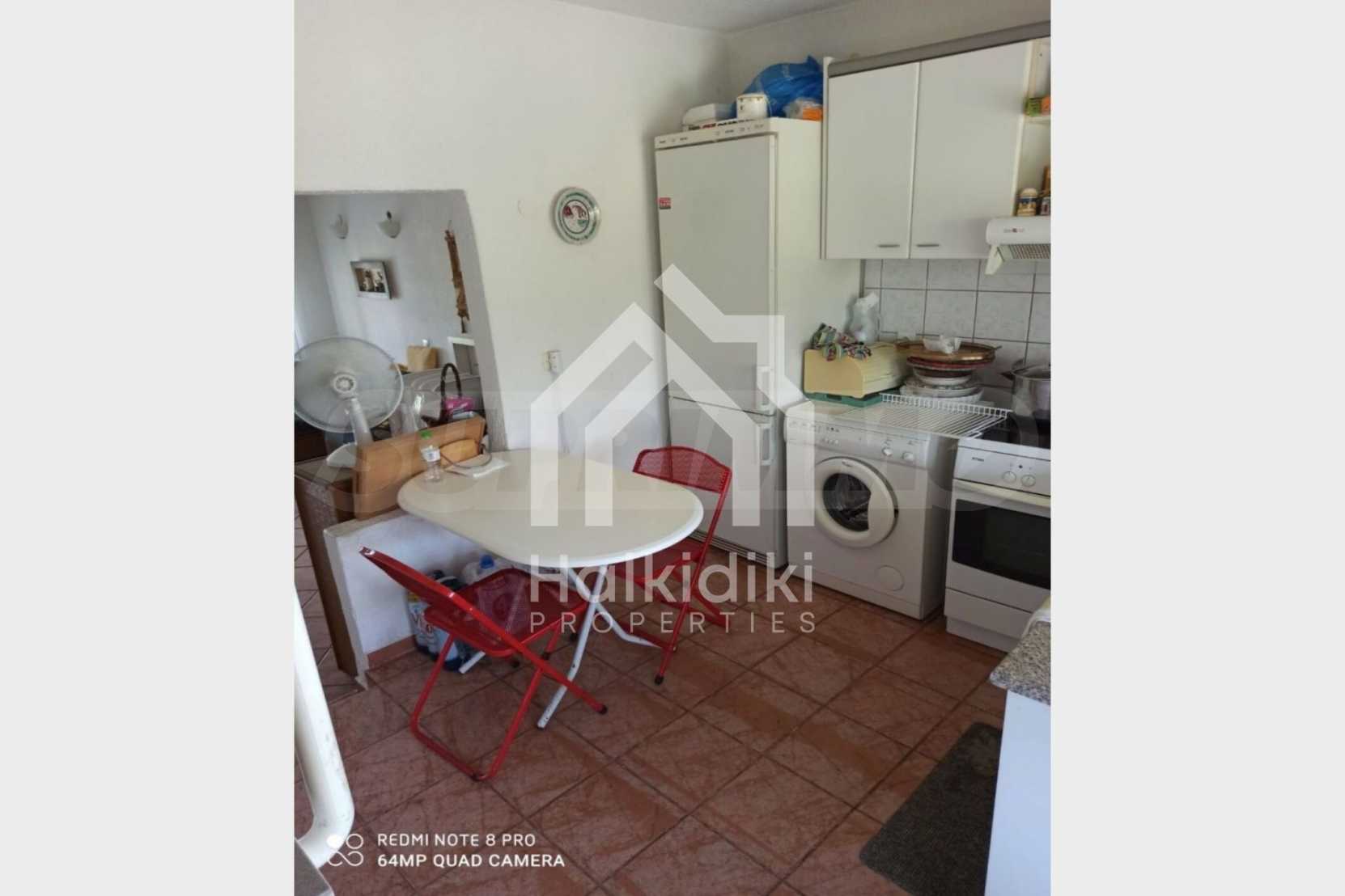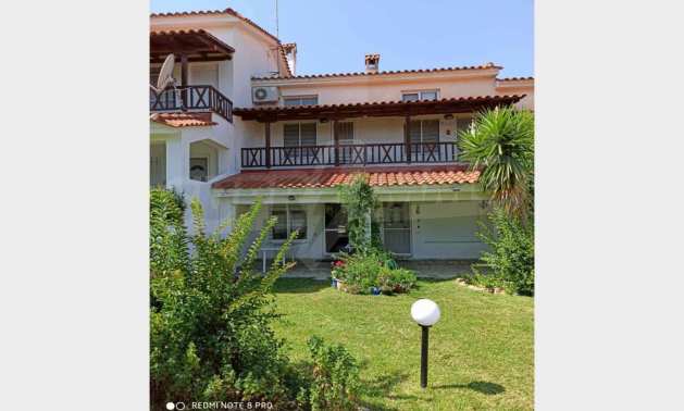 Maisonette in einem Komplex in Kassandra, Chalkidiki, in idealer Lage für alle, die Ruhe suchen. Das Anwesen ist in drei Ebenen aufgeteilt und besteht aus einem Wohnzimmer, das mit der Küche verbunden ist, zwei Schlafzimmern, einem Badezimmer, einem WC und dem Dachboden. Die Maisonette ist einen Kilometer vom besten Strand von Kassandra und zwei Kilometer vom Dorfzentrum entfernt. Es verfügt über eine Tischlerei aus Aluminium, einen Kamin, eine Klimaanlage und einen Parkplatz.