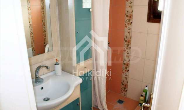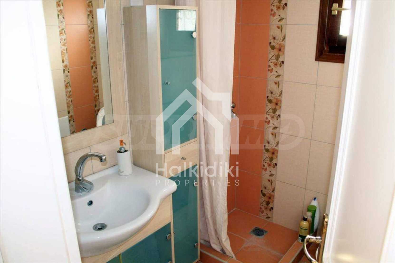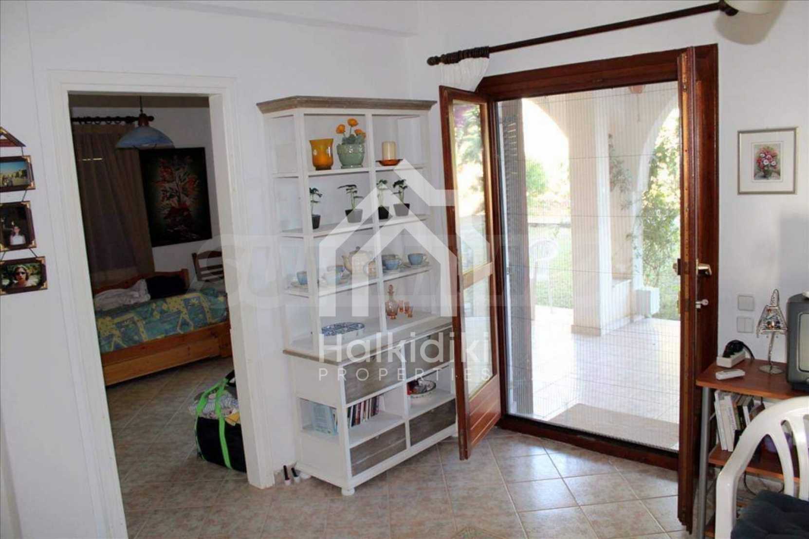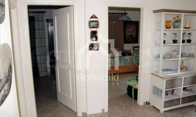 Wunderbare Maisonette in ausgezeichnetem Zustand in Athos, Chalkidiki, mit atemberaubendem Panoramablick auf das Meer, südwestliche Ausrichtung, nur wenige Meter vom Strand entfernt. Es ist in zwei Ebenen aufgeteilt und besteht aus einem mit der Küche verbundenen Wohnzimmer, vier Schlafzimmern, zwei Badezimmern und einem Abstellraum. Es verfügt über große Balkone, Holzschreinerei, Kiosk, Sicherheitstür, Grill, Außendusche und Wassertanks.