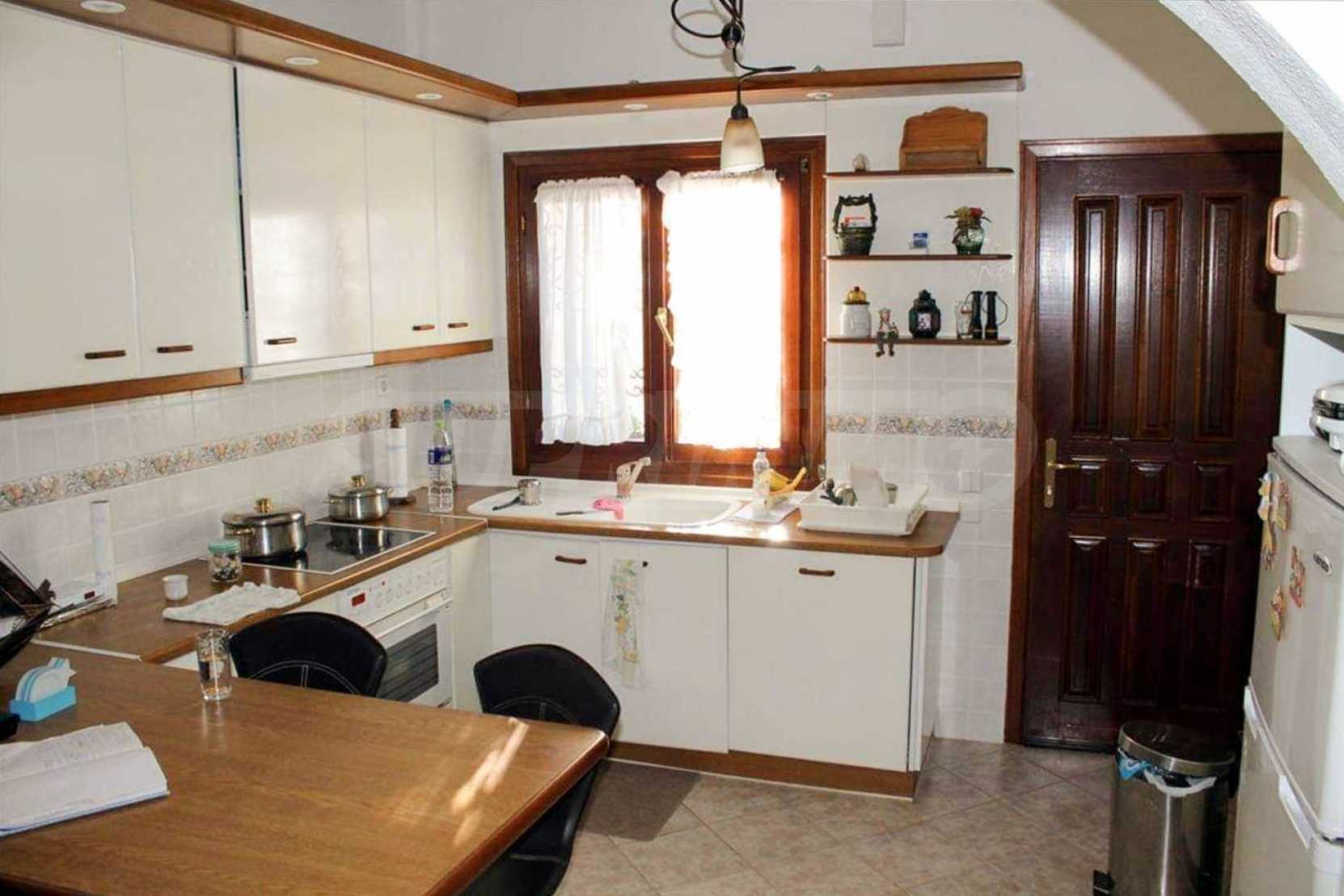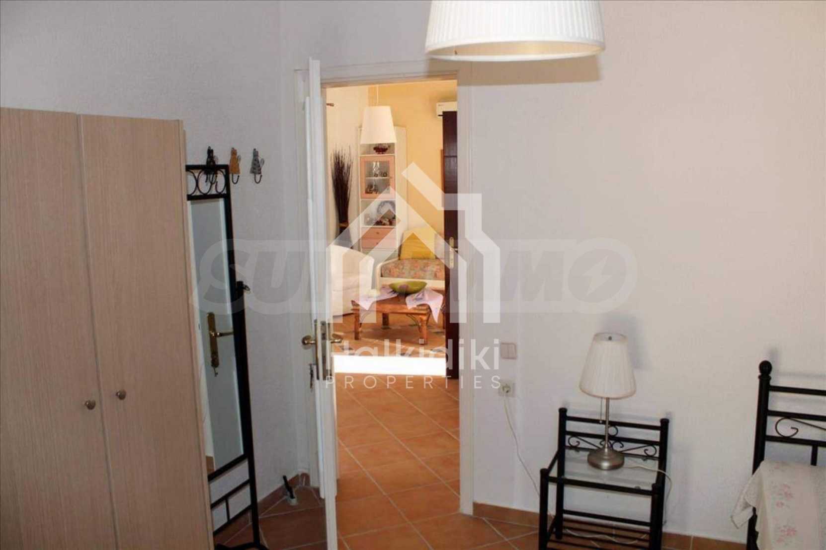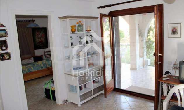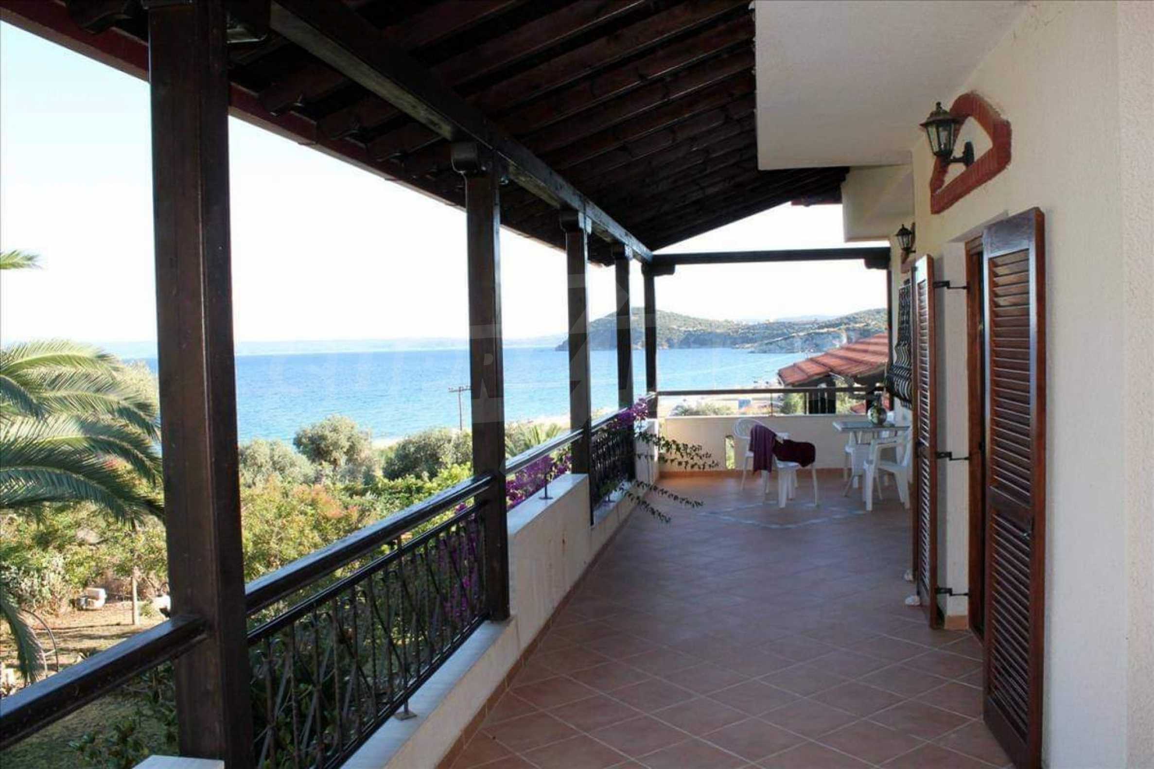 Wunderbare Maisonette in ausgezeichnetem Zustand in Athos, Chalkidiki, mit atemberaubendem Panoramablick auf das Meer, südwestliche Ausrichtung, nur wenige Meter vom Strand entfernt. Es ist in zwei Ebenen aufgeteilt und besteht aus einem mit der Küche verbundenen Wohnzimmer, vier Schlafzimmern, zwei Badezimmern und einem Abstellraum. Es verfügt über große Balkone, Holzschreinerei, Kiosk, Sicherheitstür, Grill, Außendusche und Wassertanks.