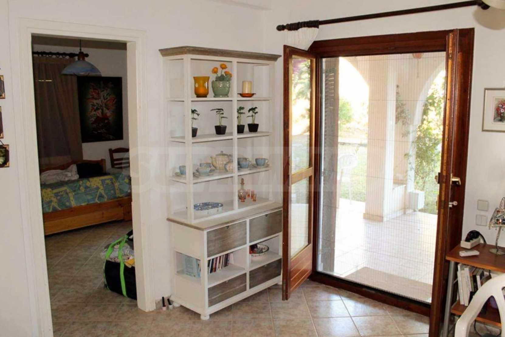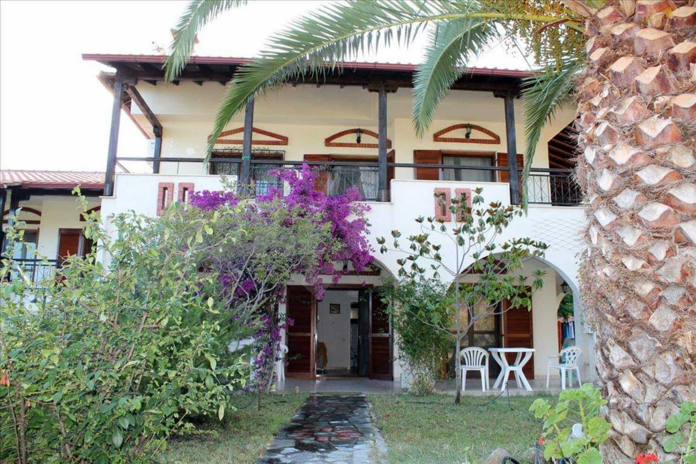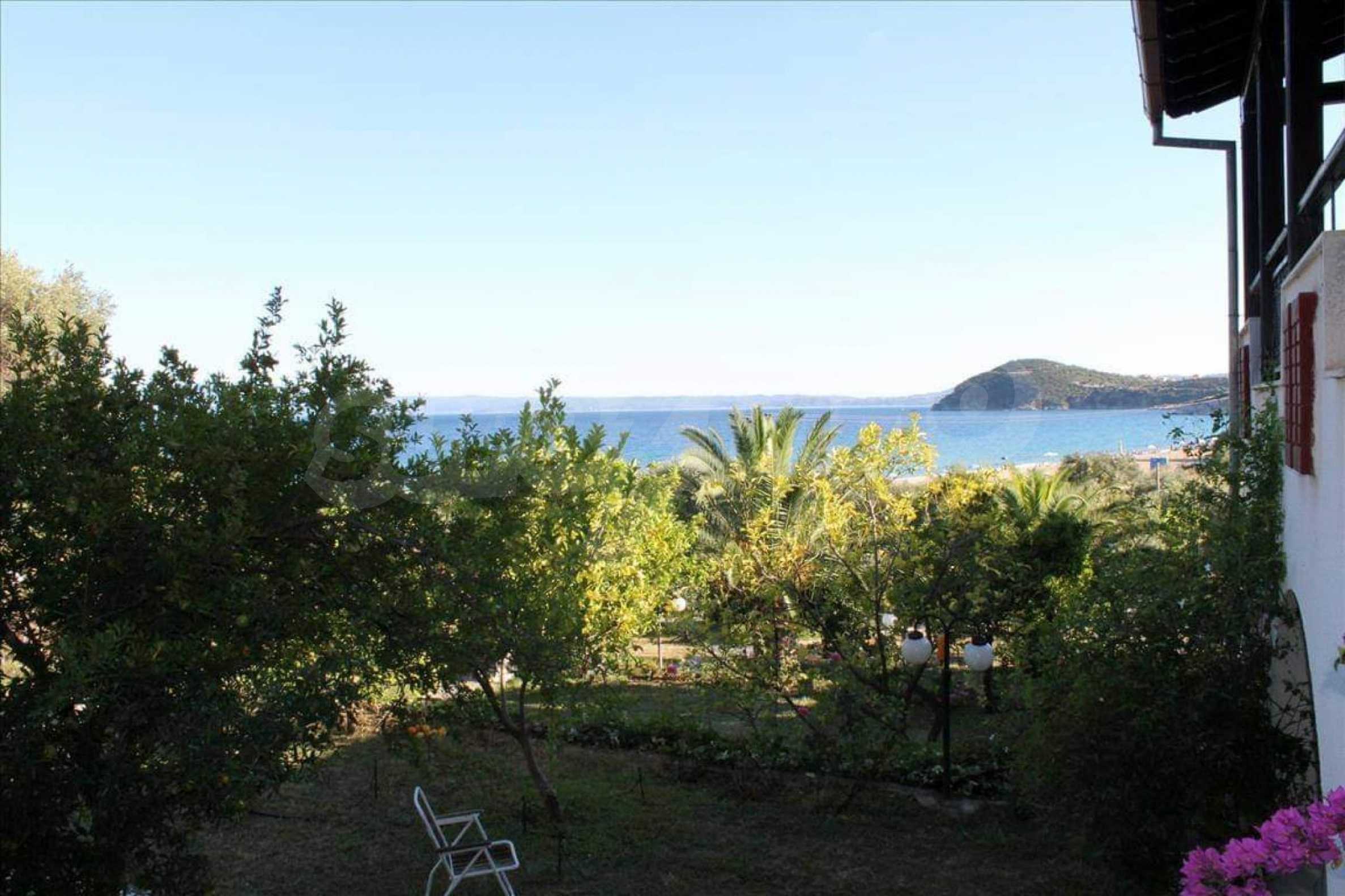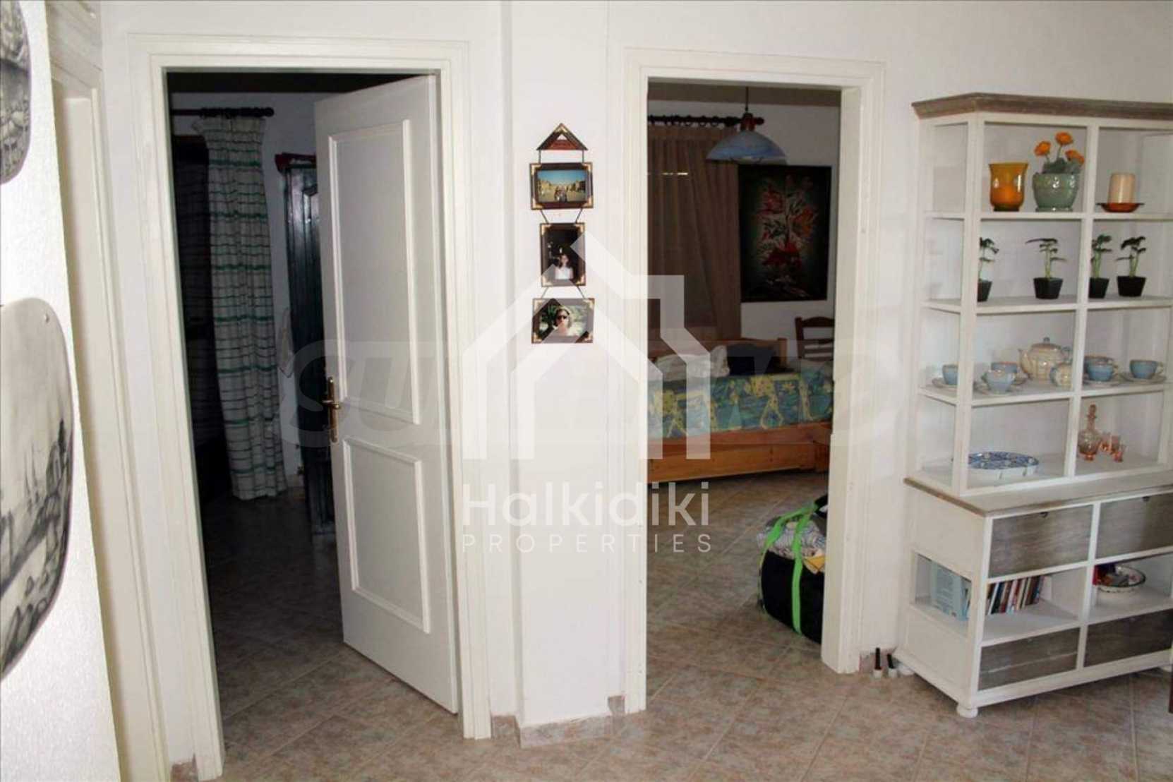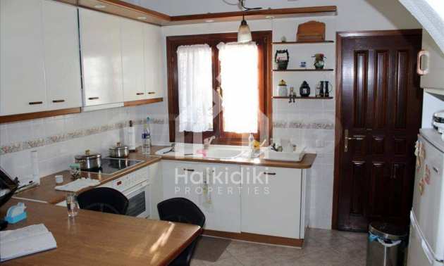 Wunderbare Maisonette in ausgezeichnetem Zustand in Athos, Chalkidiki, mit atemberaubendem Panoramablick auf das Meer, südwestliche Ausrichtung, nur wenige Meter vom Strand entfernt. Es ist in zwei Ebenen aufgeteilt und besteht aus einem mit der Küche verbundenen Wohnzimmer, vier Schlafzimmern, zwei Badezimmern und einem Abstellraum. Es verfügt über große Balkone, Holzschreinerei, Kiosk, Sicherheitstür, Grill, Außendusche und Wassertanks.