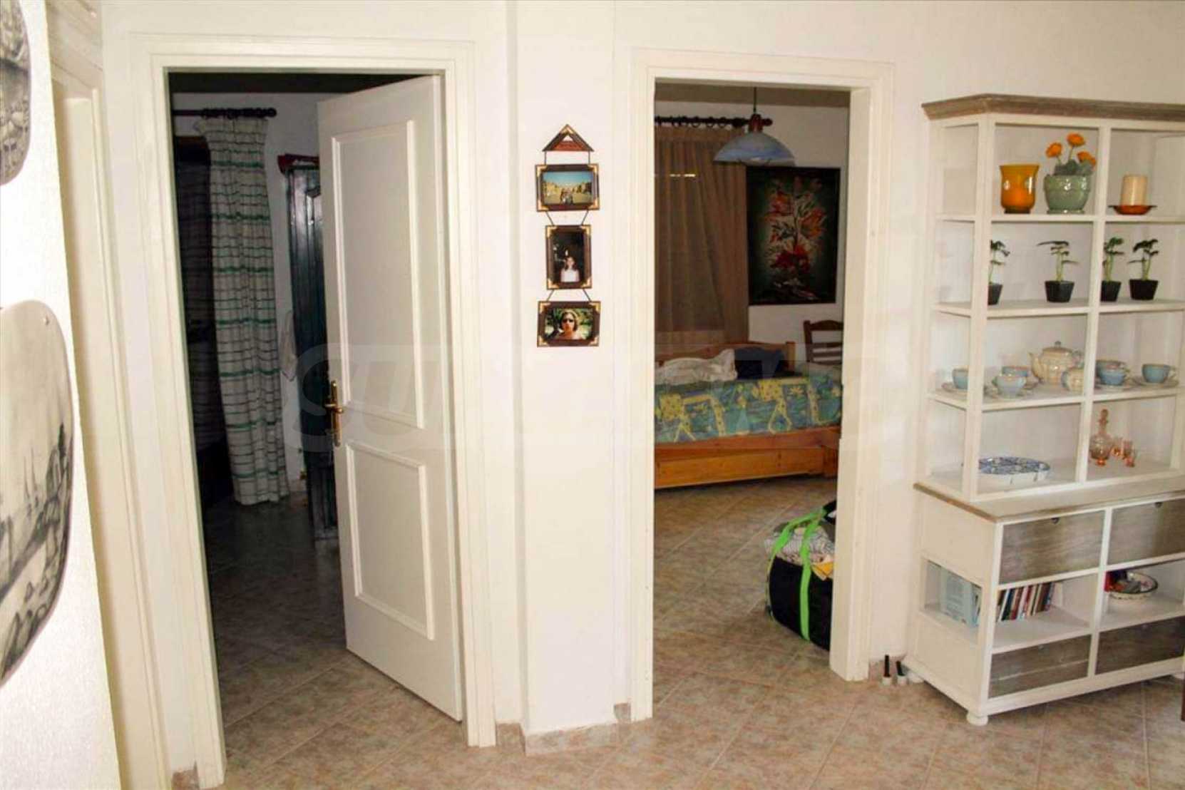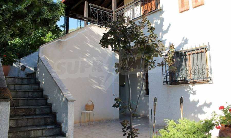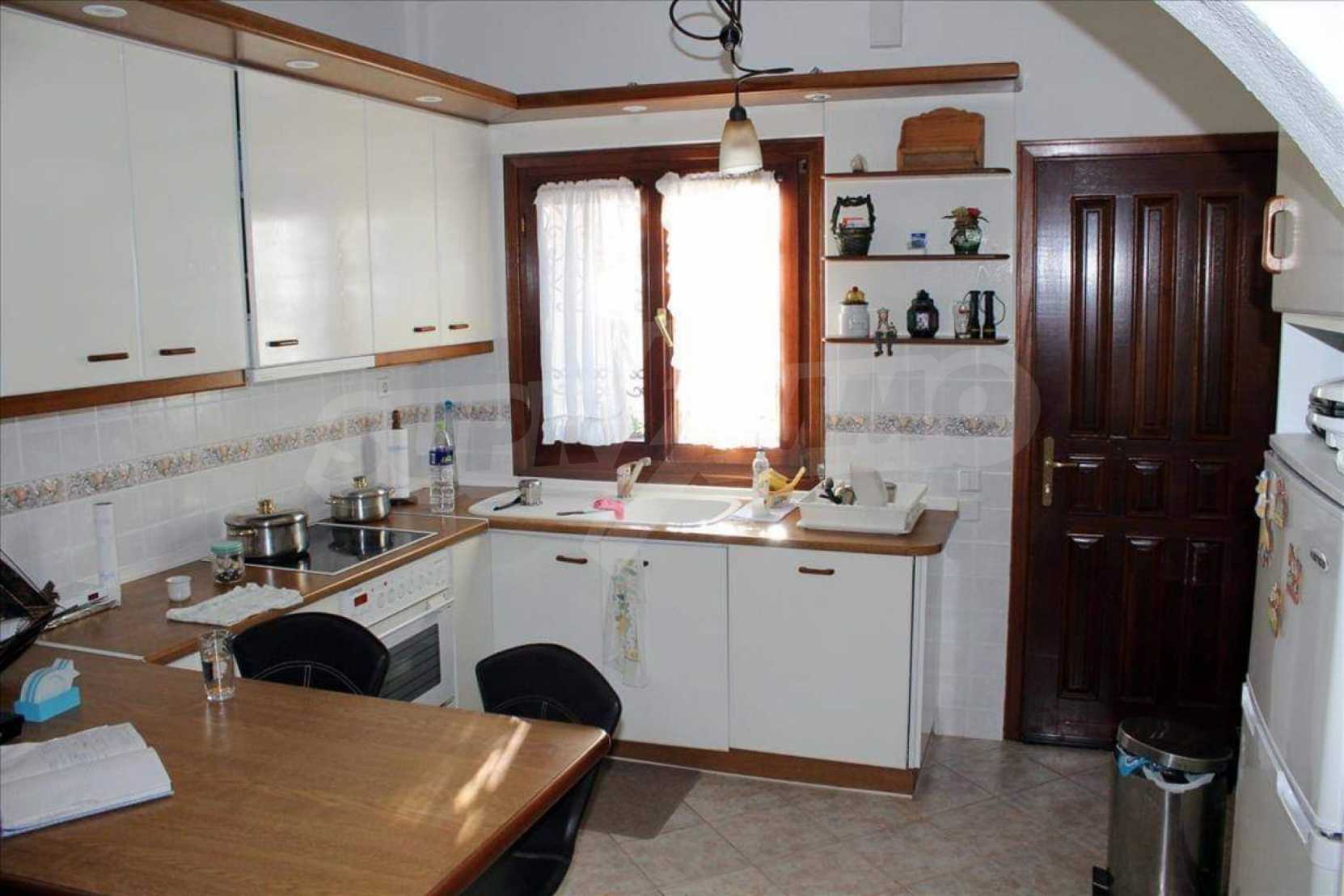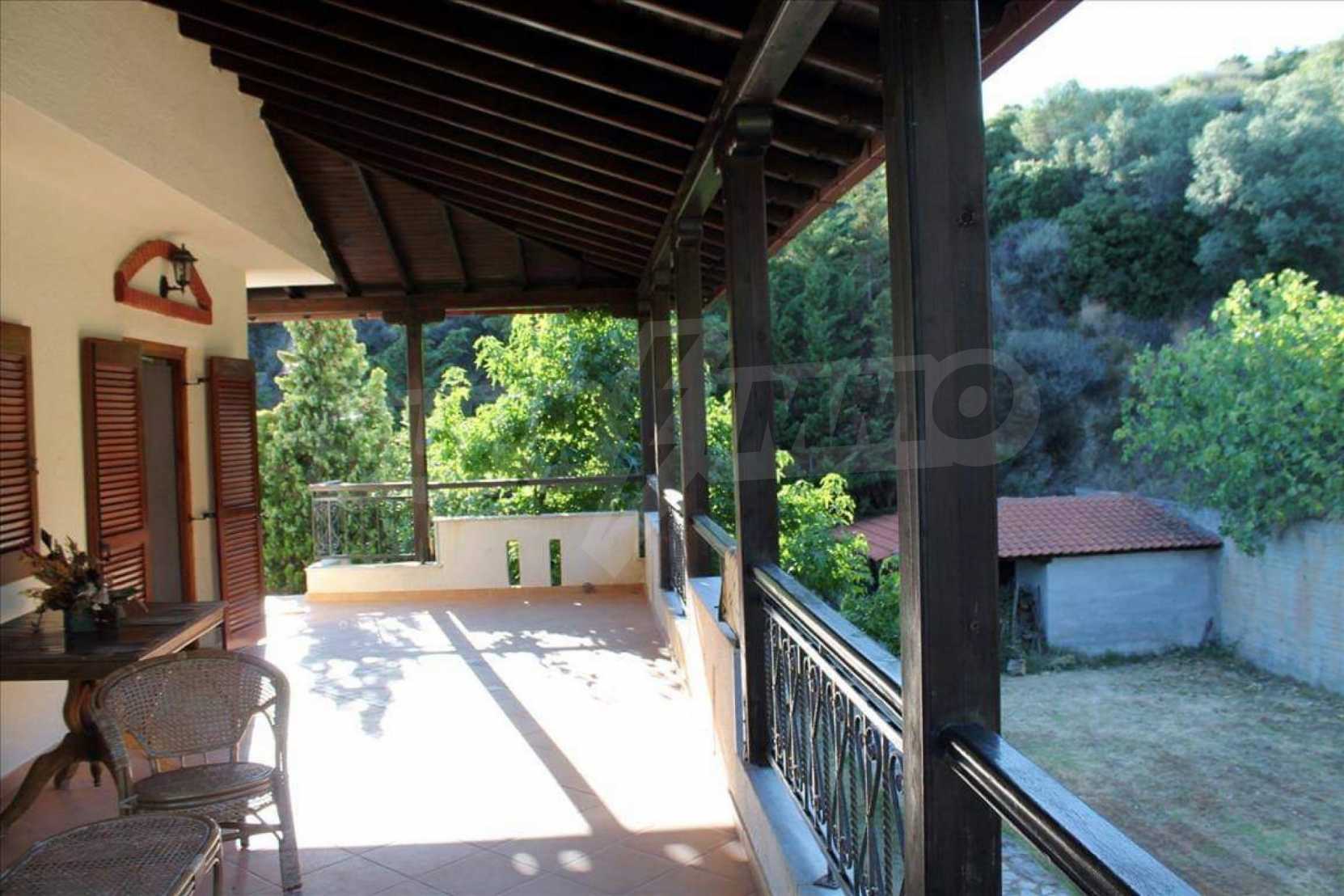Wunderbare Maisonette in ausgezeichnetem Zustand in Athos, Chalkidiki, mit atemberaubendem Panoramablick auf das Meer, südwestliche Ausrichtung, nur wenige Meter vom Strand entfernt. Es ist in zwei Ebenen aufgeteilt und besteht aus einem mit der Küche verbundenen Wohnzimmer, vier Schlafzimmern, zwei Badezimmern und einem Abstellraum. Es verfügt über große Balkone, Holzschreinerei, Kiosk, Sicherheitstür, Grill, Außendusche und Wassertanks.