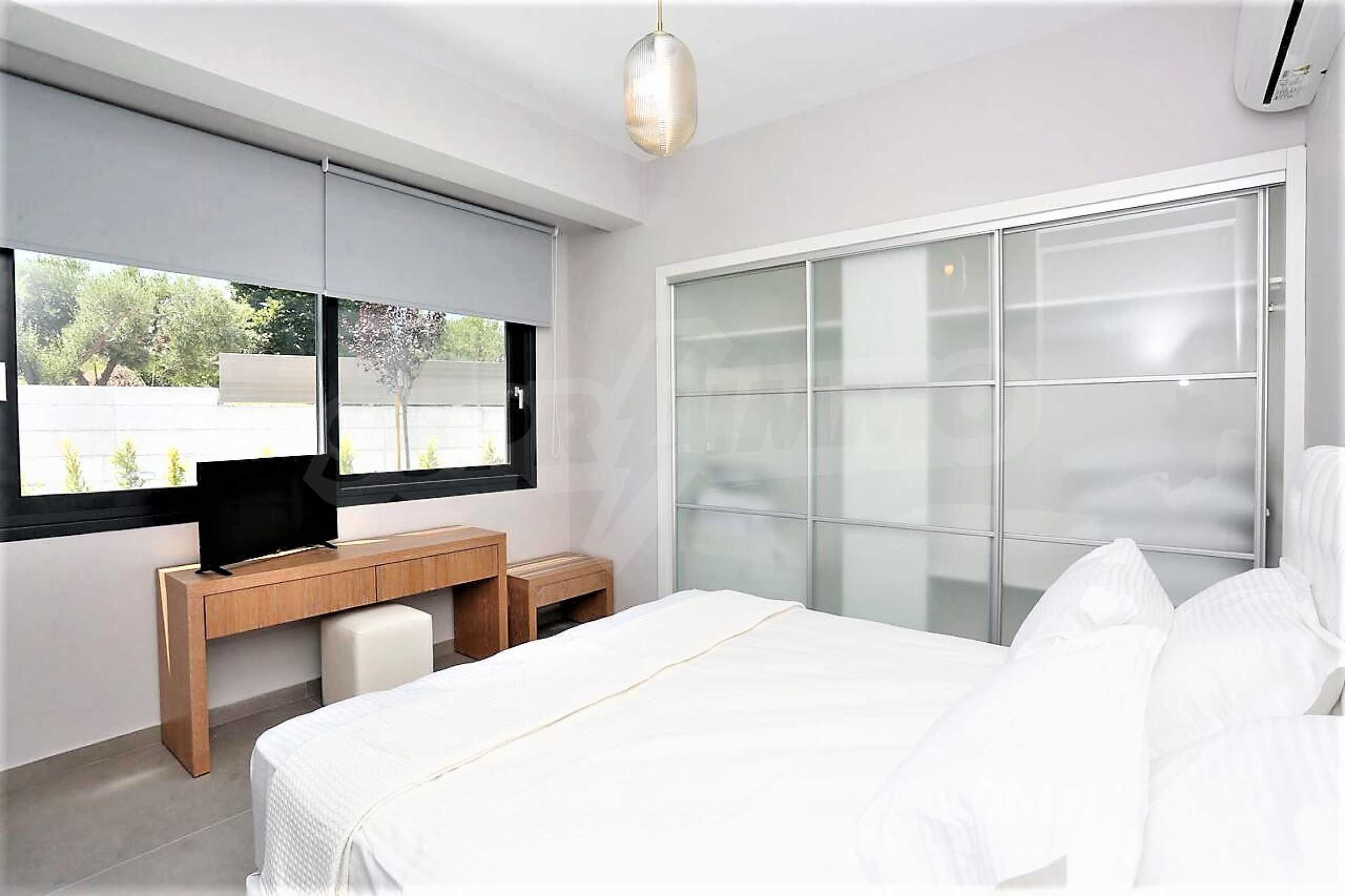 Die Villa ist Teil eines kleinen Komplexes, der aus 3 freistehenden Villen mit jeweils eigenem Pool und Garten besteht. Das Anwesen zeichnet sich durch seine moderne und zeitgemäße Architektur, Lage und vor allem durch den freien Panoramablick auf das türkisblaue Wasser der Ägäis aus.