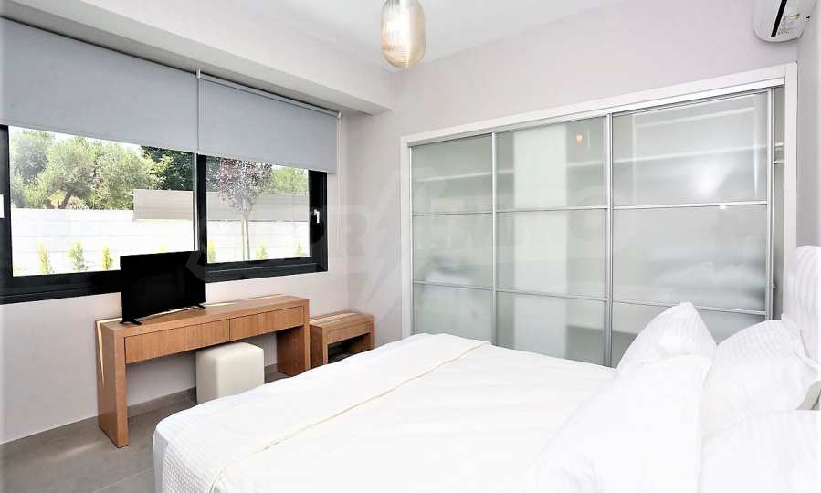 Wir präsentieren Ihnen eine Luxusvilla mit Pool, die in einem der beliebtesten und beliebtesten Reiseziele auf Chalkidiki, Hanioti, neu gebaut wurde.