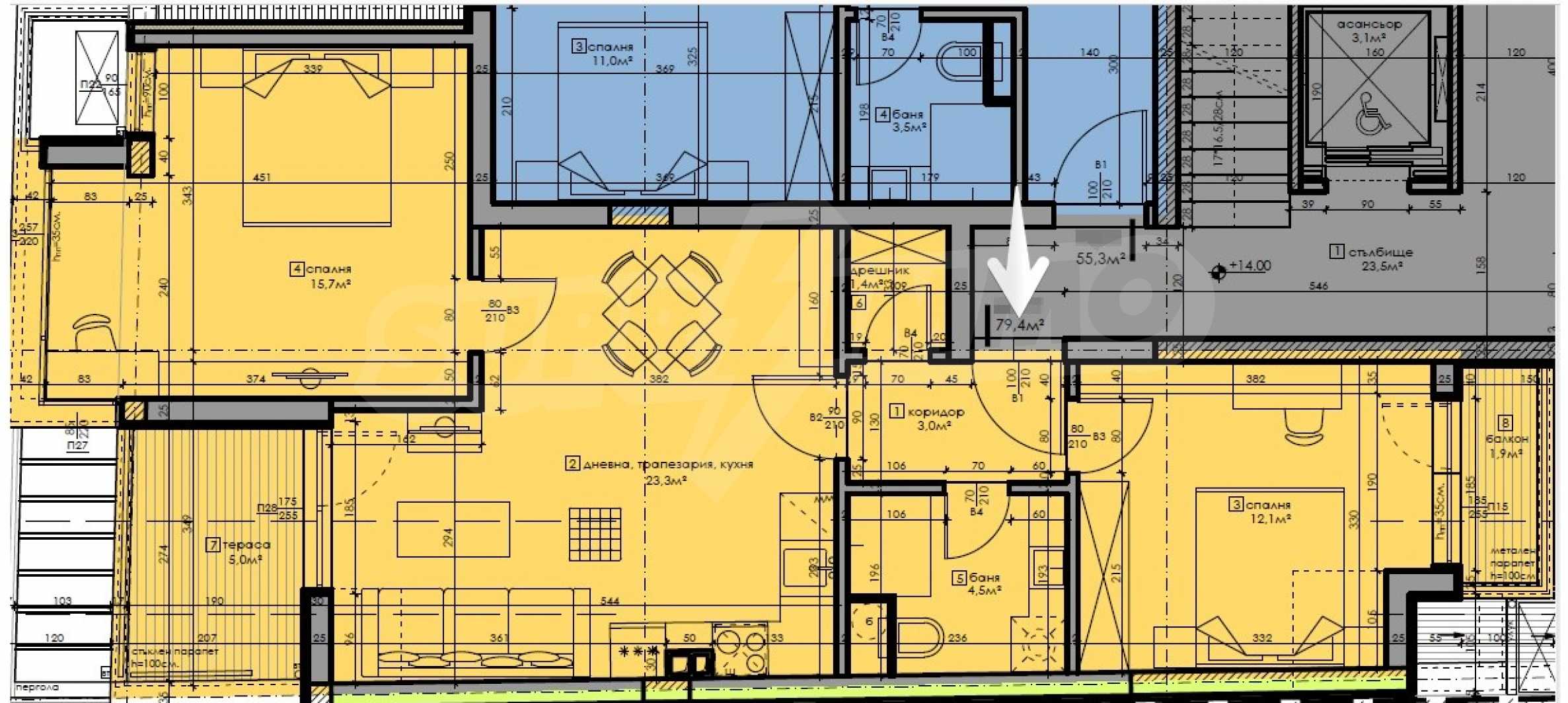 Zum Verkauf stellen wir eine Neubauwohnung mit zwei Schlafzimmern von 93,89 m² im 6. Stock eines modernen Wohngebäudes im zentralen Teil von Varna zum Verkauf: