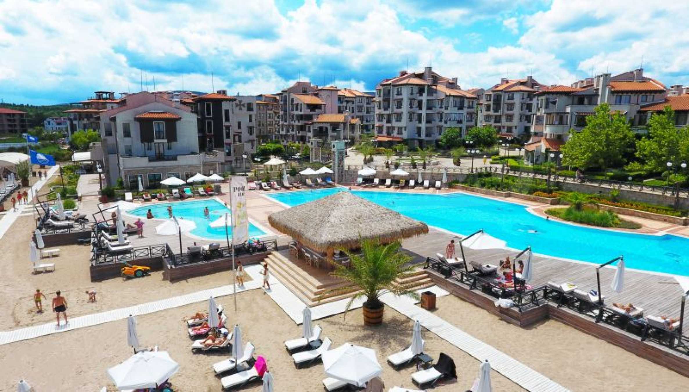 Die Lage des Komplexes kombiniert eine einzigartige Kombination aus einem eigenen Strand, 100 Meter breit und mehr als 500 Meter lang, einer der wenigen mit einer "Blauen Flagge" in Bulgarien und der unglaublichen Natur des Strandzha-Berges. Der Komplex wurde von hochprofessionellen Teams im mediterranen Stil mit außergewöhnlicher Architektur und Design entworfen, die den Regeln des "Feng Shui" und der natürlichen Umgebung voll und ganz entsprechen. Dies ist der grünste Komplex an der bulgarischen Schwarzmeerküste. Die Landschaft und die ganzjährige Landschaftsgestaltung werden von allen Eigentümern und Gästen hoch geschätzt.