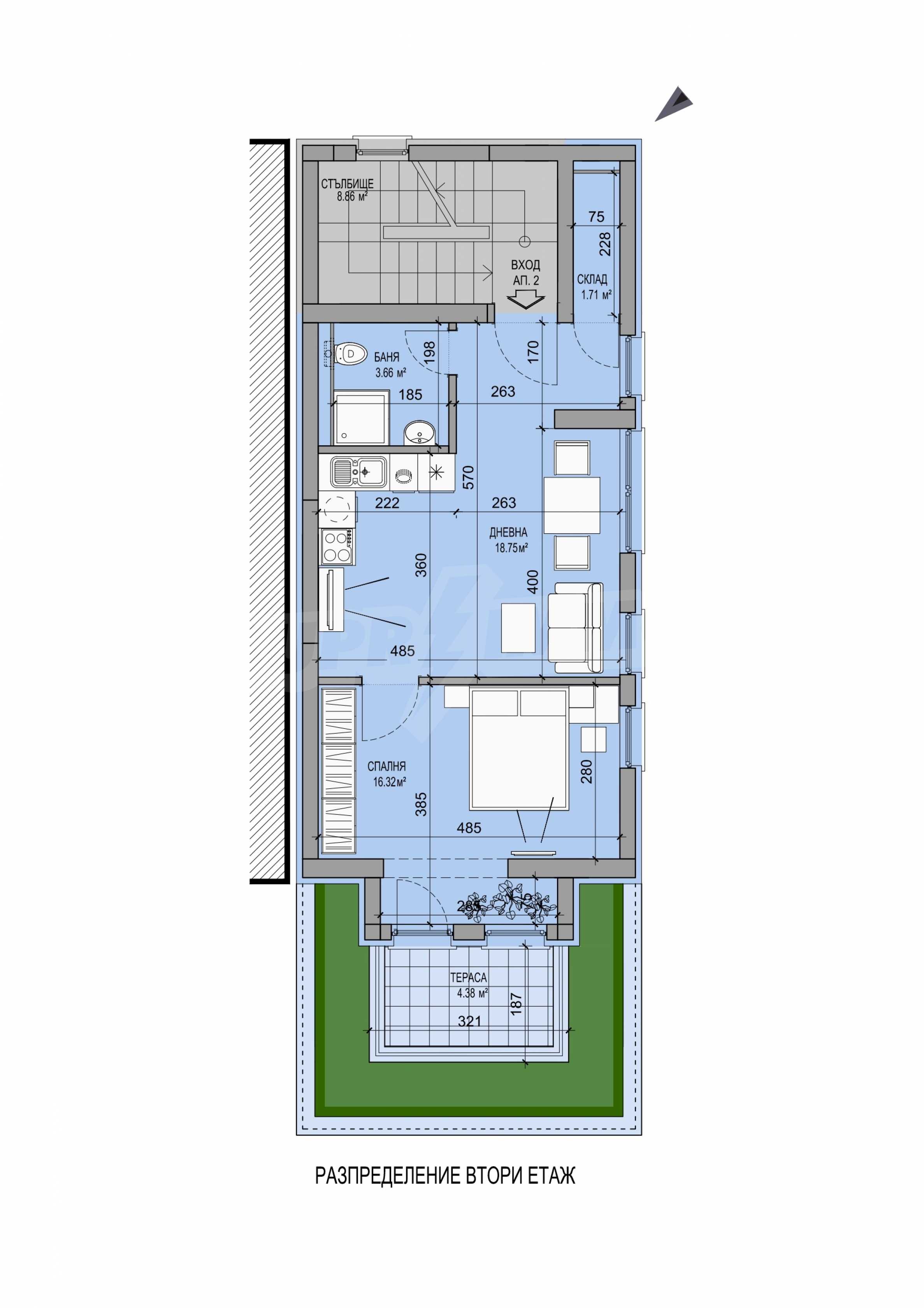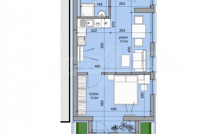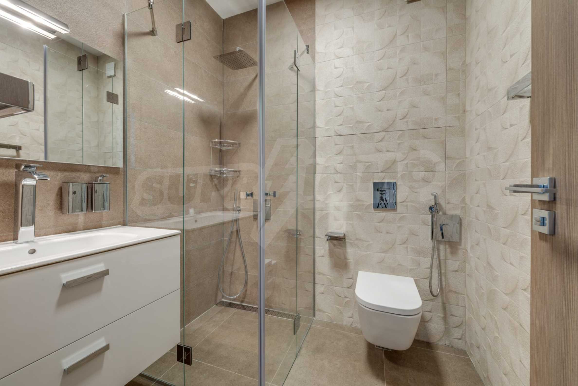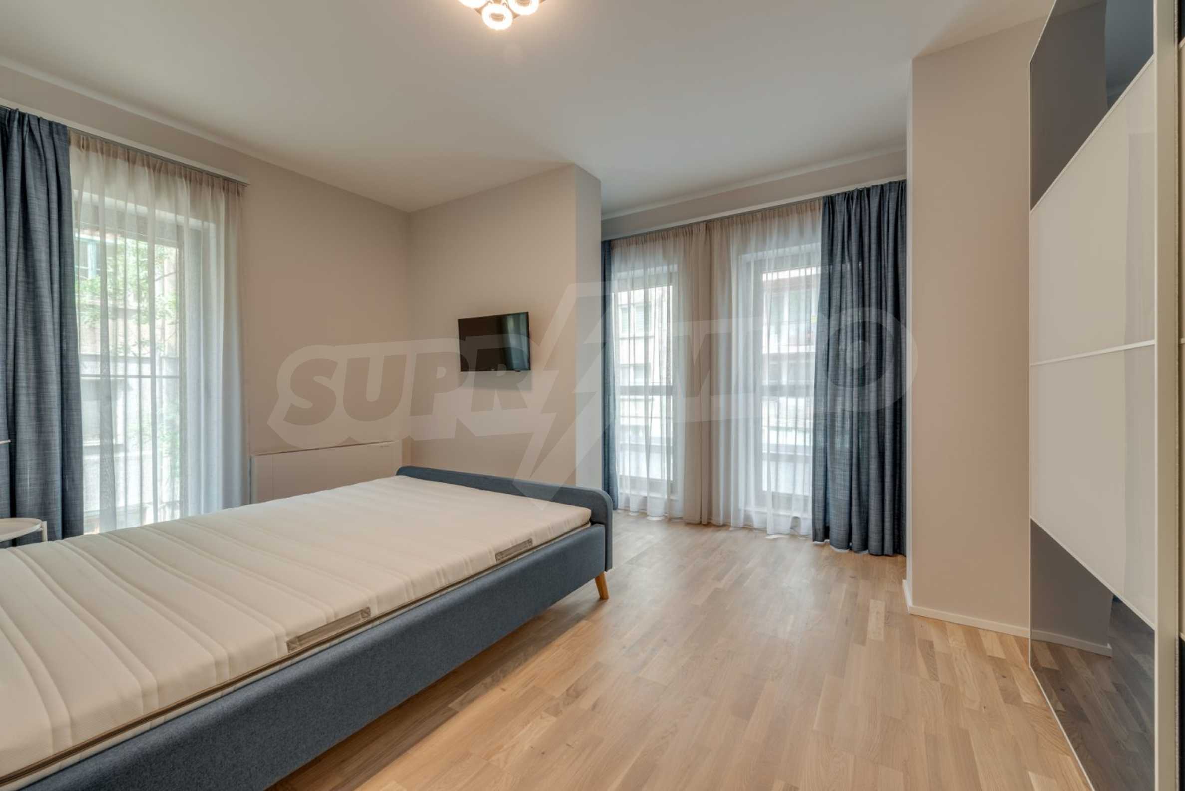 Wir präsentieren Ihnen ein stilvoll eingerichtetes Ein-Zimmer-Apartment mit großer Terrasse in einem neuen Boutique-Gebäude. Die Immobilie befindet sich im Herzen der Hauptstadt, in unmittelbarer Nähe zum Nationalen Kulturpalast, der Medizinischen Akademie, dem Fünf-Ecken-Viertel und dem Madara-Bad. Das Gebäude besticht durch hochwertige Materialien und Liebe zum Detail. Die Fassade besteht aus Naturstein, Glas und Fassadenbeleuchtung. Die Fenster und Türen stammen von Reynaers, die Heizungs- und Sanitäranlage ist hocheffizient von Viessmann. Videoüberwachung und eine Video-Gegensprechanlage sind ebenfalls vorhanden. Der Innenhof ist zugangskontrolliert.
