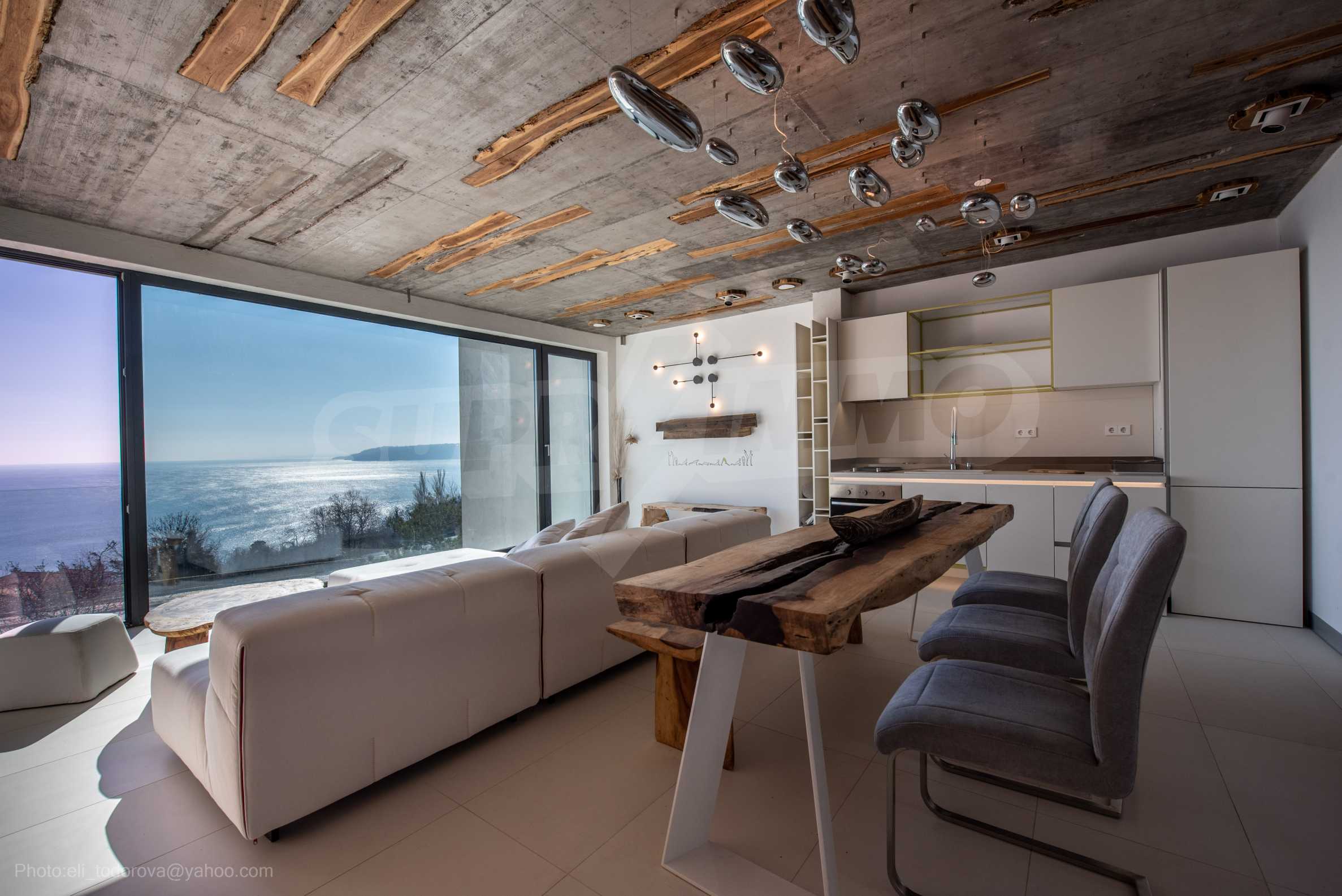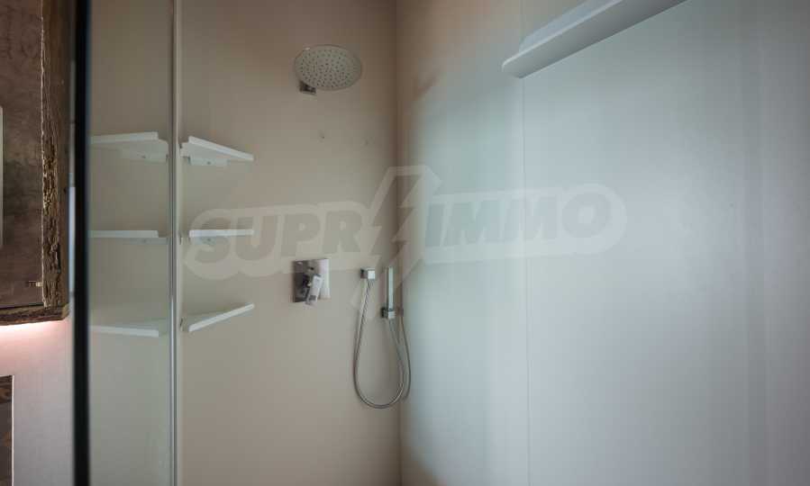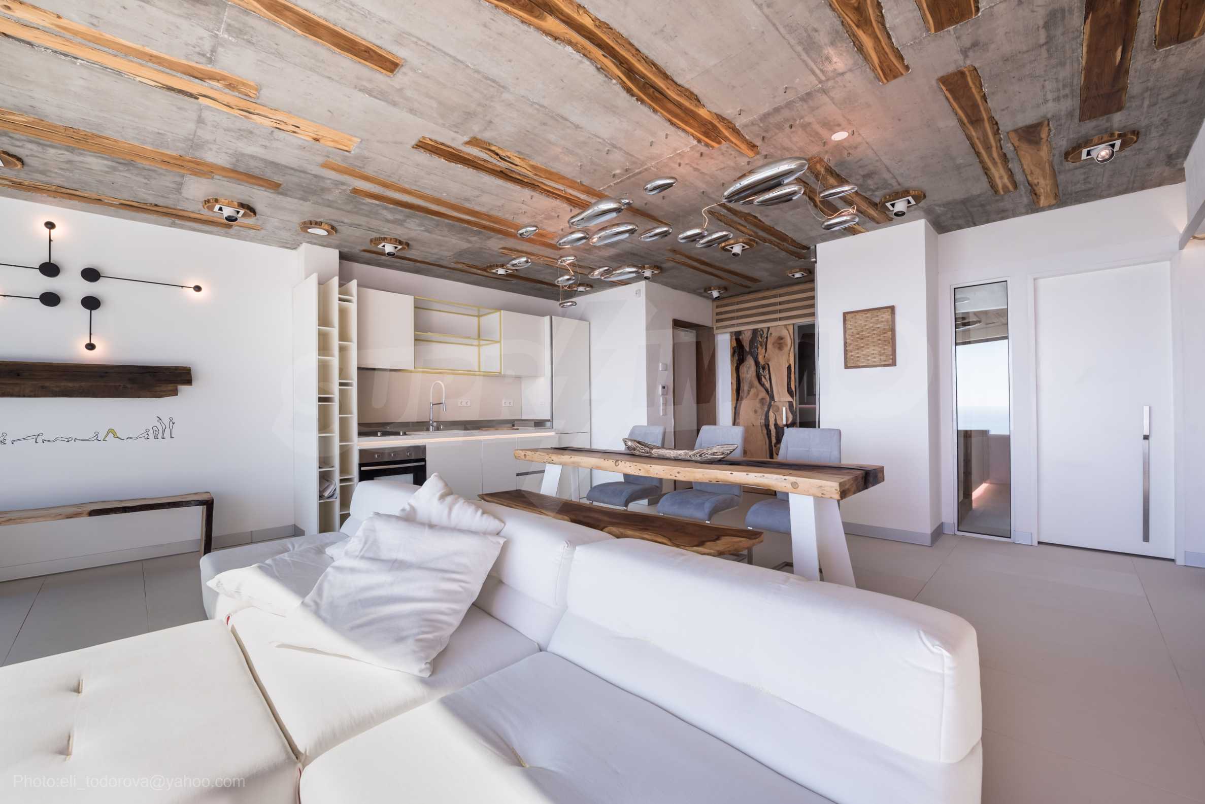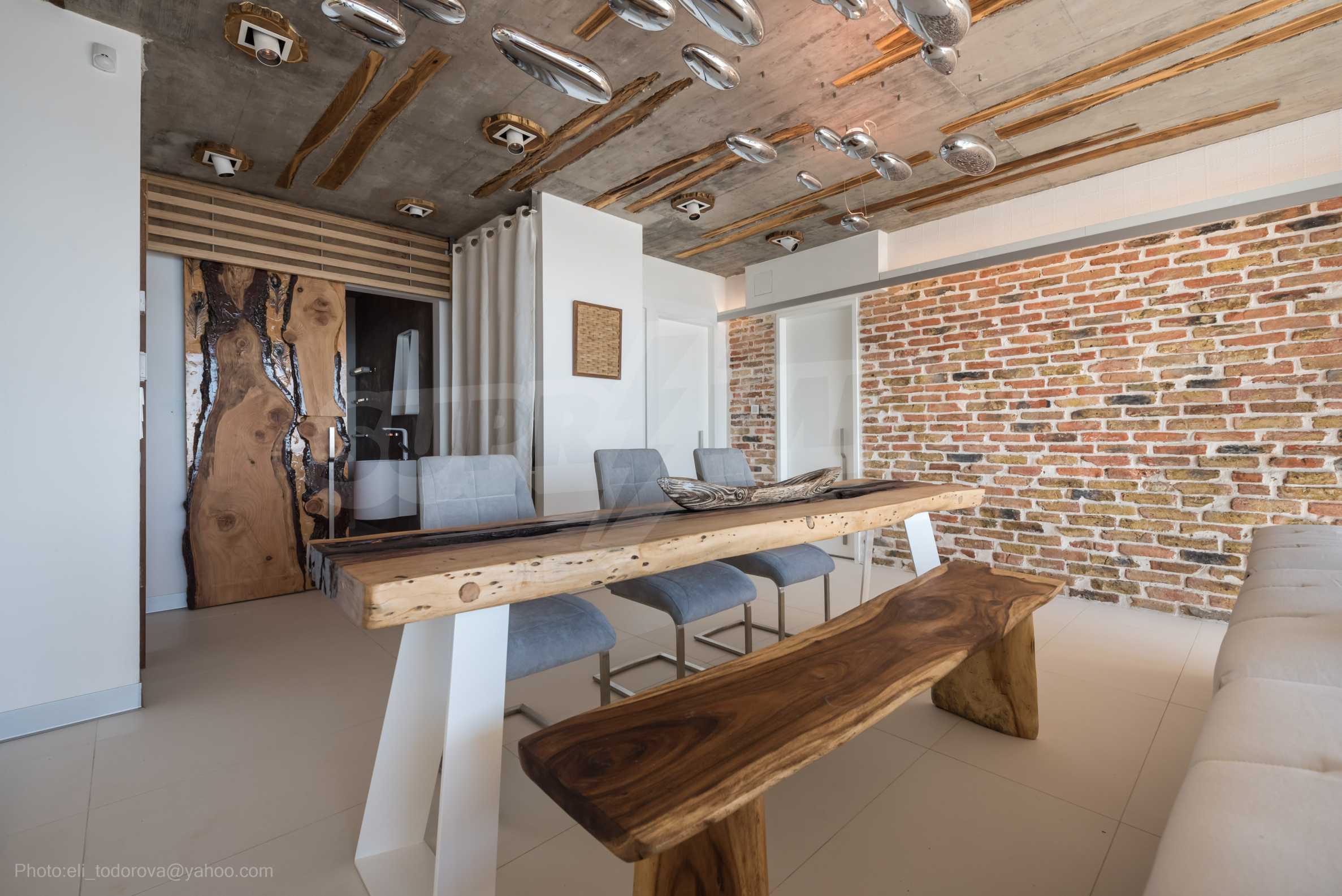 Das Design ist einzigartig - natürlich und modern, herausfordernd und hell und vermittelt die Botschaft von Autonomie, Entspannung und Meeresatmosphäre. In die Betonplatten an der Decke der Wohnung sind Akazienornamente aus natürlichem Beton eingebaut. Die Backsteinmauern und der Beton werden zur natürlichen Dekoration verwendet, da sie zusätzlich behandelt, imprägniert und grundiert werden. Möbel, Küche, Matratzen und Sofas, attraktive Fliesen, Beleuchtungskörper - alle sind von bekannten italienischen Marken. Der Fokus im Speisesaal liegt auf dem extravaganten Tisch, der auf Bestellung aus kostbarem und seltenem Holz aus dem Amazonas gefertigt wird. Das Badezimmer ist durch eine Glastür für viel Sonnenlicht getrennt und alle Badezimmer sind in erstklassiger deutscher Qualität.