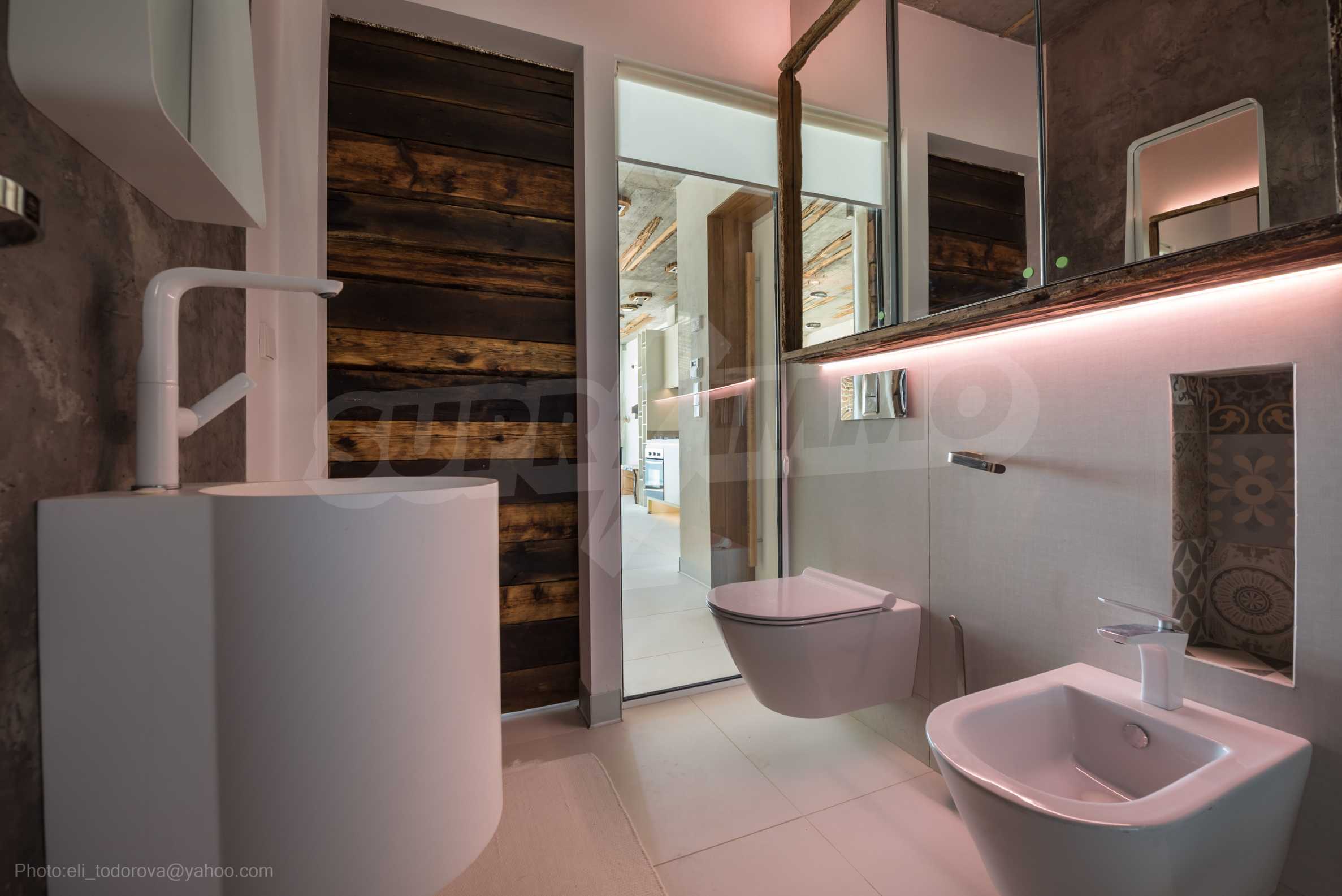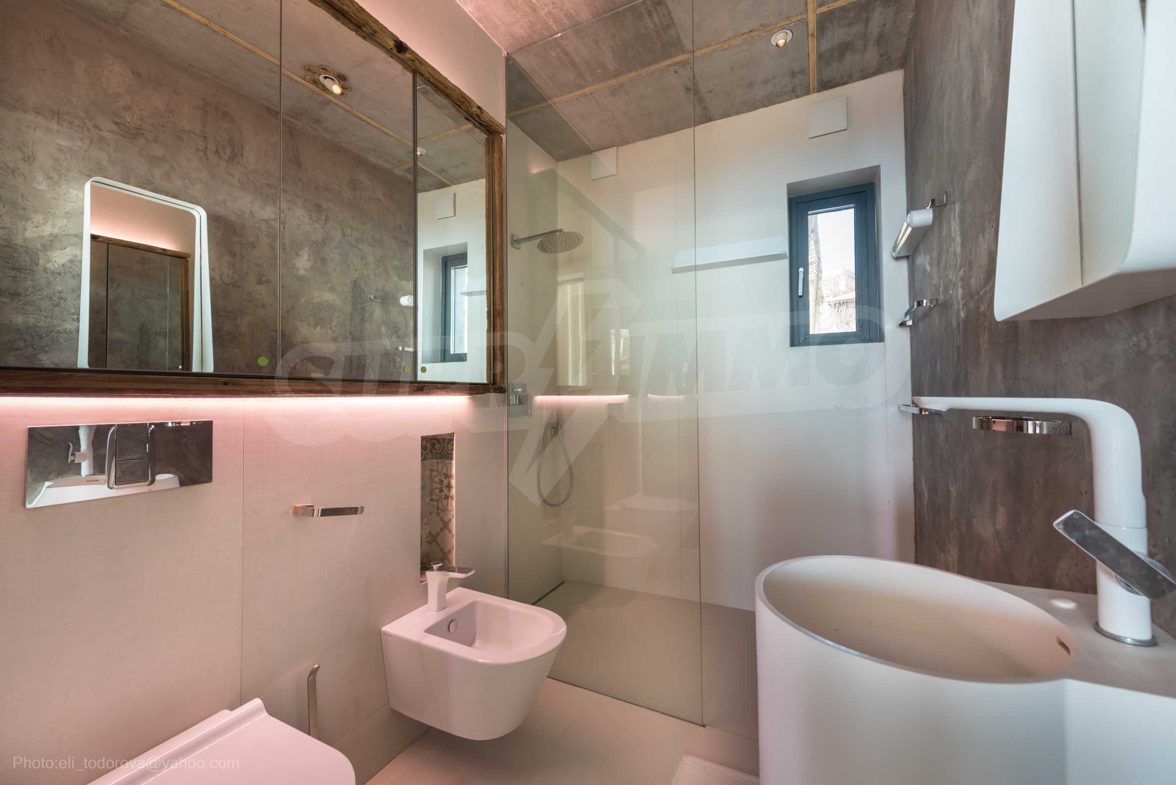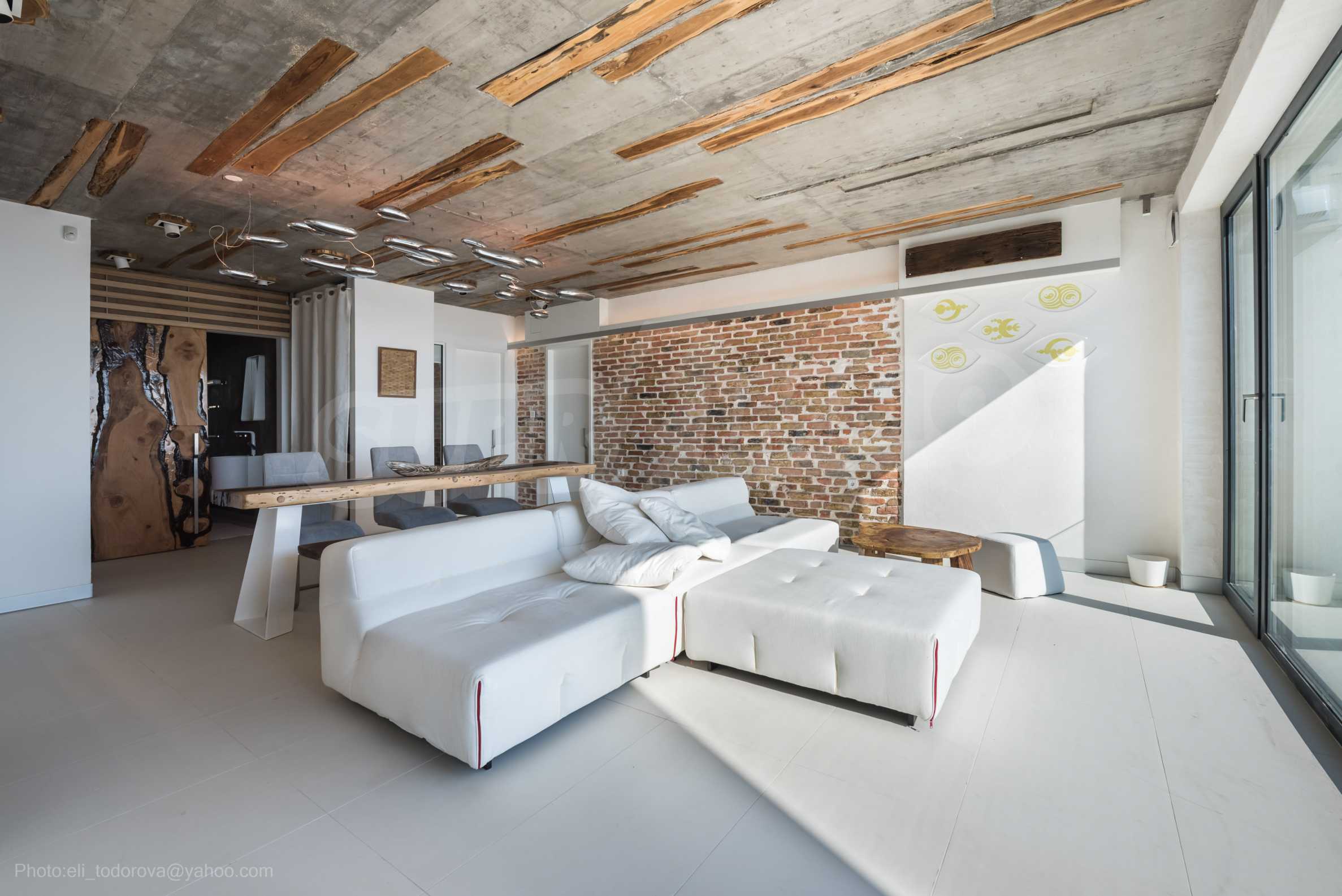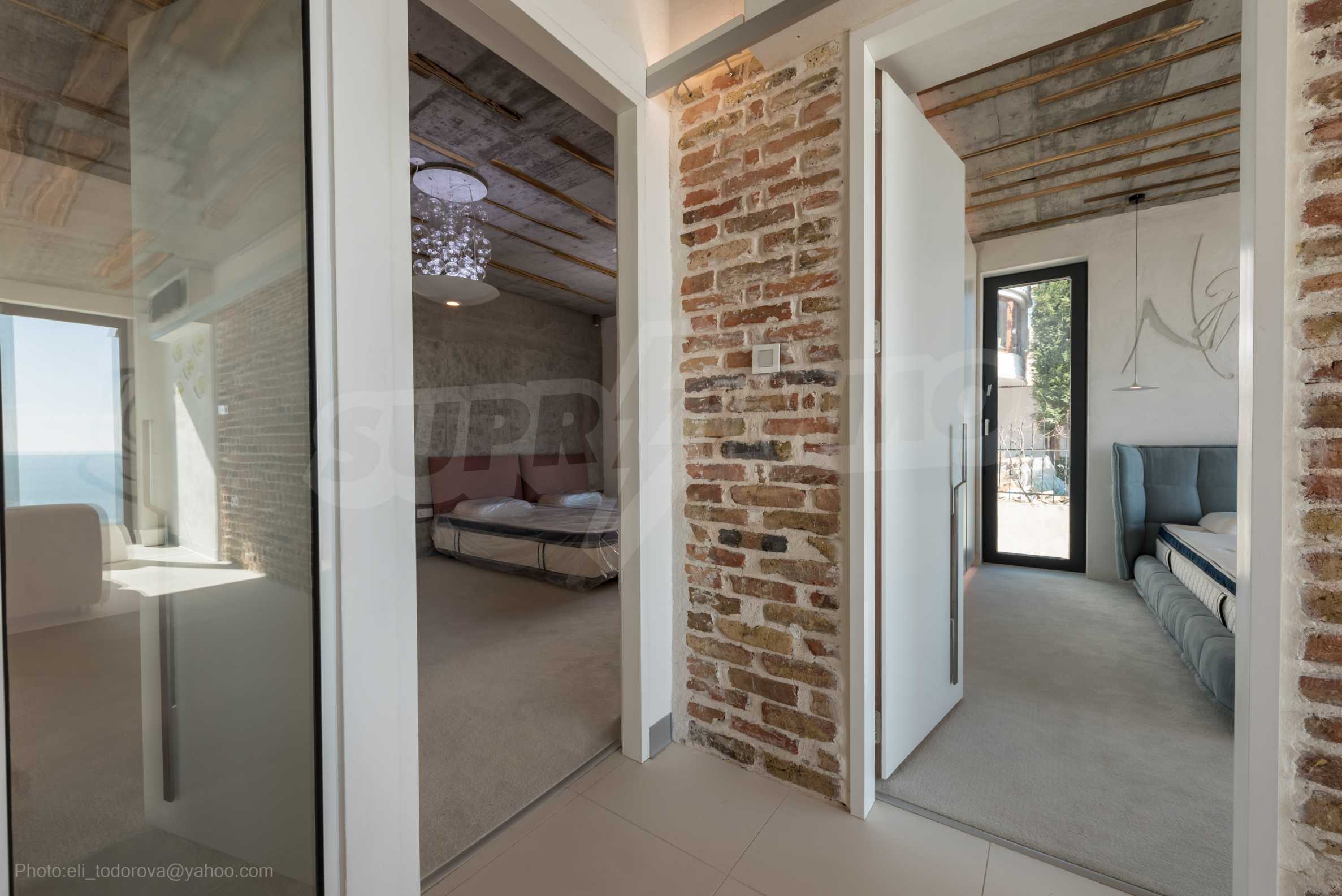 Das Design ist einzigartig - natürlich und modern, herausfordernd und hell und vermittelt die Botschaft von Autonomie, Entspannung und Meeresatmosphäre. In die Betonplatten an der Decke der Wohnung sind Akazienornamente aus natürlichem Beton eingebaut. Die Backsteinmauern und der Beton werden zur natürlichen Dekoration verwendet, da sie zusätzlich behandelt, imprägniert und grundiert werden. Möbel, Küche, Matratzen und Sofas, attraktive Fliesen, Beleuchtungskörper - alle sind von bekannten italienischen Marken. Der Fokus im Speisesaal liegt auf dem extravaganten Tisch, der auf Bestellung aus kostbarem und seltenem Holz aus dem Amazonas gefertigt wird. Das Badezimmer ist durch eine Glastür für viel Sonnenlicht getrennt und alle Badezimmer sind in erstklassiger deutscher Qualität.