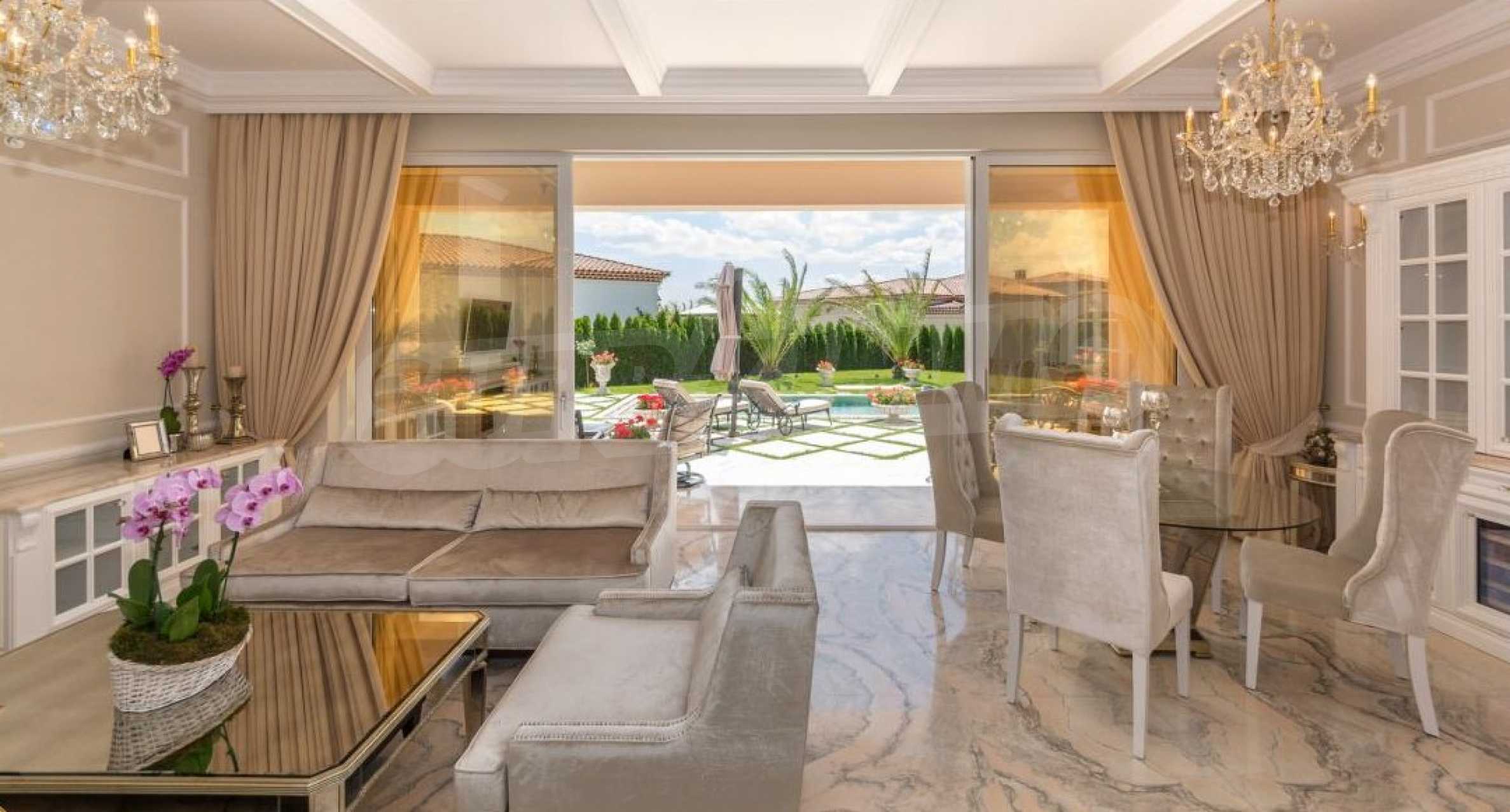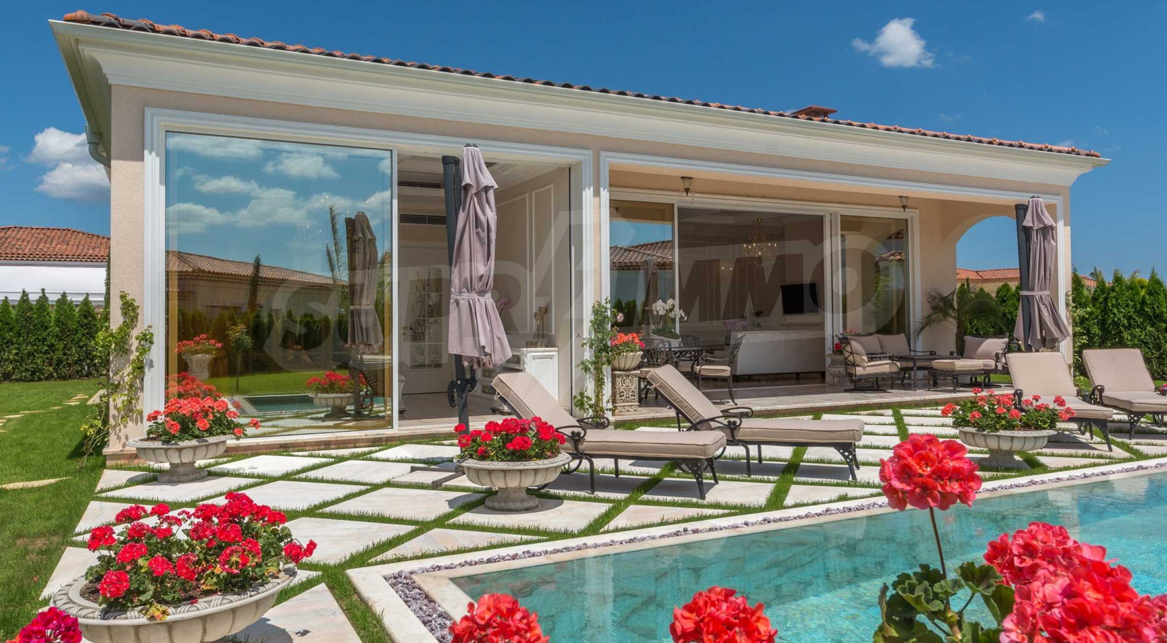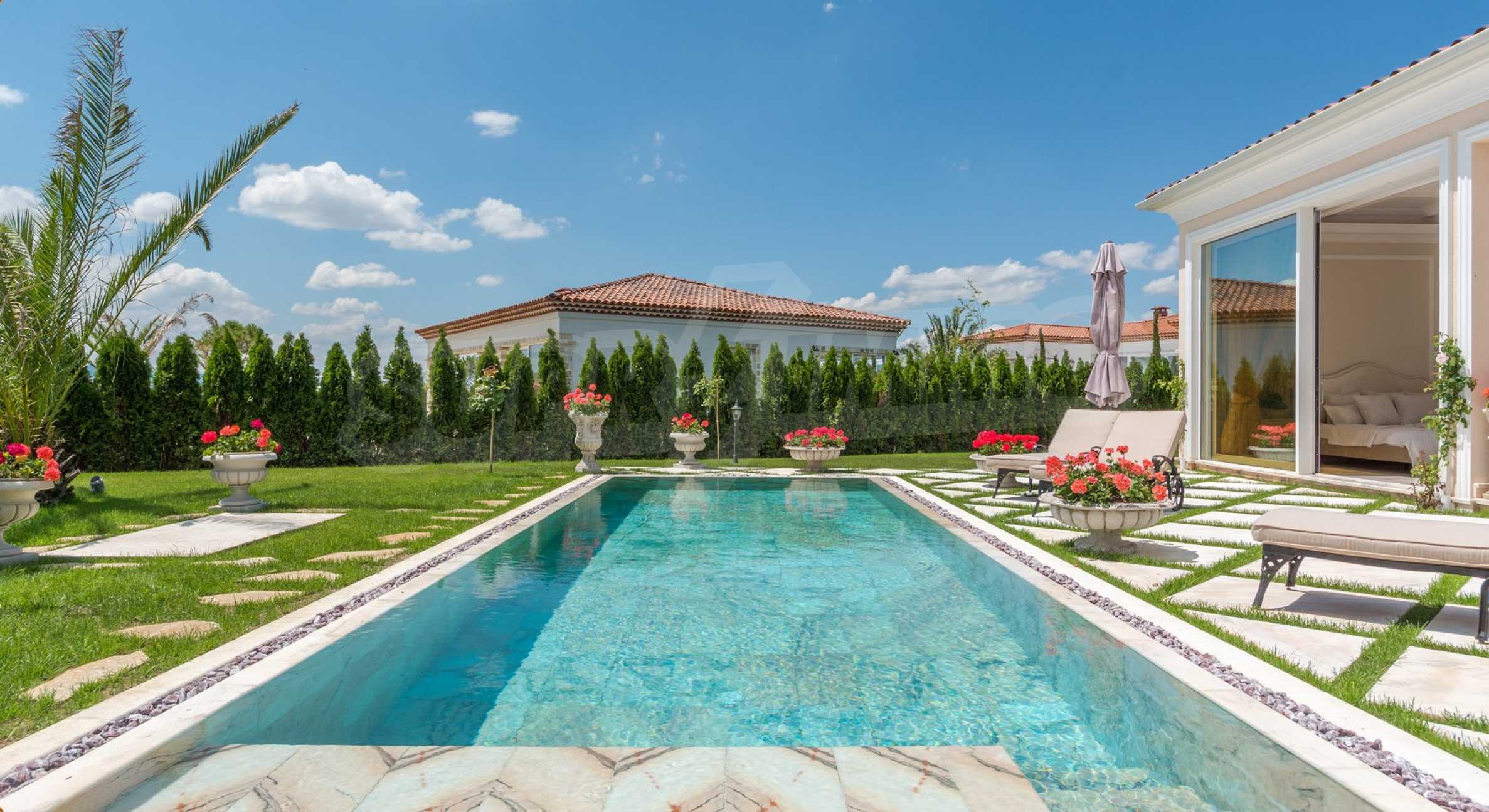 Der Komplex liegt nur 2 km von den Sanddünen von Sunny Beach entfernt und genießt eine malerische, ruhige und autonome Atmosphäre mit einem Gefühl von Komfort und Sicherheit, günstiger Sonneneinstrahlung und einzigartigen Ausblicken. Die Zäune sind niedrig, diskret und bieten ausreichend Privatsphäre. Das stilvolle und reich gestaltete Projekt mit gepflegten Gemeinschaftsbereichen bietet wunderschöne Pools und Gärten neben den Villen sowie erstklassige Annehmlichkeiten auf dem Territorium.