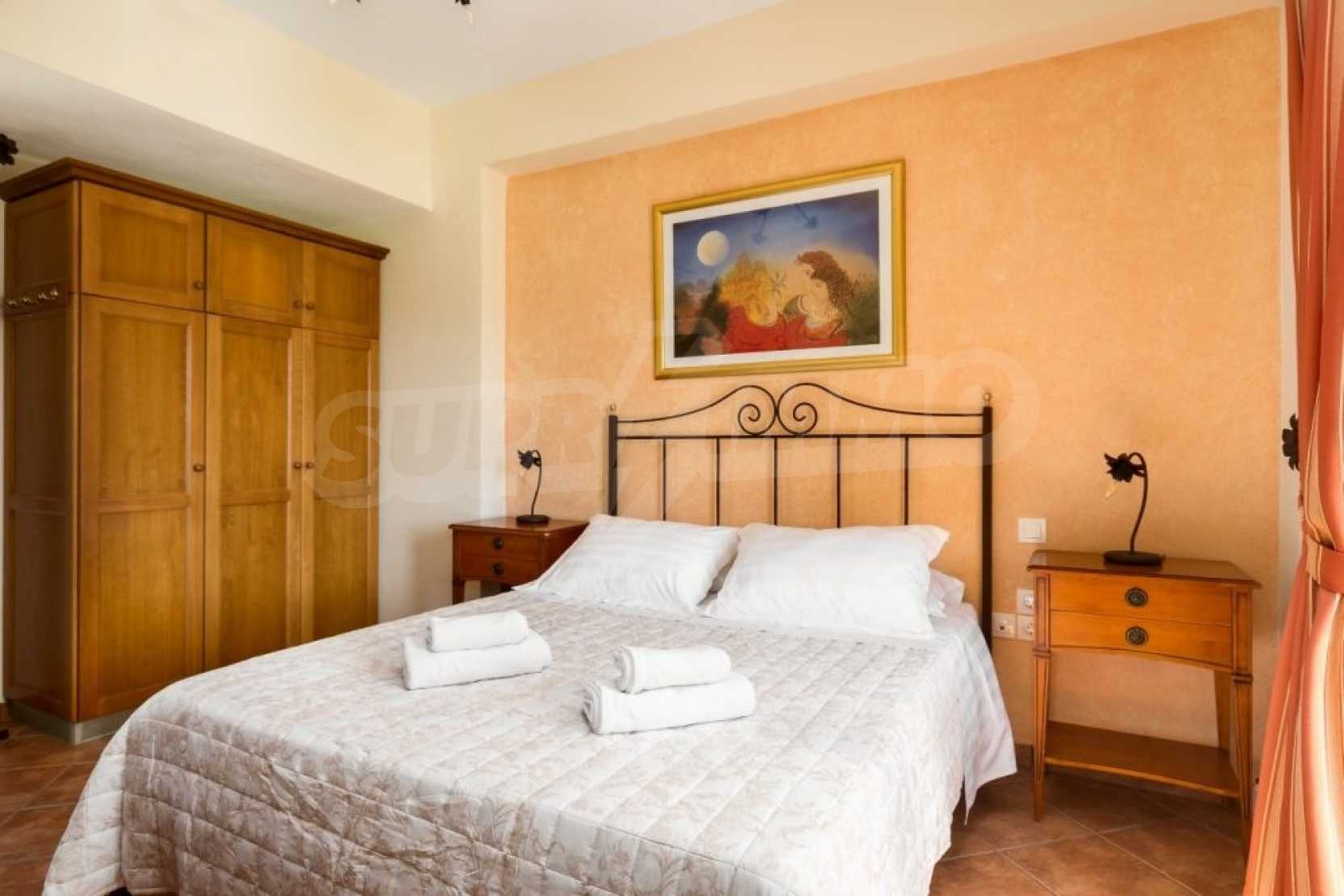 Der Außenbereich verfügt über Veranden in allen drei Häusern, ideal für entspannende Momente mit herrlichem Blick auf die umliegenden Berge sowie auf den Garten und einen großen Pool von 80 m².