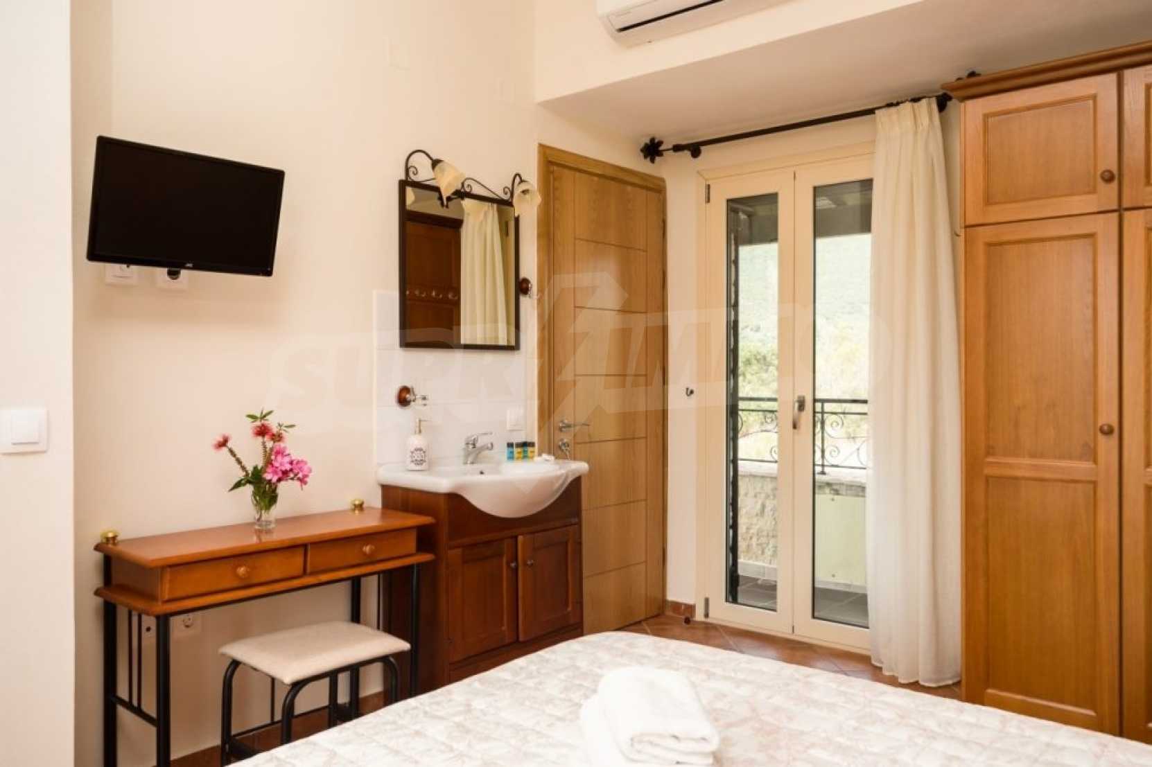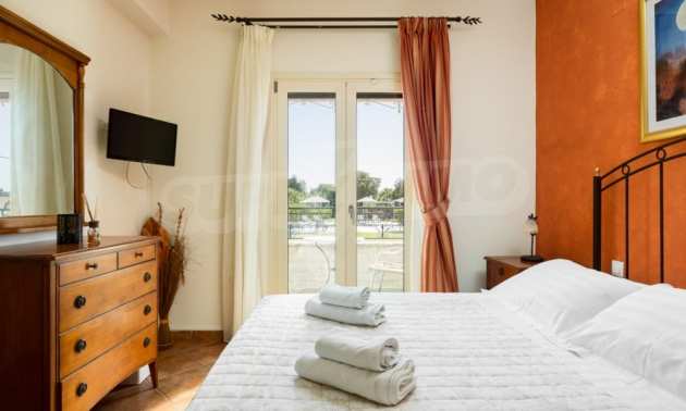 In einer privilegierten Lage, umgeben von Natur und in unmittelbarer Nähe des kristallklaren Wassers des Ionischen Meeres, dominiert diese Villa. Eingebettet in eine wunderschöne, unberührte Lage in der Gegend von Chalikounas, in unmittelbarer Nähe des Korission-Sees, der viele seltene Tier- und Pflanzenarten beherbergt.Die Villa ist in drei Steinhäuser mit einer Gesamtfläche von 194 m² auf einem 3.530 m² großen Grundstück unterteilt. Das erste Haus verfügt über eine offene Küche/Esszimmer, ein Schlafzimmer mit zwei Einzelbetten und ein Badezimmer. Die erste Ebene hat ein weiteres Schlafzimmer mit einem Doppelbett.