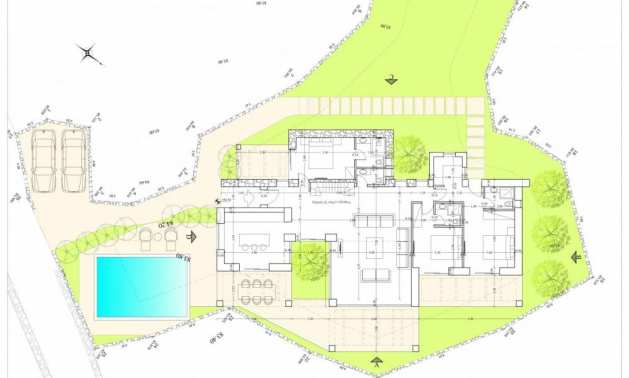 Es wird auf einem Grundstück von ca. 680qm Außenfläche wird eine Terrasse, einen schönen Garten, einen schönen Swimmingpool und einen Parkplatz haben.
