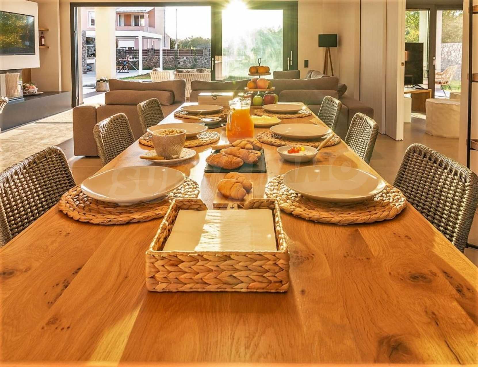 Die Villa zeichnet sich sowohl durch die Qualität der beim Bau verwendeten Materialien als auch durch die mit ungeteilter Aufmerksamkeit und Geschmack hergestellten Möbel aus. Aber was diese Villa einzigartig macht, ist, dass es sich um ein Smart House handelt. Alle Möglichkeiten der Hochtechnologie in Ihren Händen. Das Tag-System (schlüssellos) wird verwendet, um alle Türen zu bedienen, während Sie über ein Tablet zusätzliche Funktionen wie Grilljalousien und Kühl-/Heizsysteme steuern können. Aber es ist nicht nur das. Respekt vor der Umwelt ist in unserer Zeit die Nummer eins. Die Villa wurde unter Nutzung der natürlichen Ressourcen der Sonne und des Wassers gebaut.